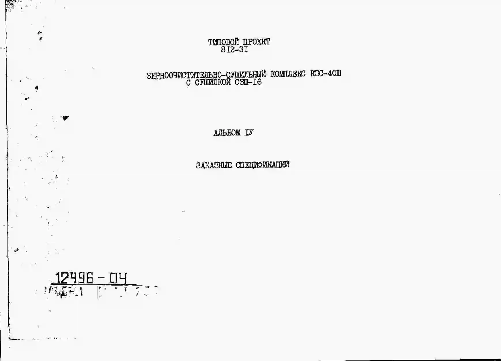 Типовой проект 812-31 Зерноочистительно-сушильный комплекс КЗС-40Ш с сушилкой СЗШ-16 производительностью 40 т/ч