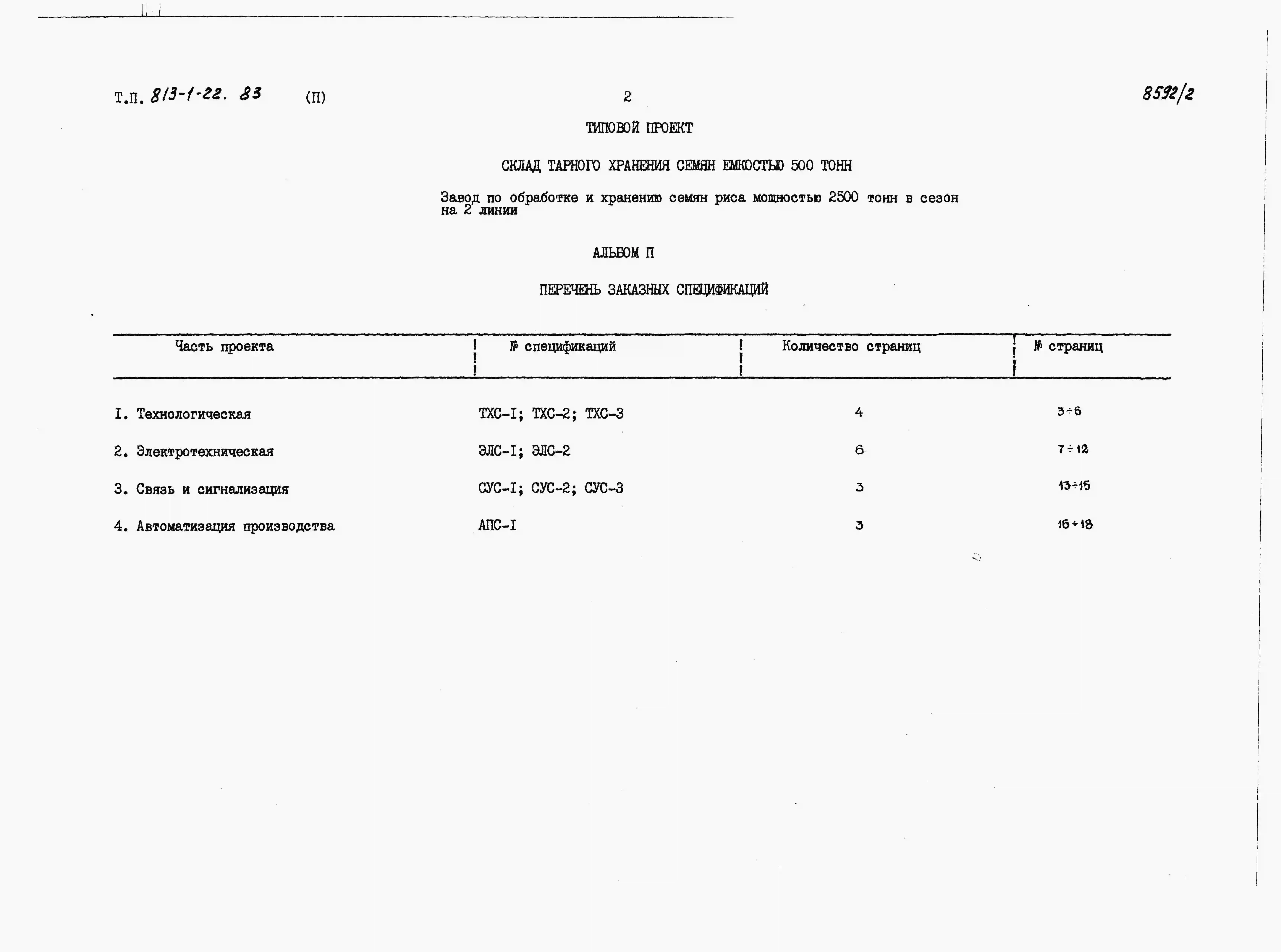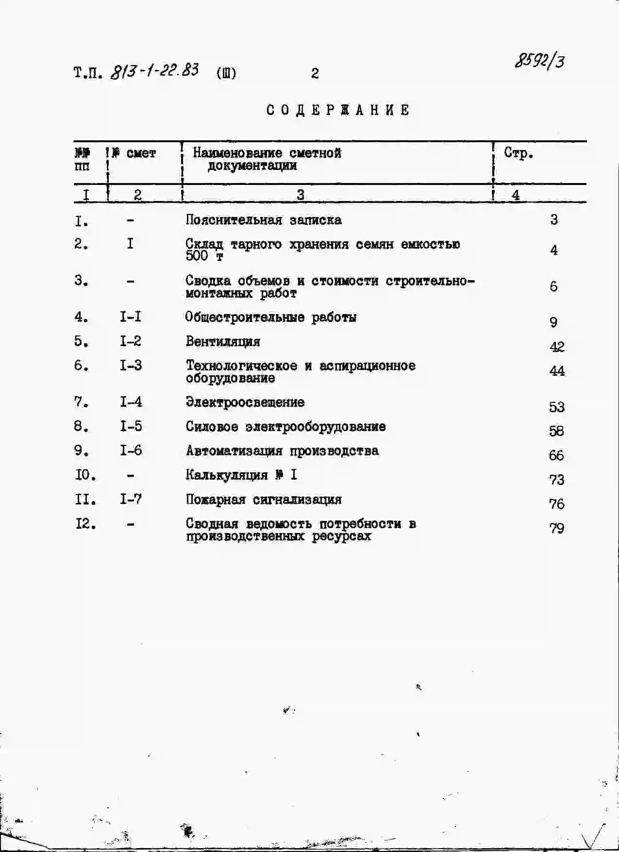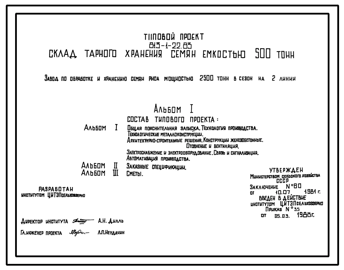 Типовой проект 813-1-22.83 Склад тарного хранения семян емкостью 500 т