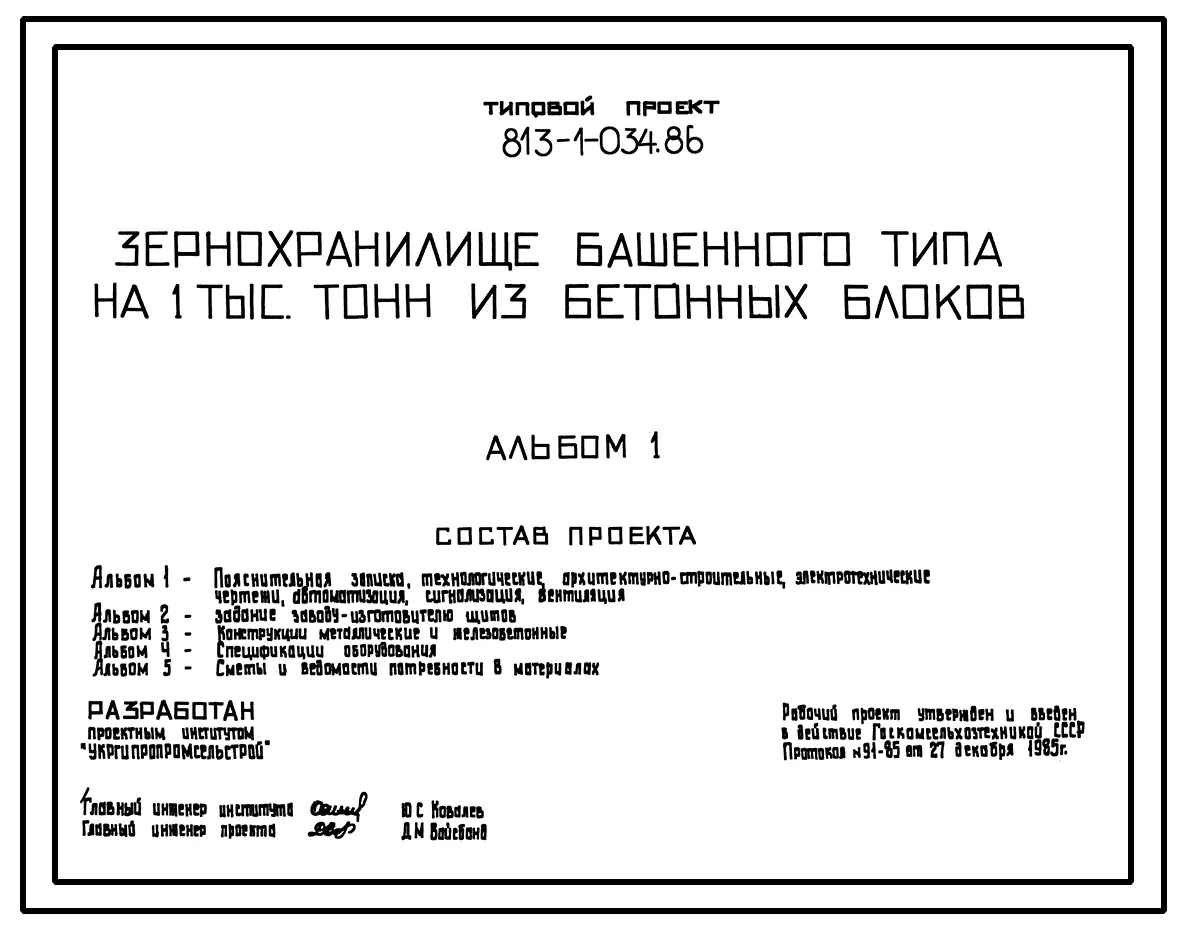 Типовой проект 813-1-034.86 Зернохранилище башенного типа 1,0 тыс. т из бетонных блоков