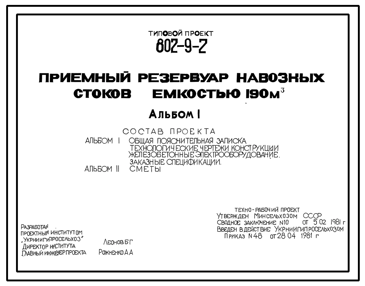 Типовой проект 802-9-2 Приемный резервуар навозных стоков емкостью 190 м3
