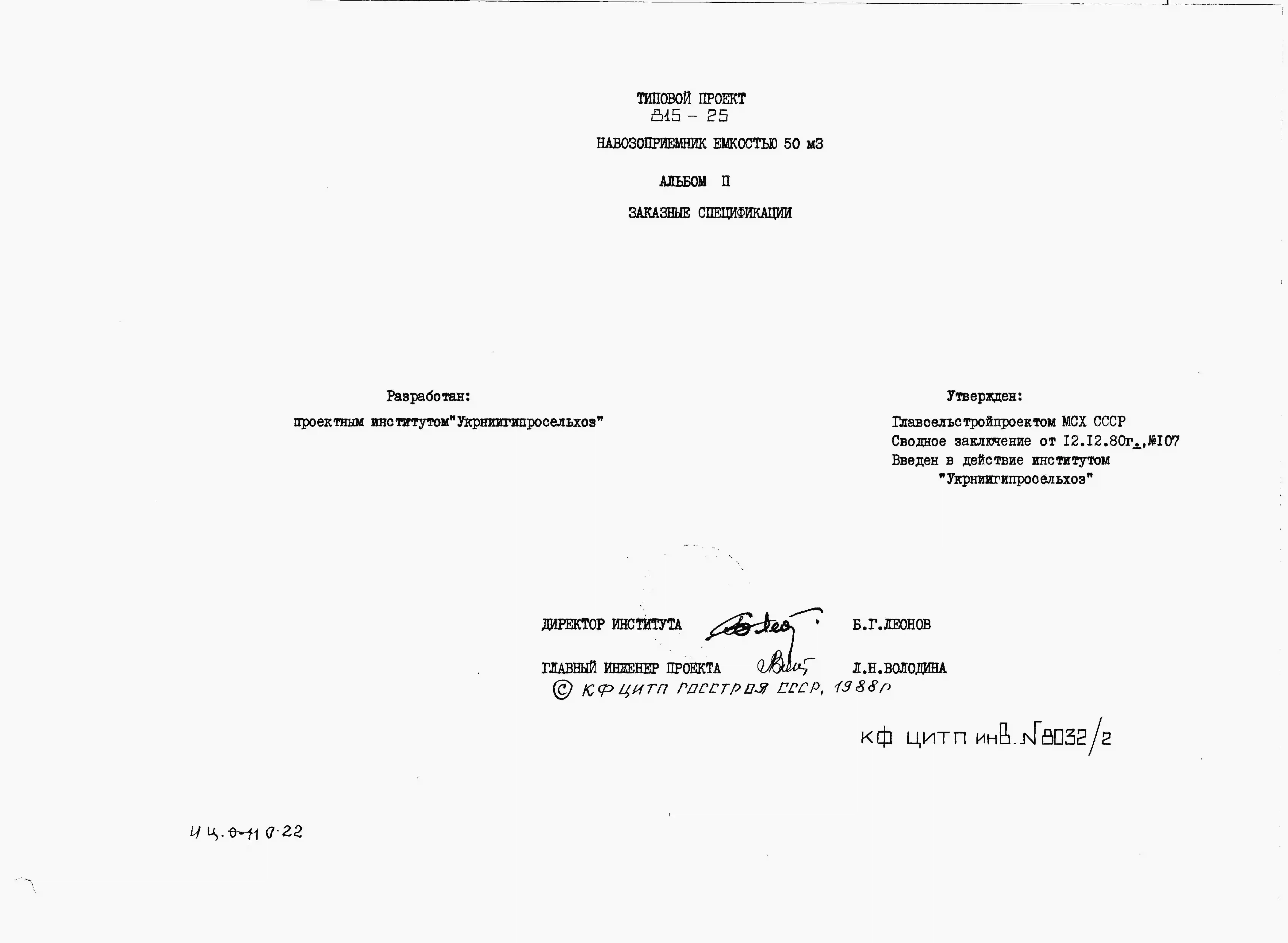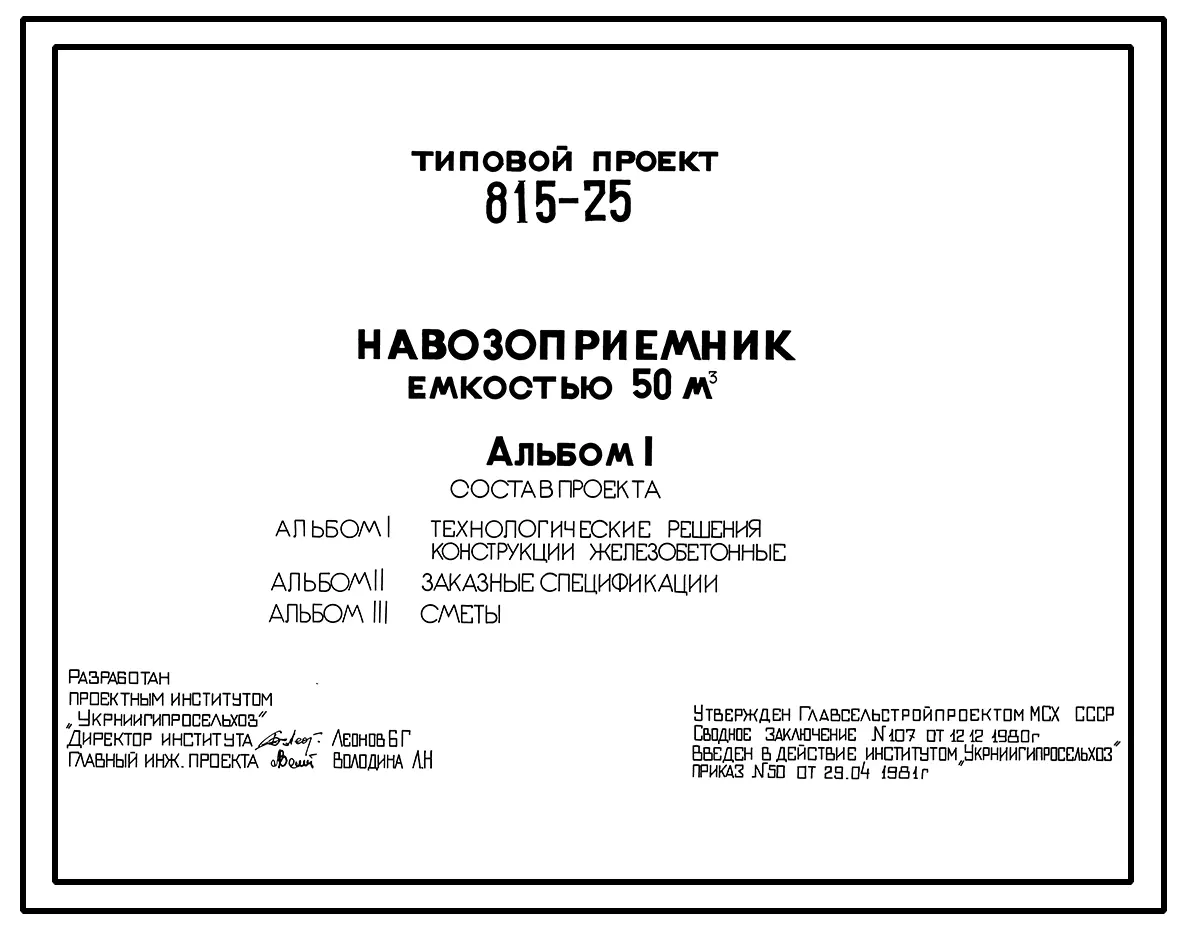 Типовой проект 815-25 Навозоприемник емкостью 50 м3