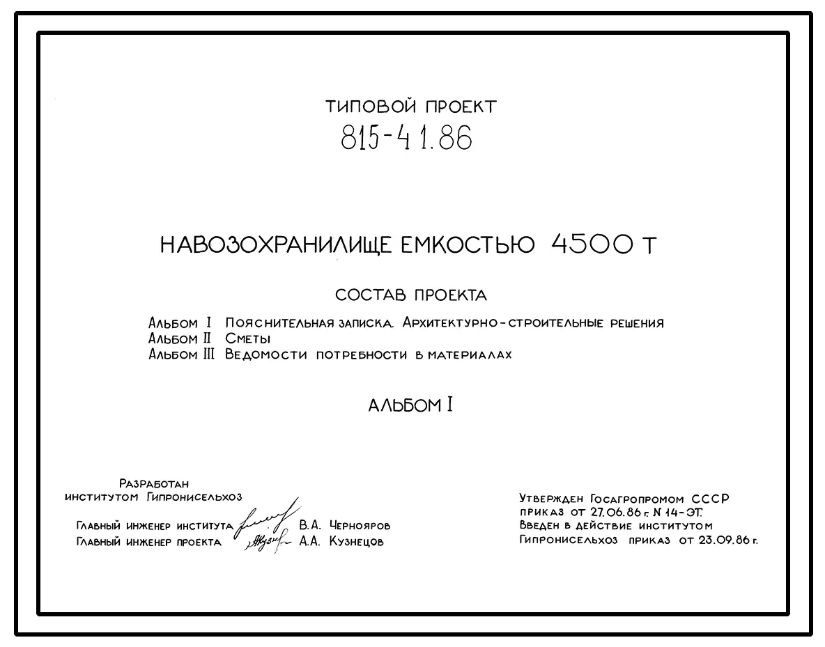 Типовой проект 815-41.86 Навозохранилище емкостью 4500 т