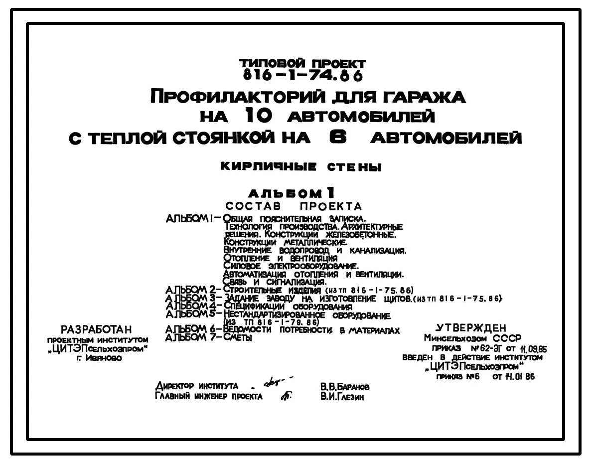 Типовой проект 816-1-74.86 Профилакторий для гаража на 10 автомобилей с теплой стоянкой на 6 автомобилей