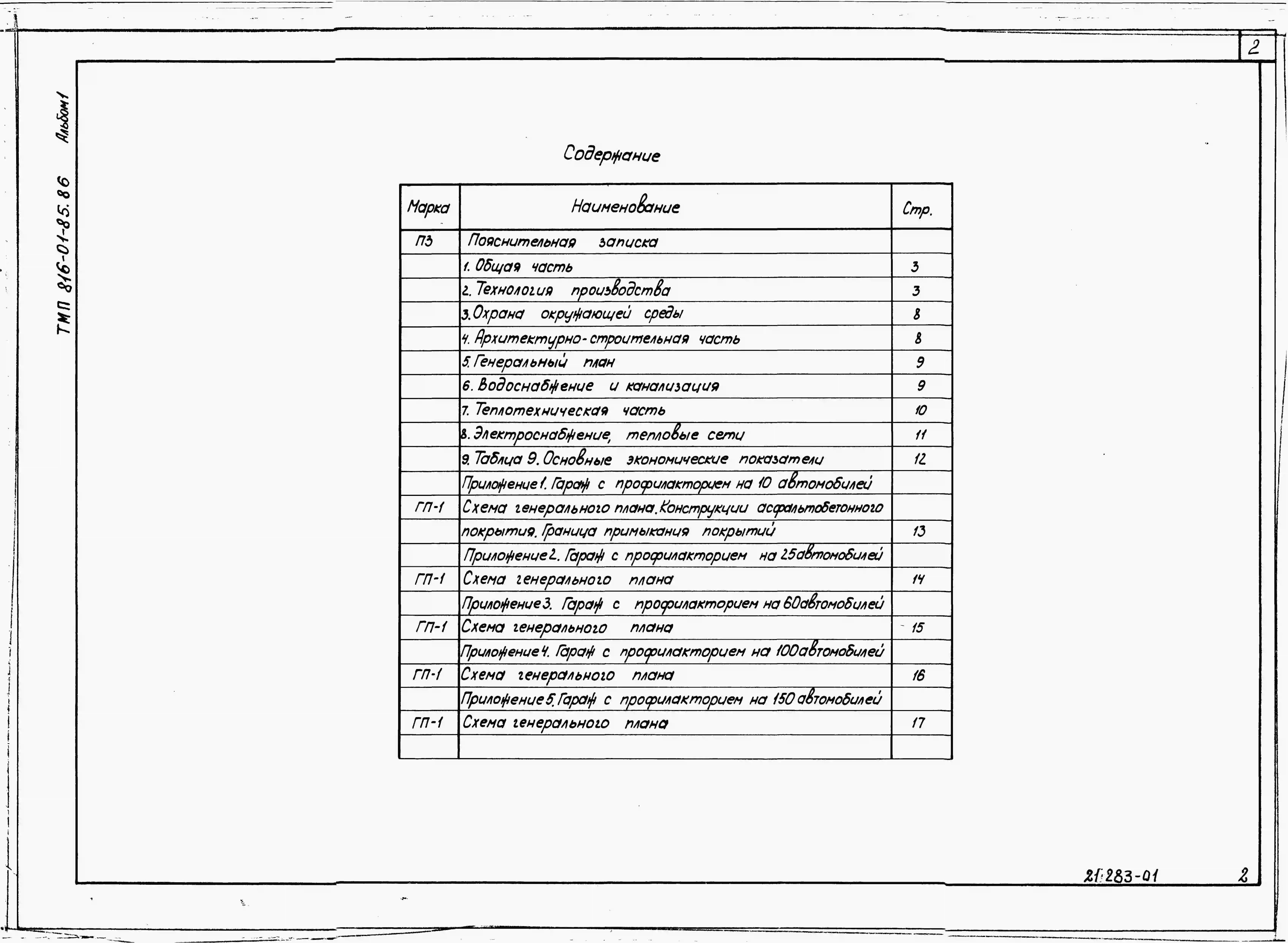 Типовой проект 816-01-85.86 Гаражи с профилакториями на 10, 25, 60, 100 и 130 автомобилей. Предназначены для эксплуатации, ремонта, технического обслуживания и хранения автотранспортных средств. Общая численность работающих - 12; 31; 78; 151 и 226 чел. Ра
