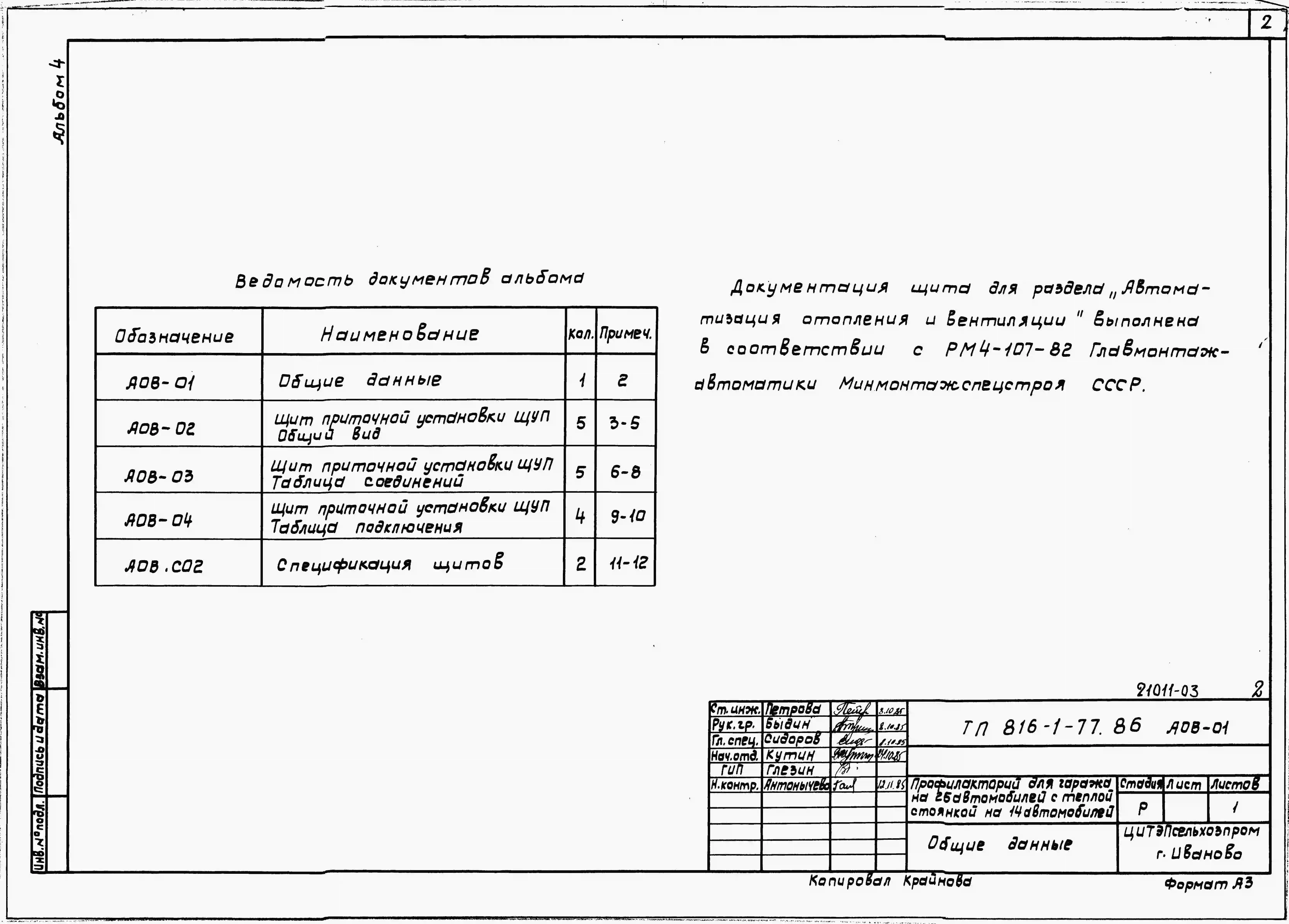 Типовой проект 816-1-76.86 Профилакторий для гаража на 25 автомобилей с теплой стоянкой на 14 автомобилей. Стены из кирпича
