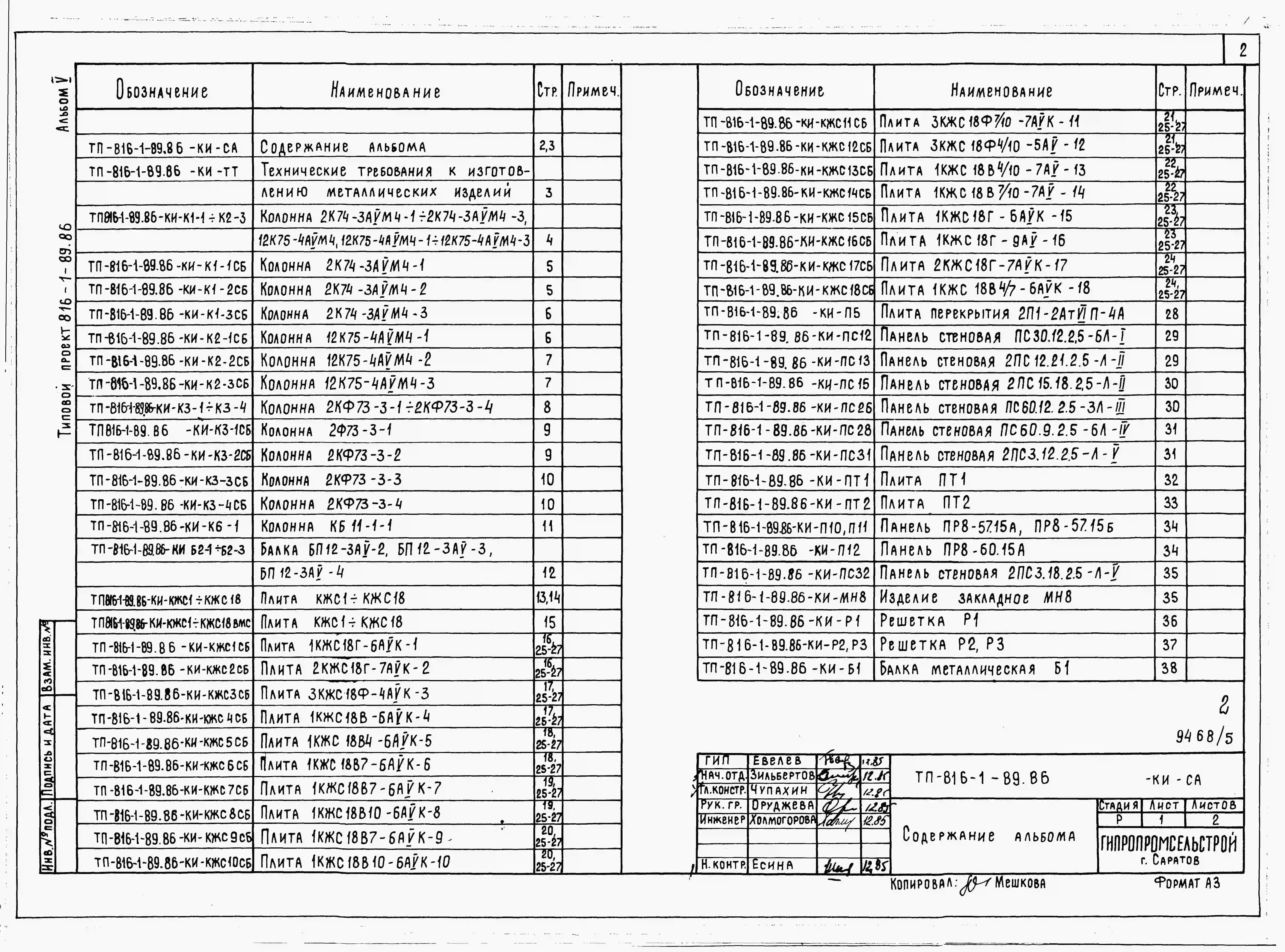Типовой проект 816-1-89.86 Производственный корпус ПМК