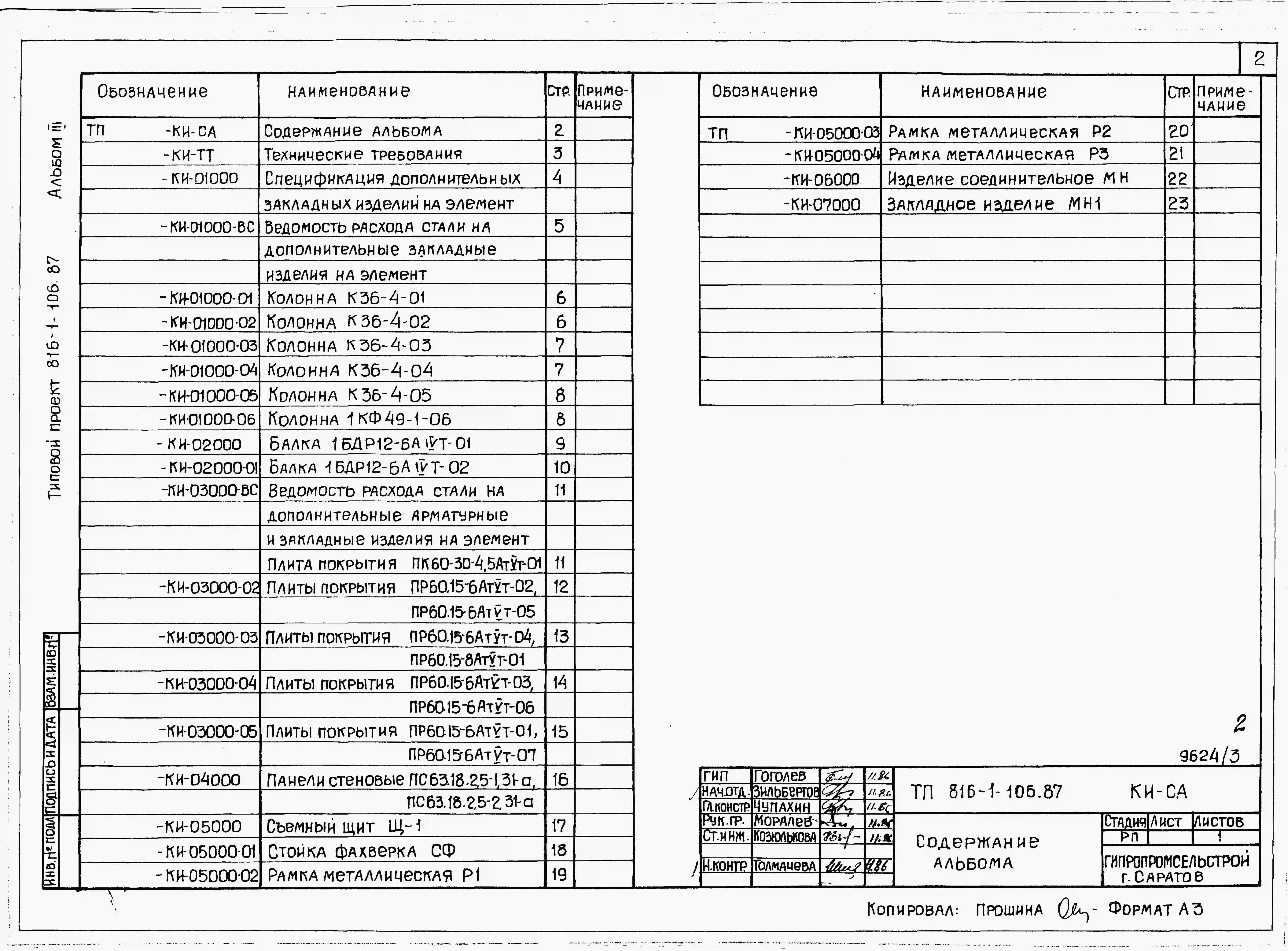 Типовой проект 816-1-106.87 Пункт хранения и зарядки 500 аккумуляторов батарей. Стены из легкобетонных панелей. Покрытие из железобетонных плит по железобетонным балкам