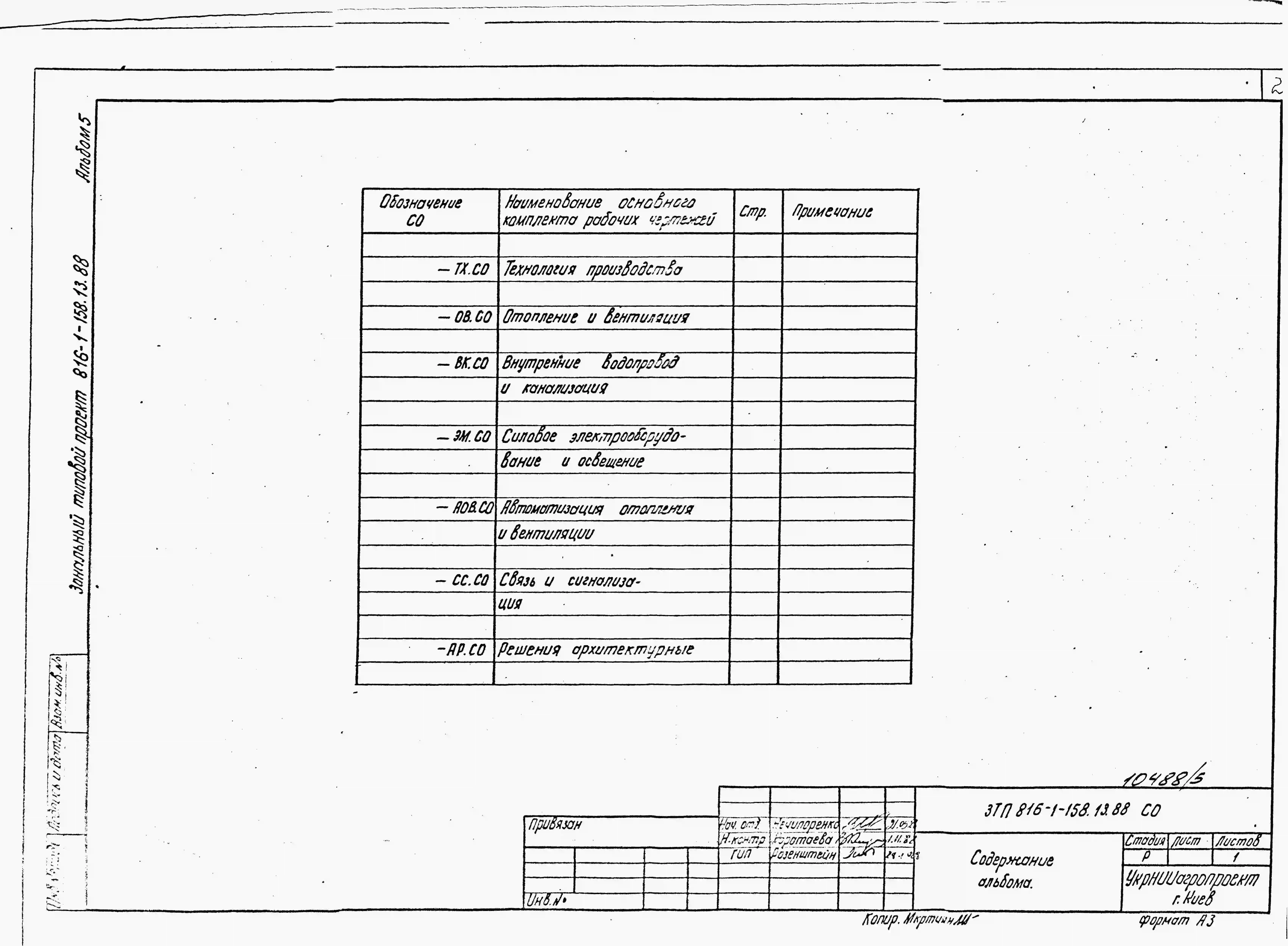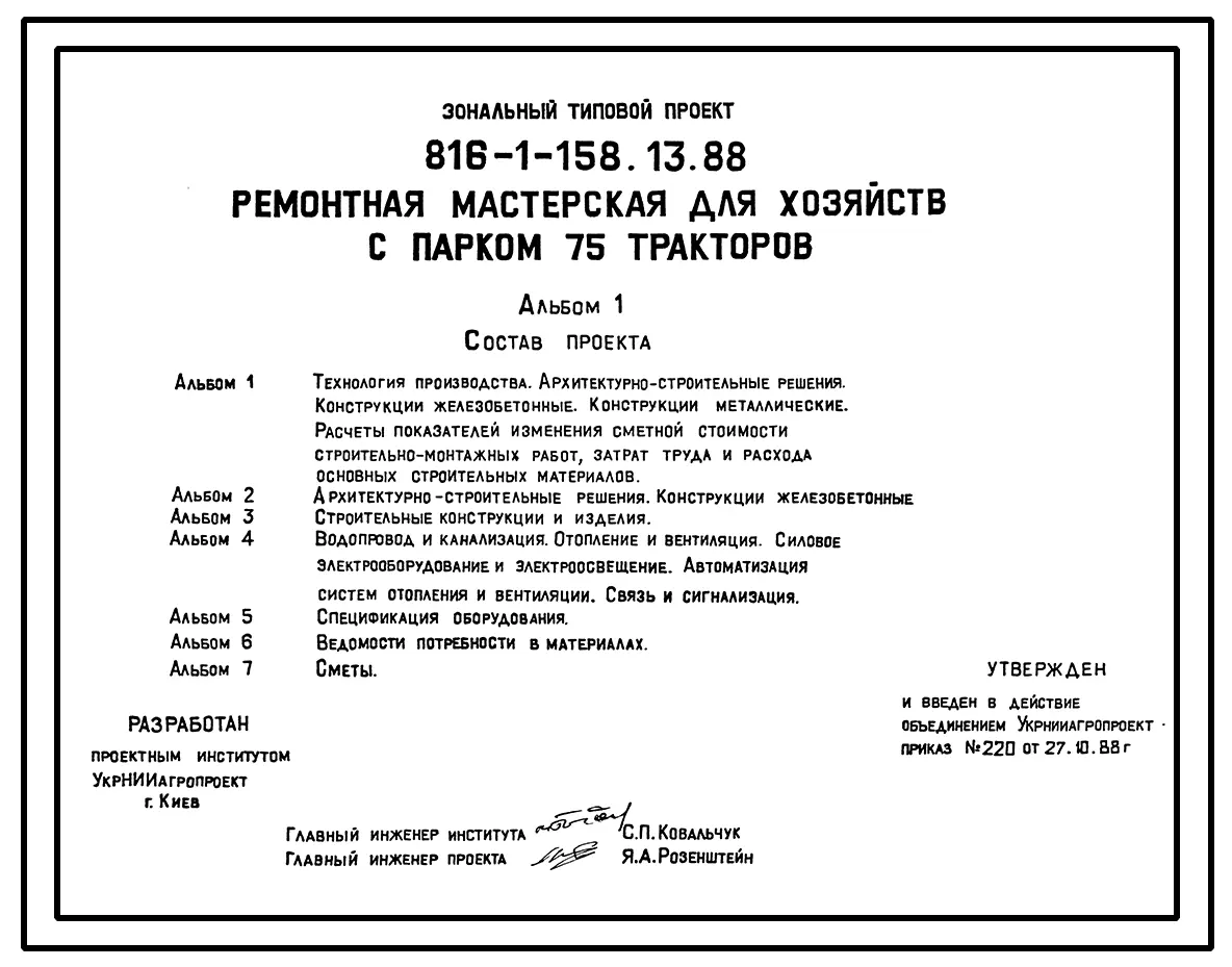Типовой проект 816-1-158.13.88 Ремонтная мастерская для хозяйств с парком 75 тракторов для строительства в Украинской ССР