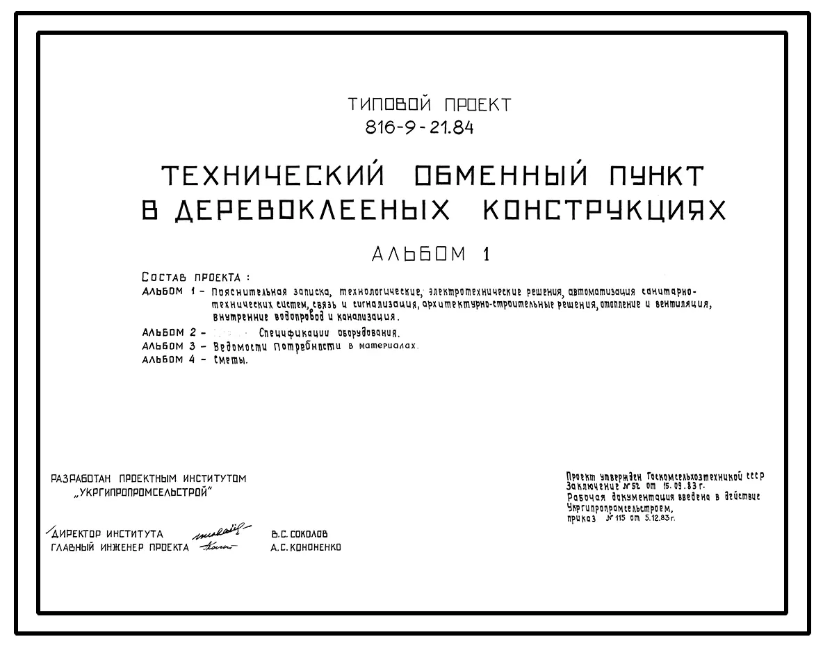 Типовой проект 816-9-21.84 Технический обменный пункт