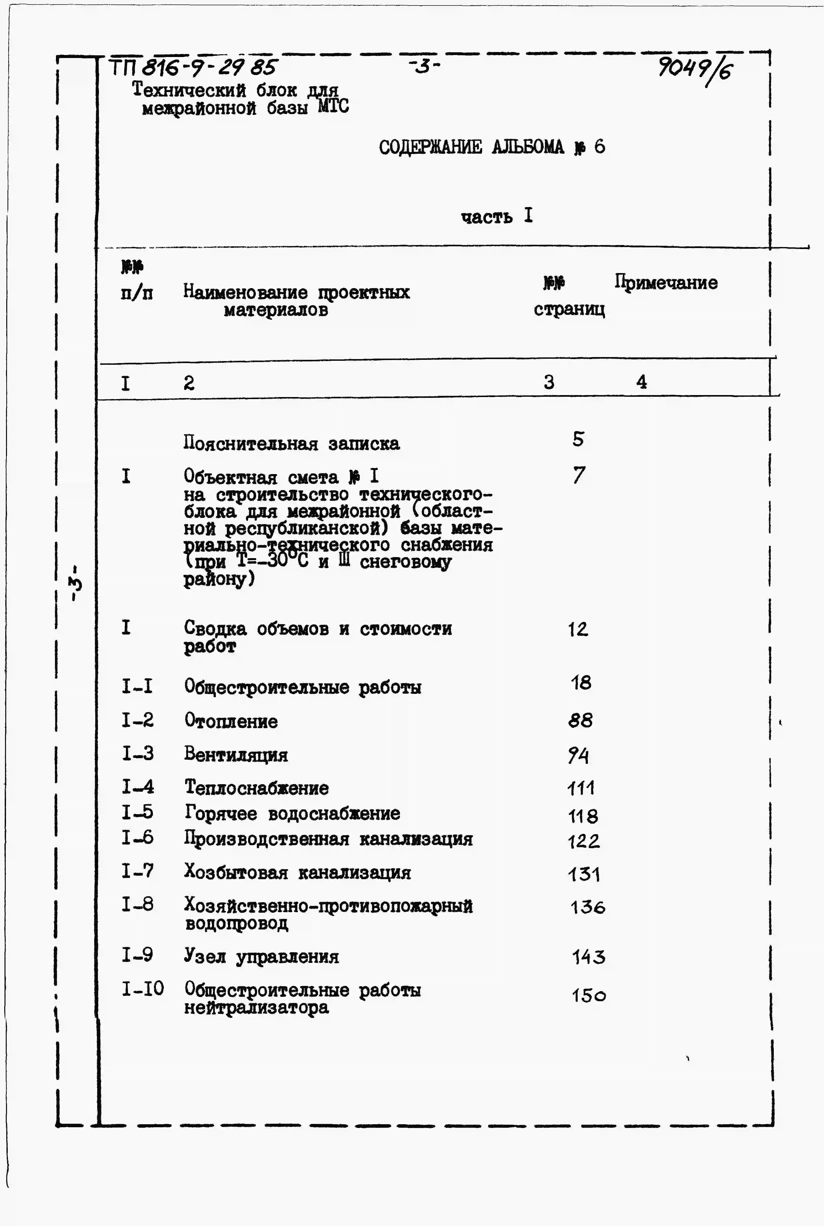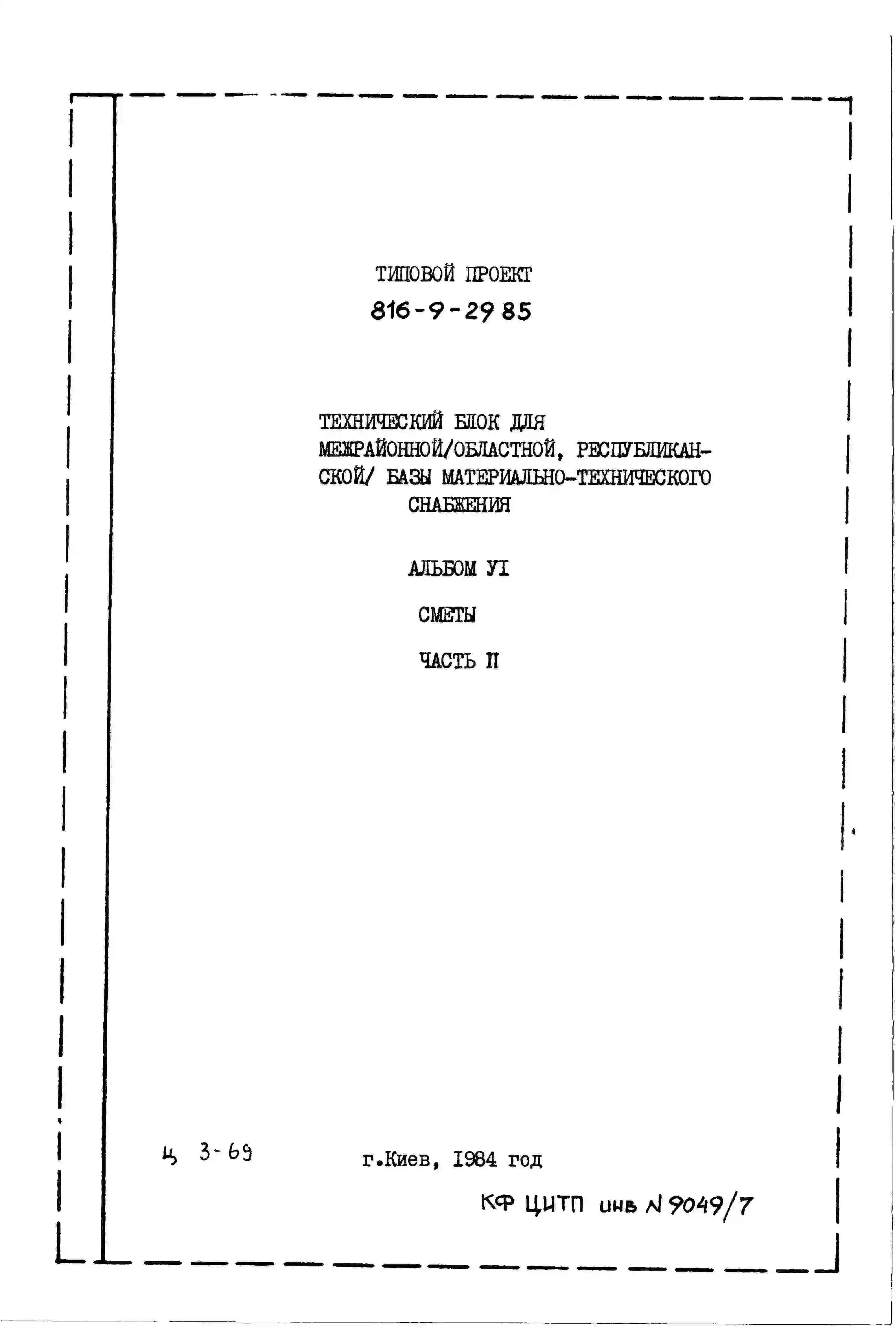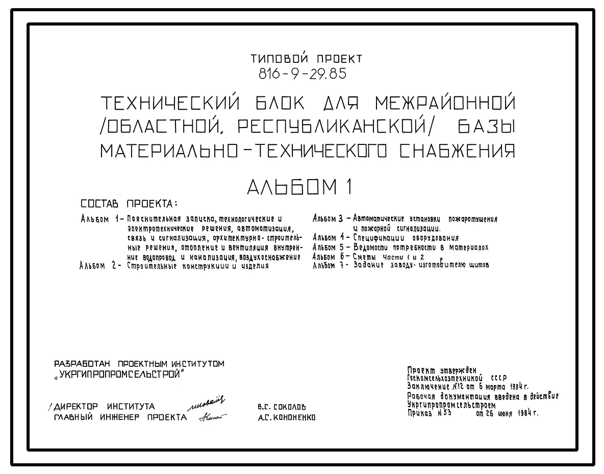 Типовой проект 816-9-29.85 Технический блок для межрайонной (областной, республиканской) базы материально-технического снабжения