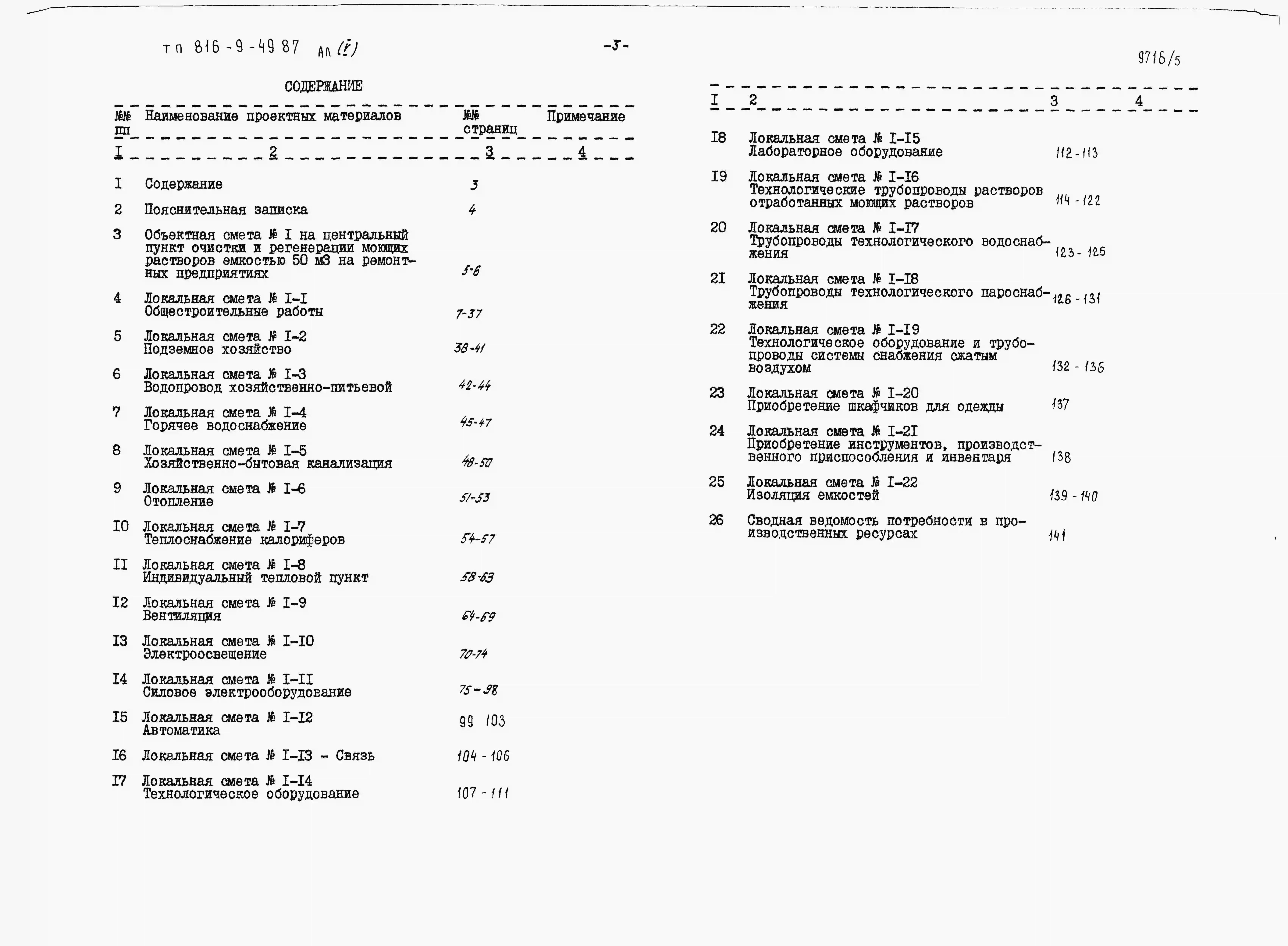 Типовой проект 816-9-49.87 Центральный пункт очистки и регенерации отработанных моющих растворов емкостью 50 м? на ремонтных предприятиях