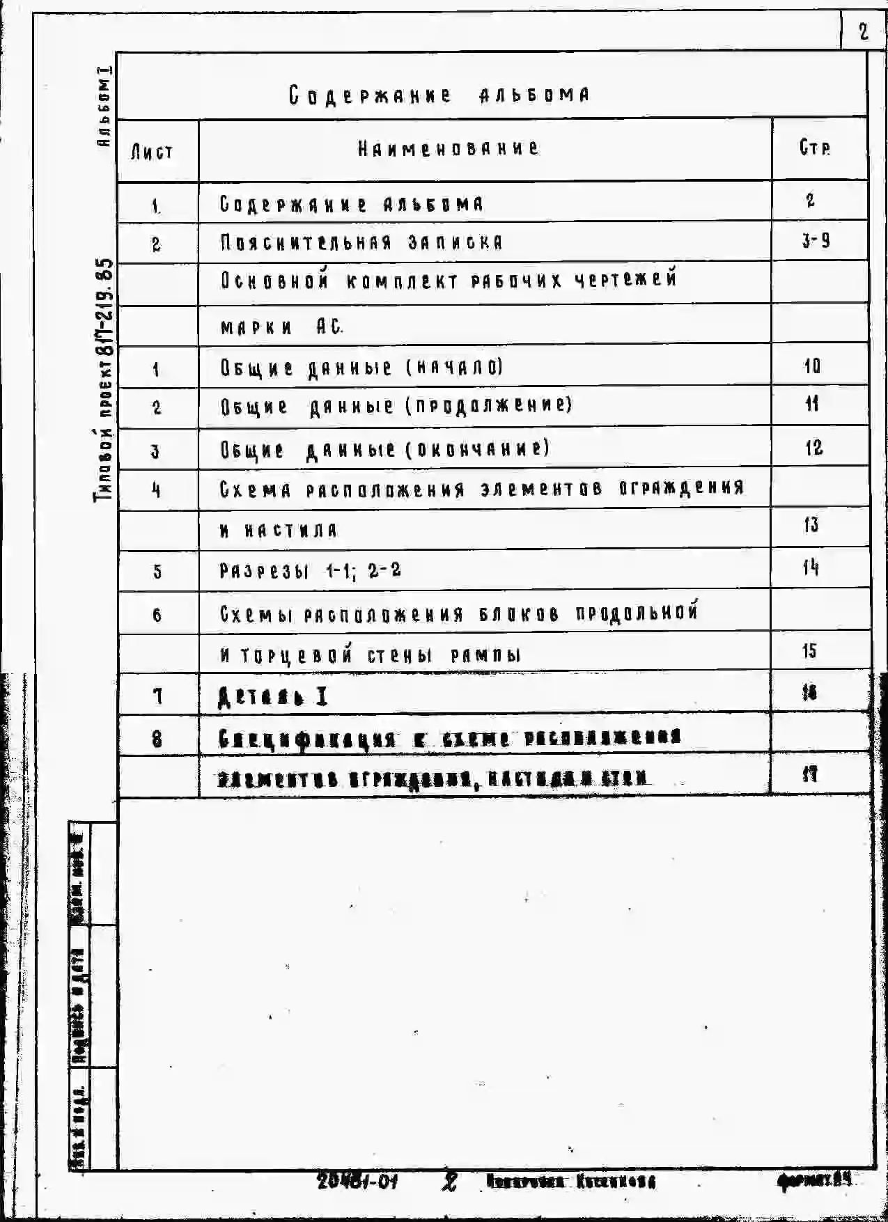 Типовой проект 817-219.85 Рампа для погрузки животных (полносборное сооружение). Размеры рампы -3,2x13,1 м. Расчетная температура: -20, -30°С. Конструкции - железобетонные