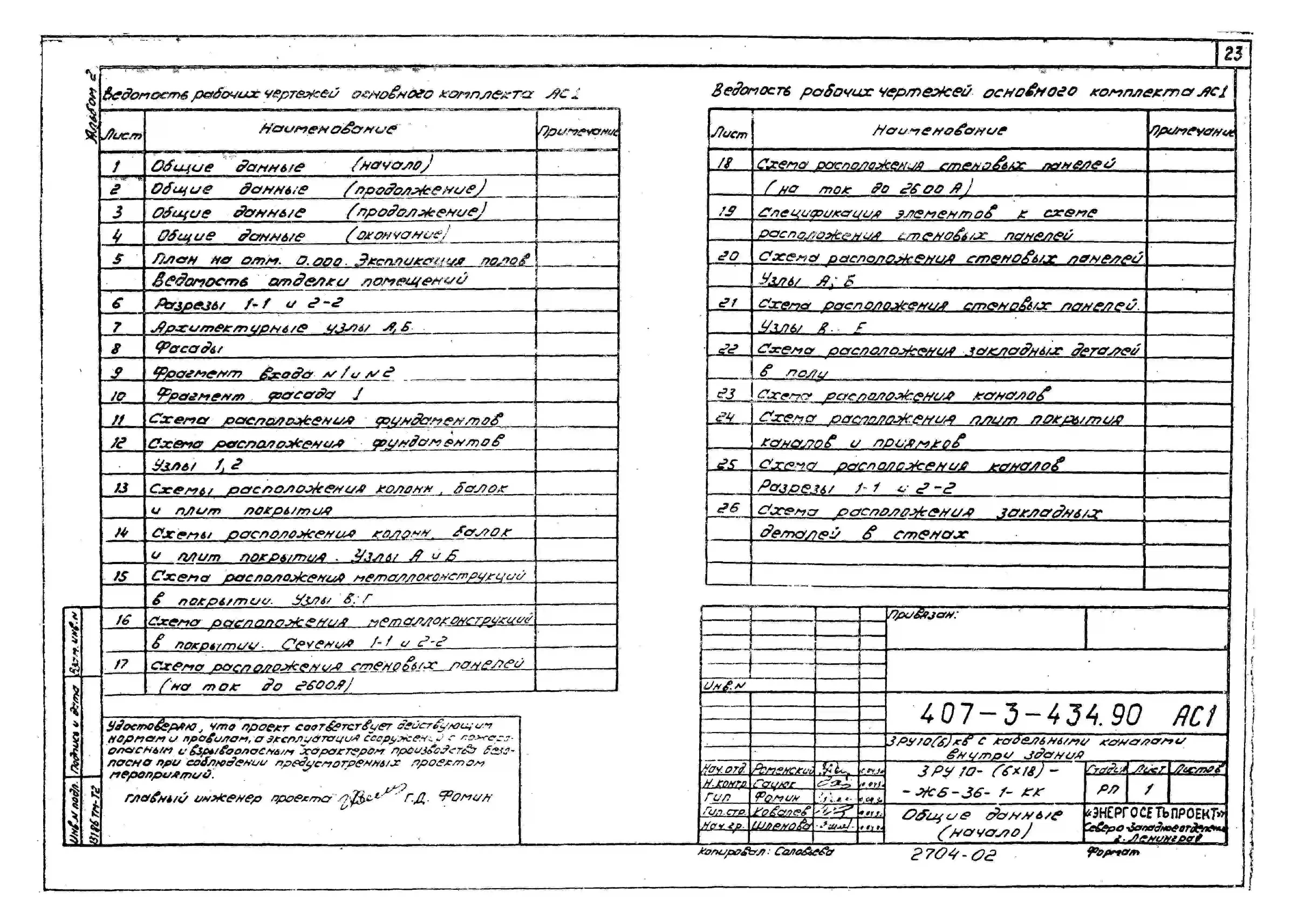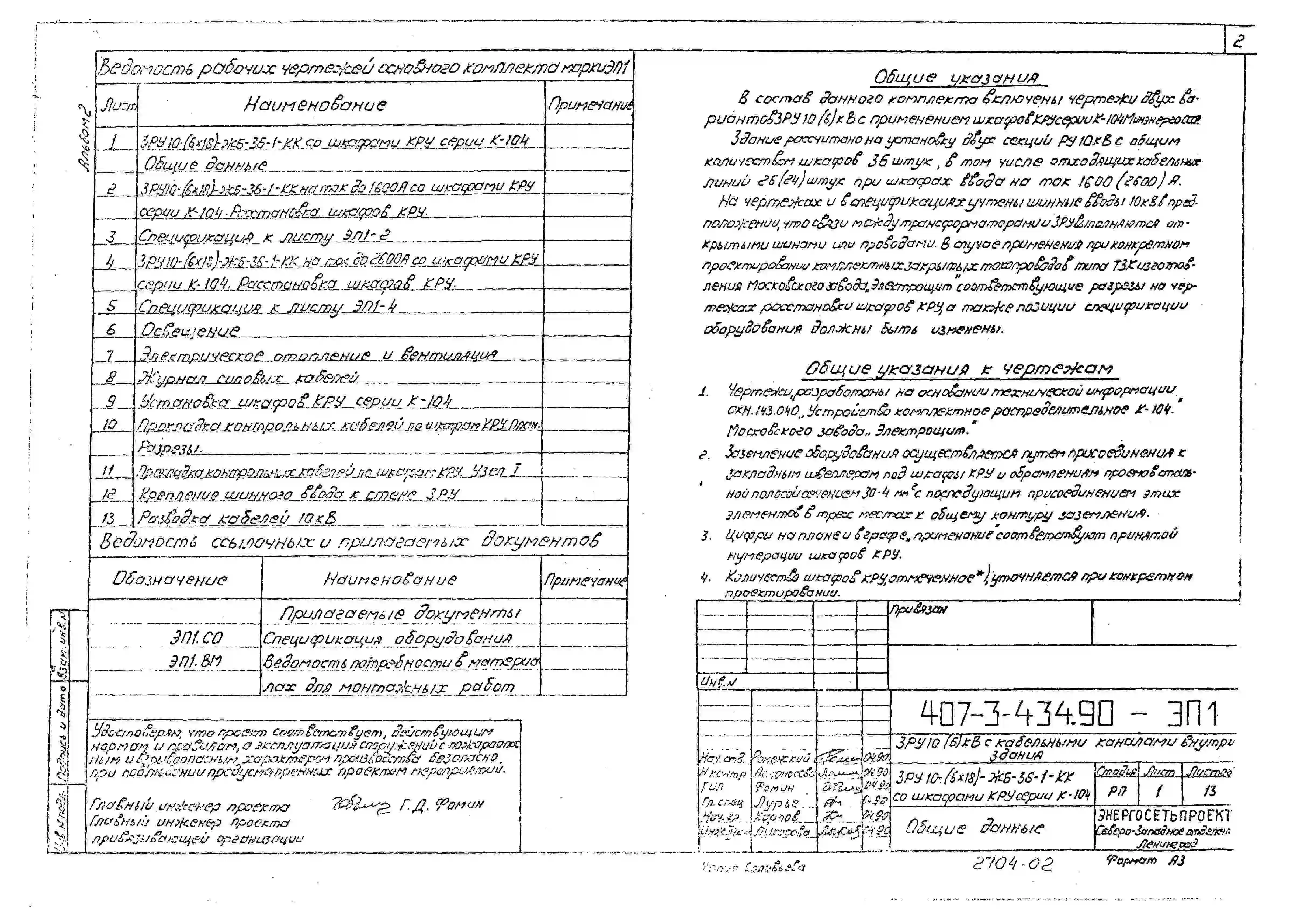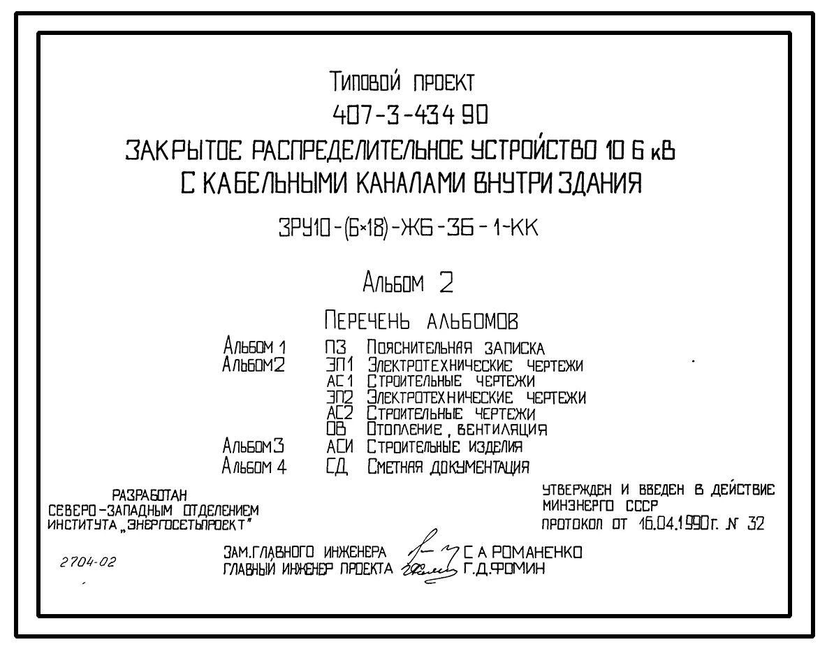 Типовой проект 407-3-434.90 Закрытое распределительное устройство 10(6) кВ с кабельными каналами внутри здания ЗРУ10-(6х18)-ЖБ-36-1-КК