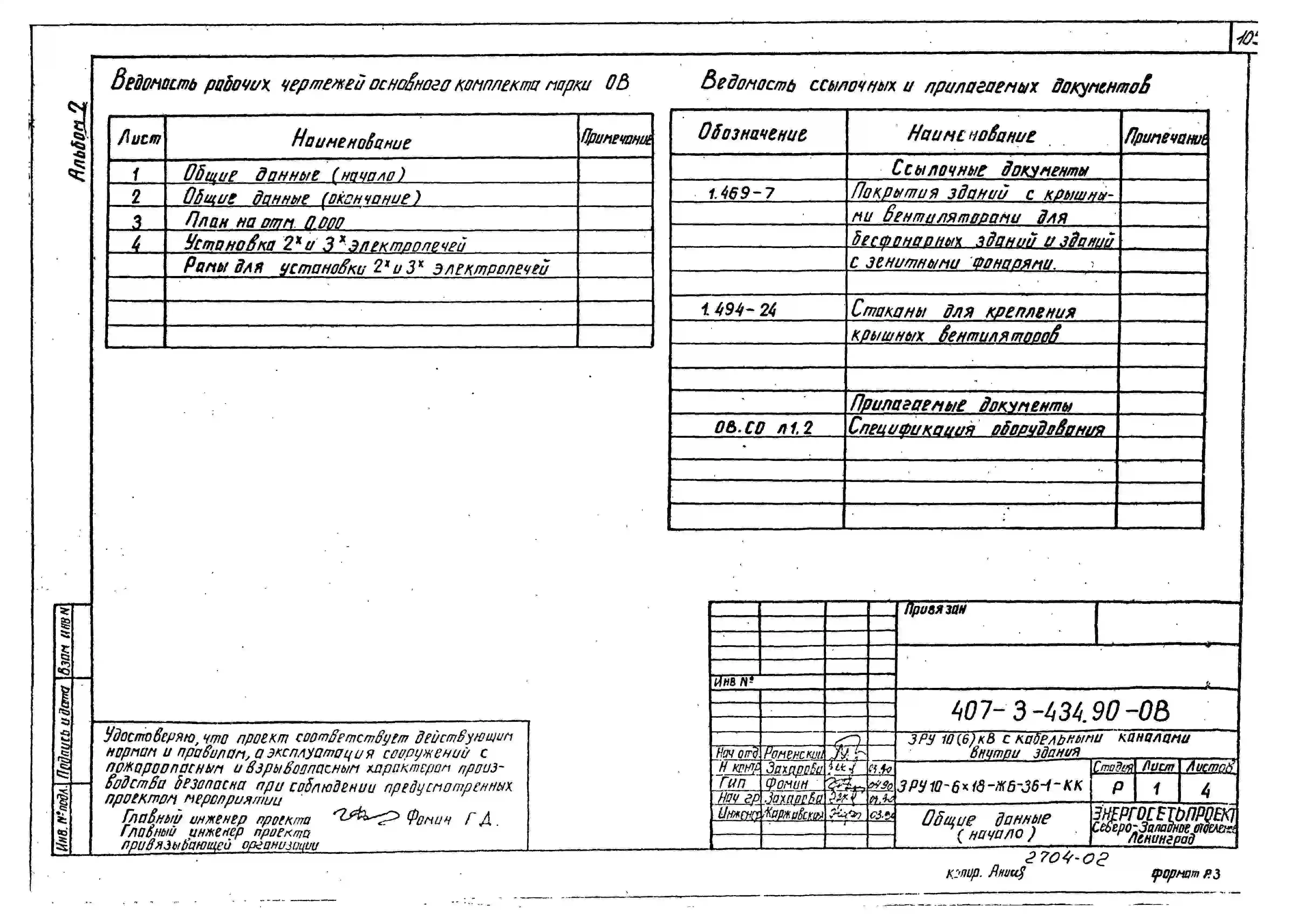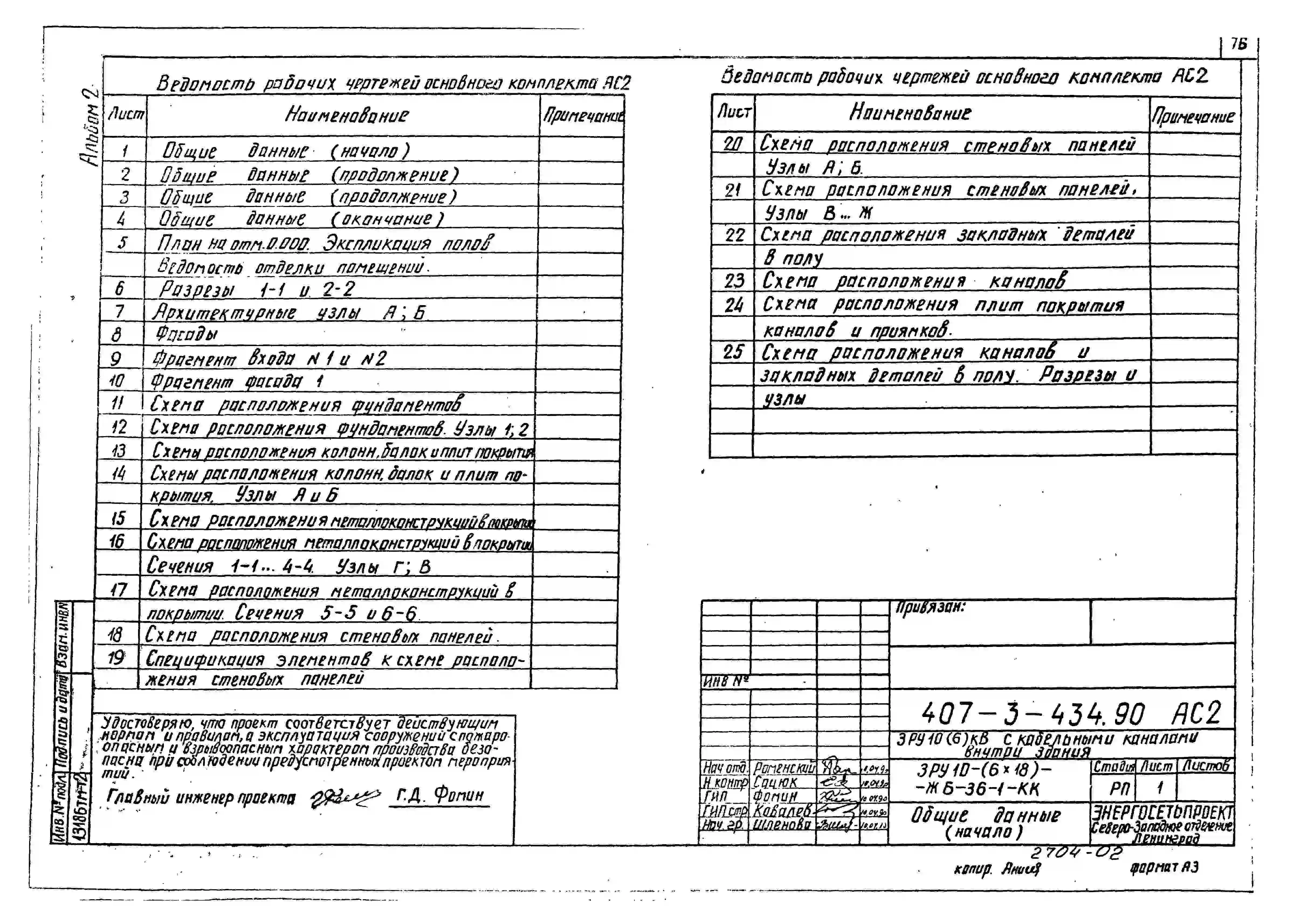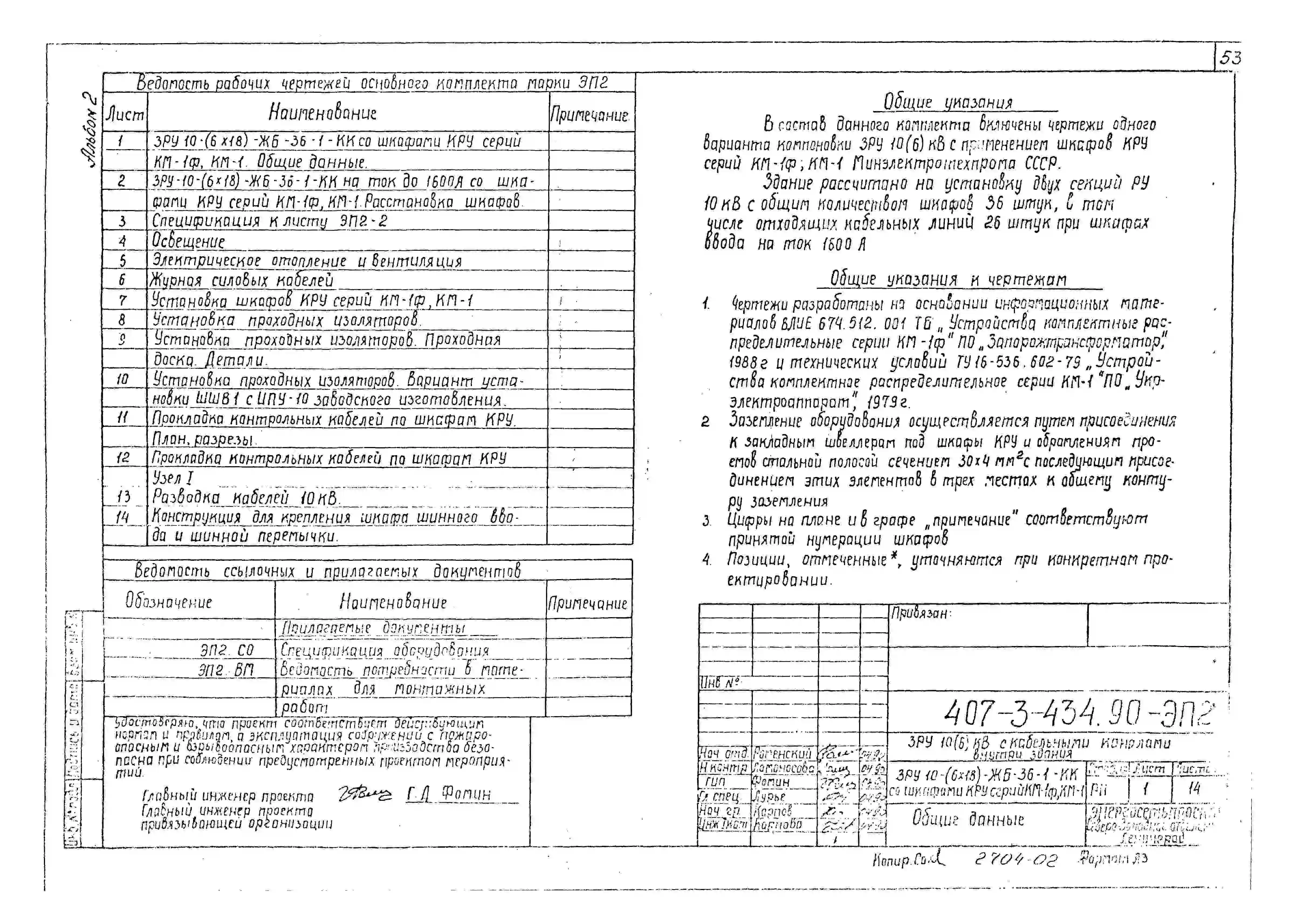 Типовой проект 407-3-434.90 Закрытое распределительное устройство 10(6) кВ с кабельными каналами внутри здания ЗРУ10-(6х18)-ЖБ-36-1-КК