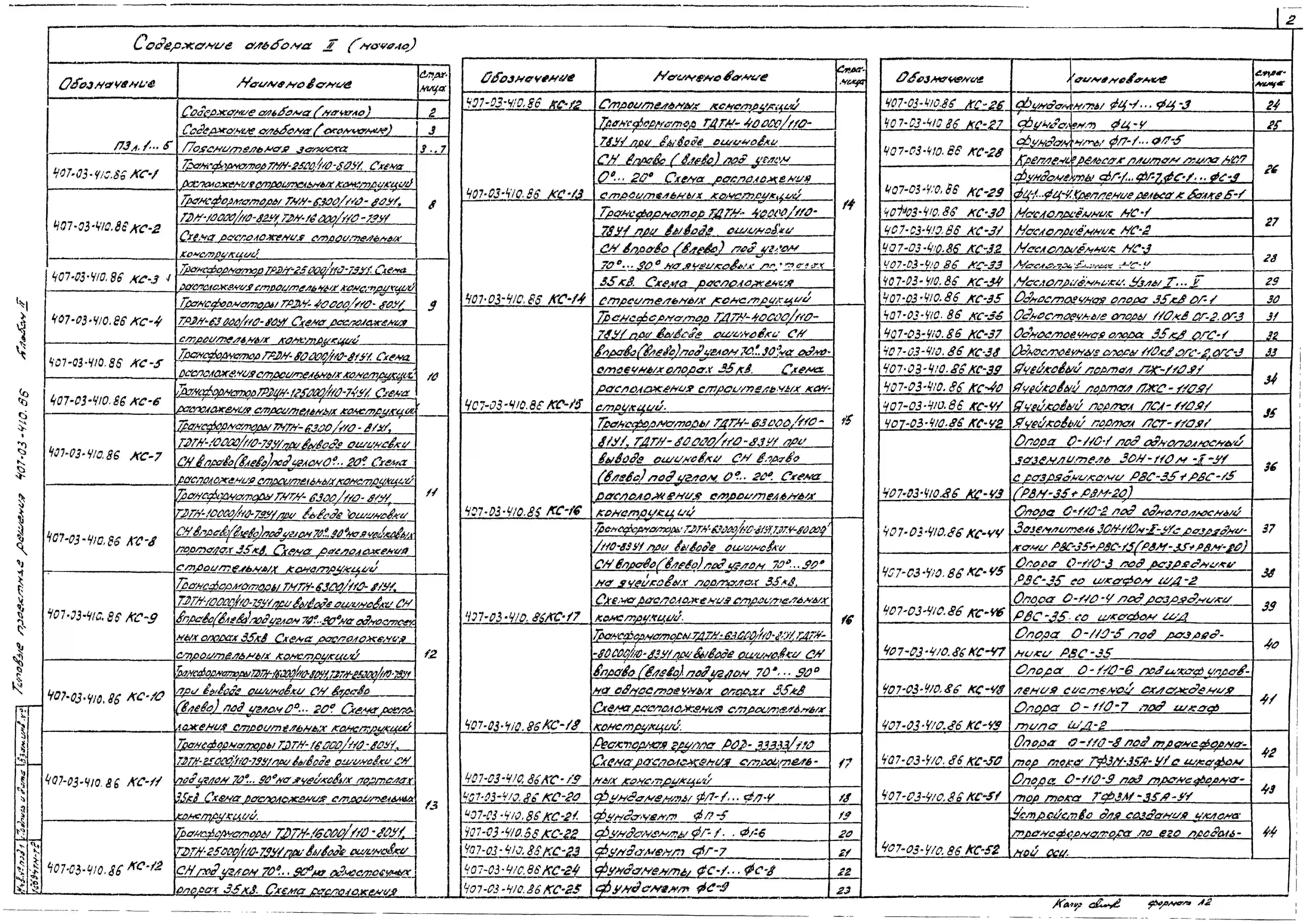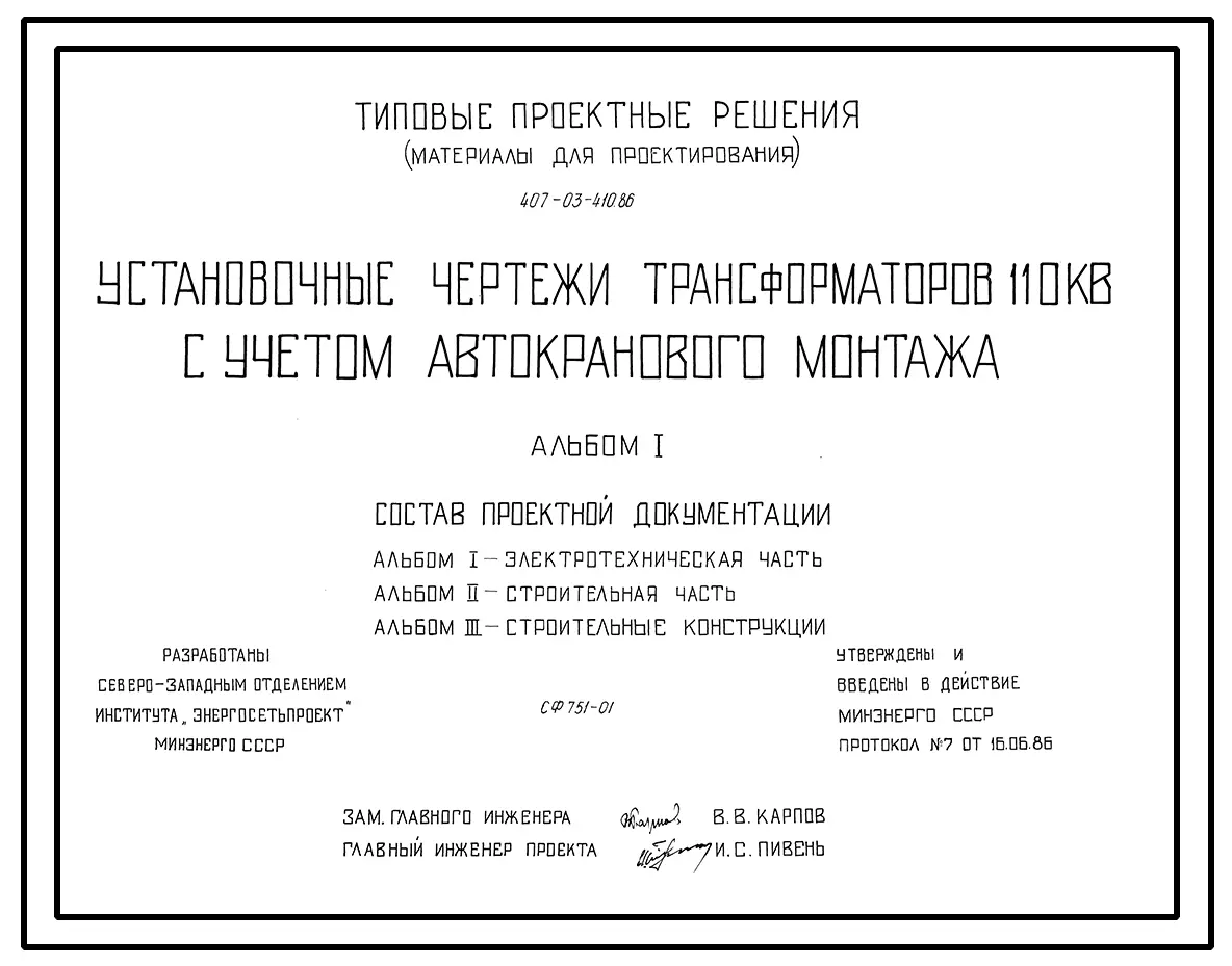 Типовой проект 407-03-410.86 Установочные чертежи трансформаторов 110 кВ с учетом автокранового монтажа
