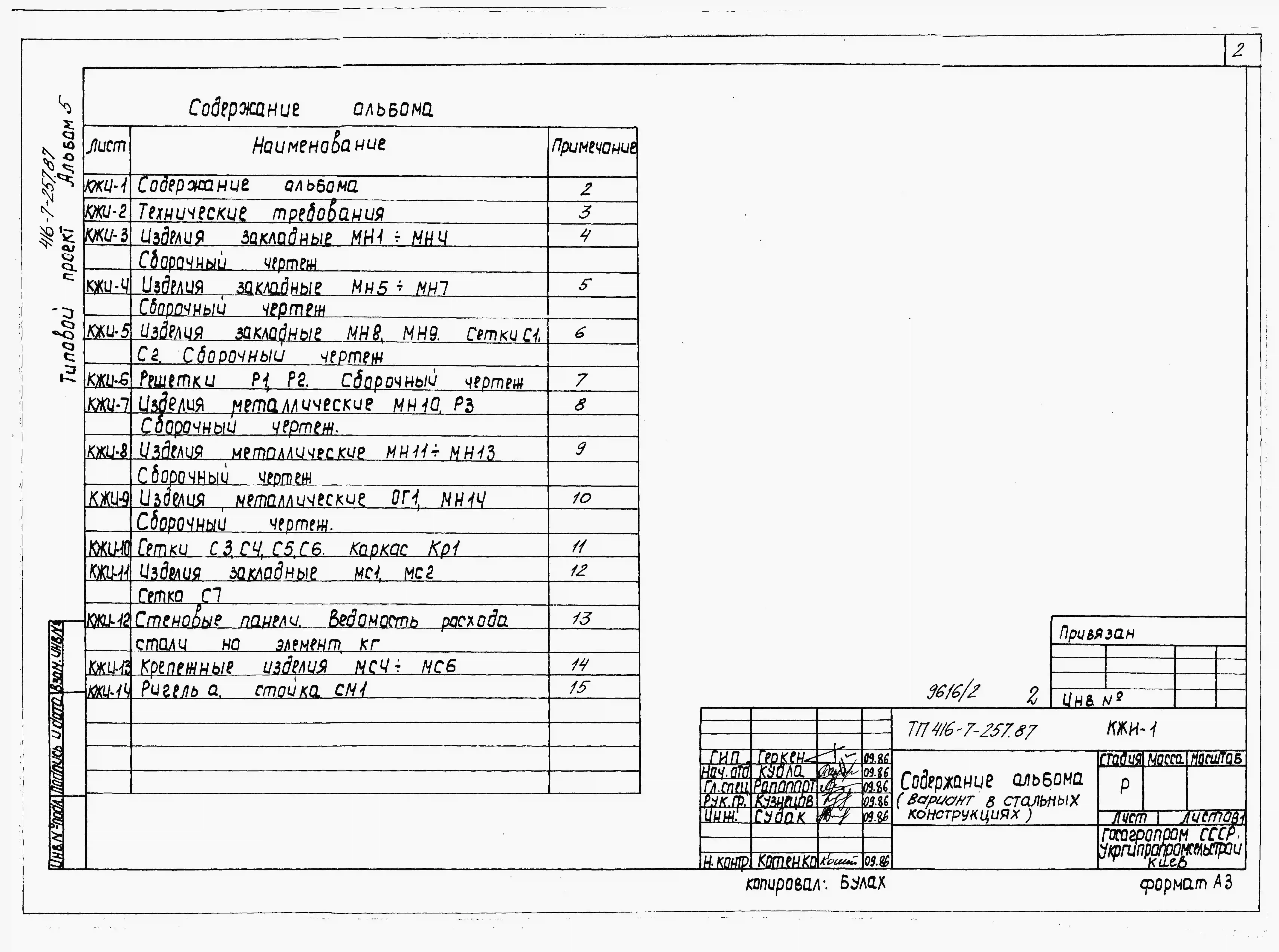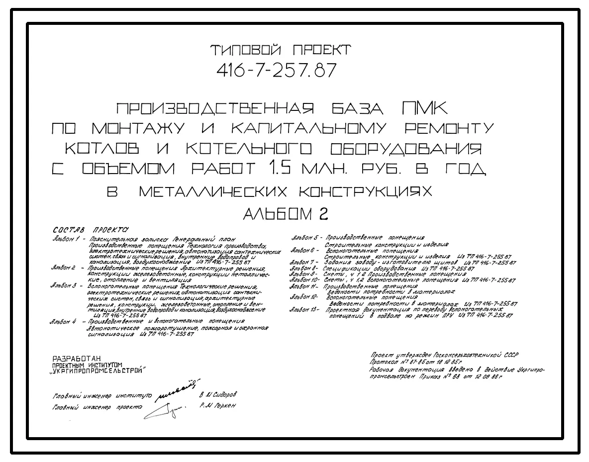 Типовой проект 416-7-257.87 Производственная база ПМК по монтажу и капитальному ремонту котлов и котельного оборудования с объемом работ 1,5 млн.руб. в год в металлических конструкциях