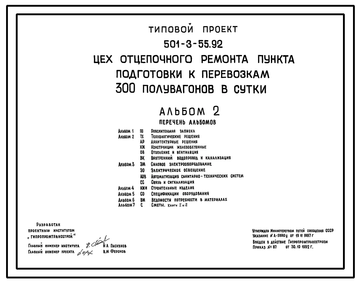 Типовой проект 501-3-55.92 Цех отцепочного ремонта пункта подготовки к перевозкам 300 полувагонов в сутки