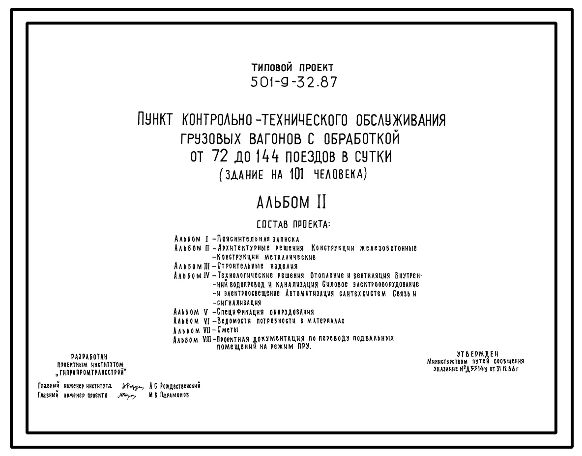 Типовой проект 501-9-32.87 Пункт контрольно-технического обслуживания грузовых вагонов с обработкой от 72 до 144 поездов в сутки