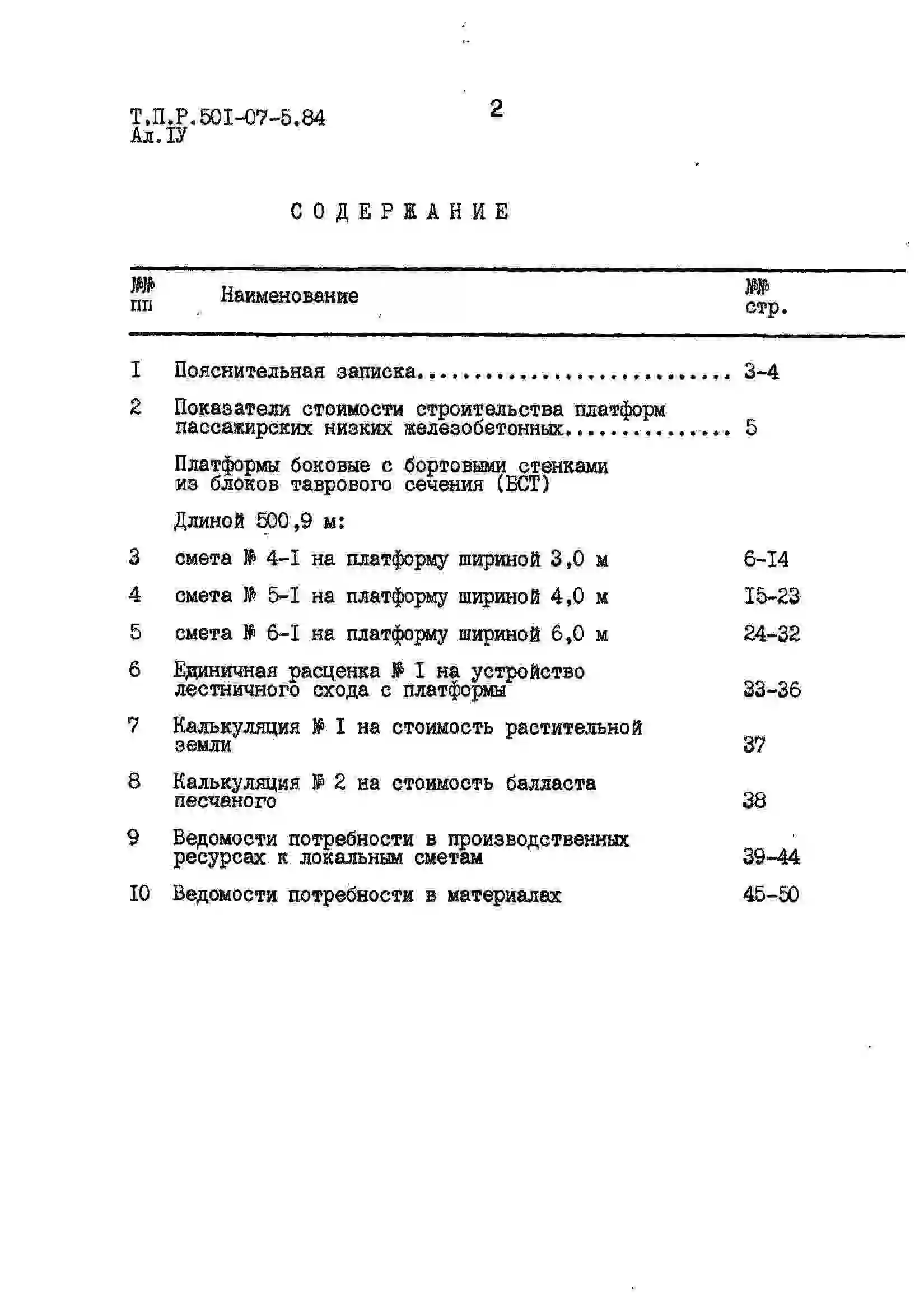 Типовой проект 501-07-5.84 Платформы пассажирские низкие железобетонные