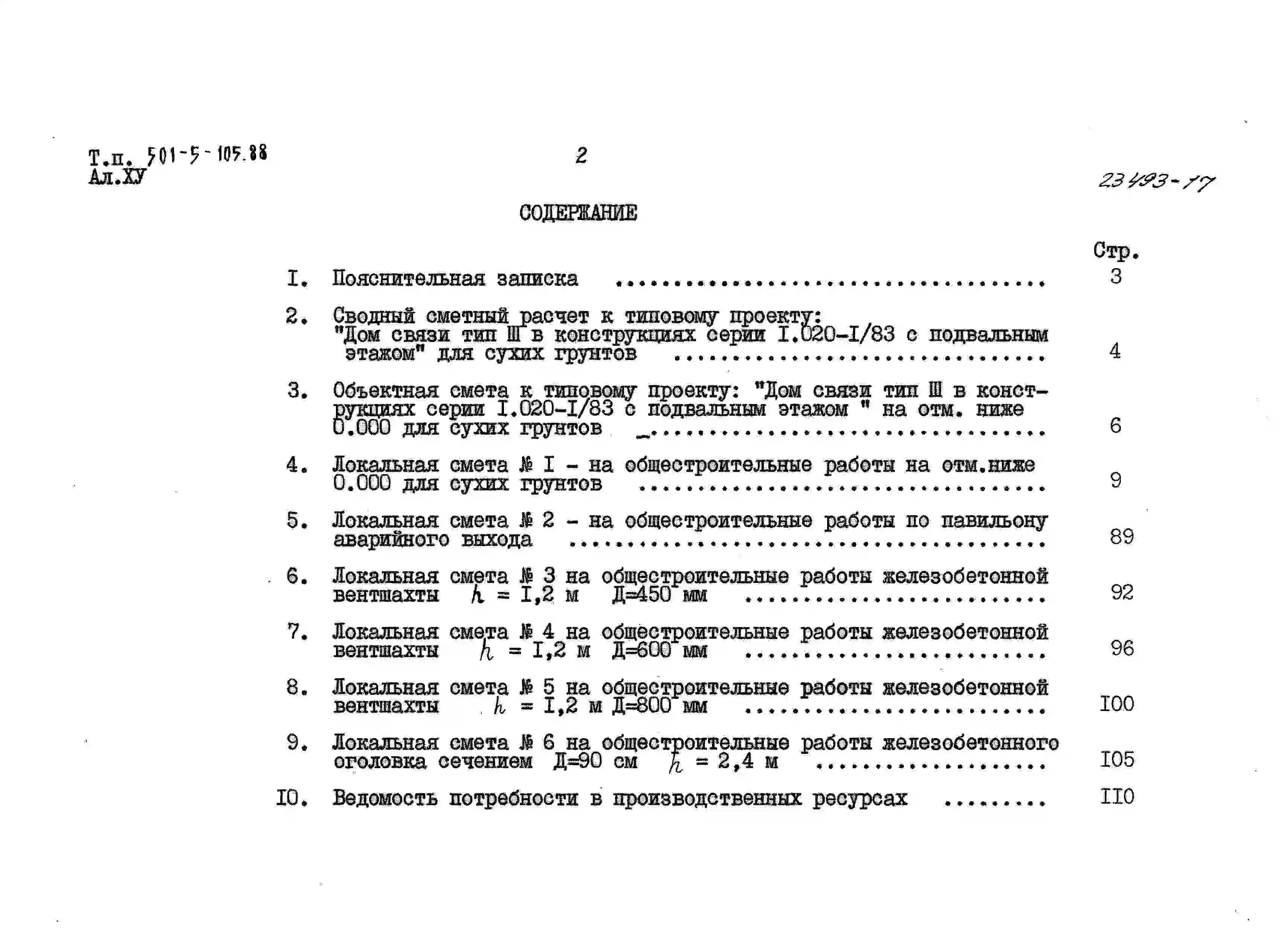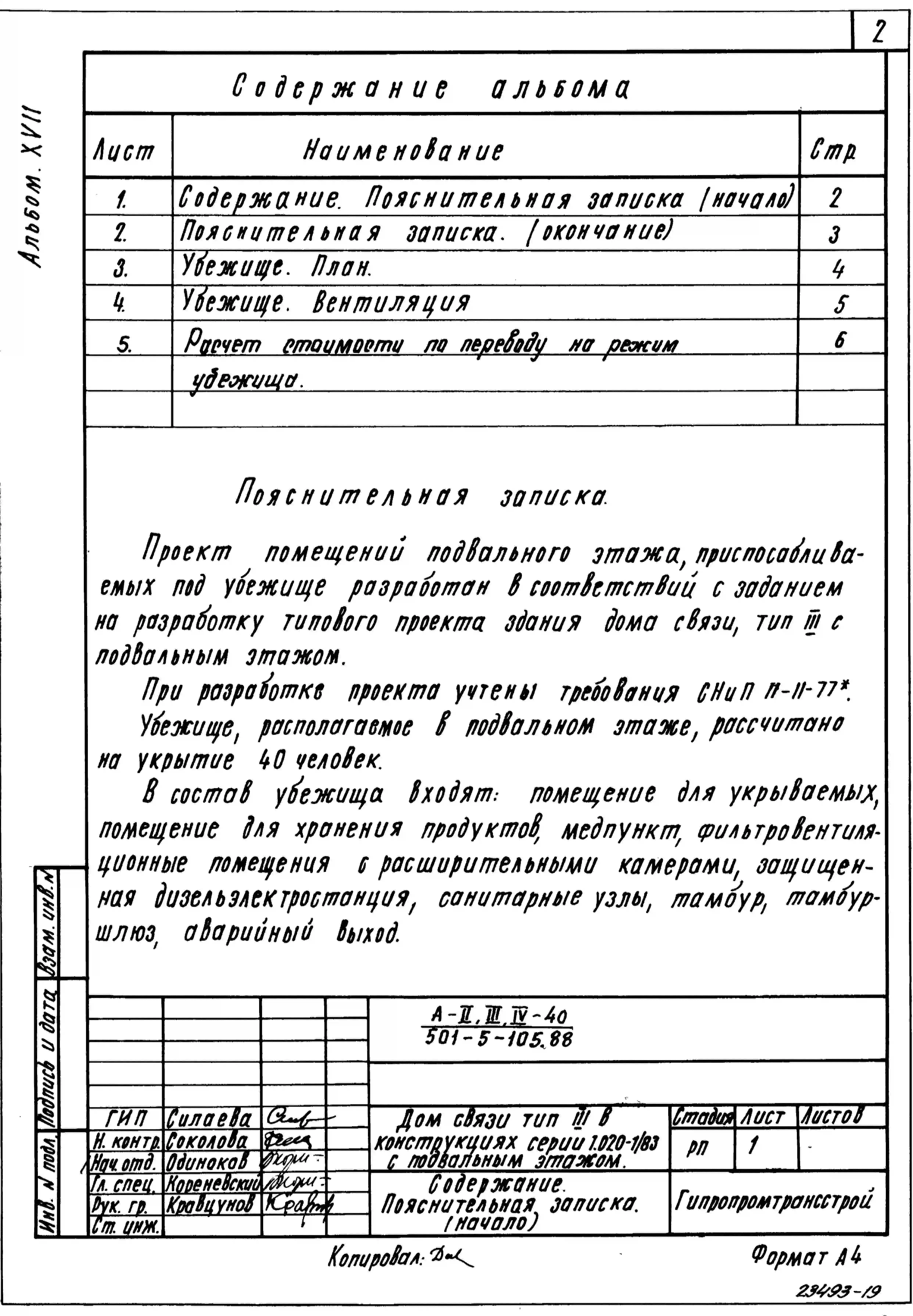 Типовой проект 501-5-105.88 Дом связи. Тип III в конструкциях серии 1.020-1/83 с подвальным этажом.