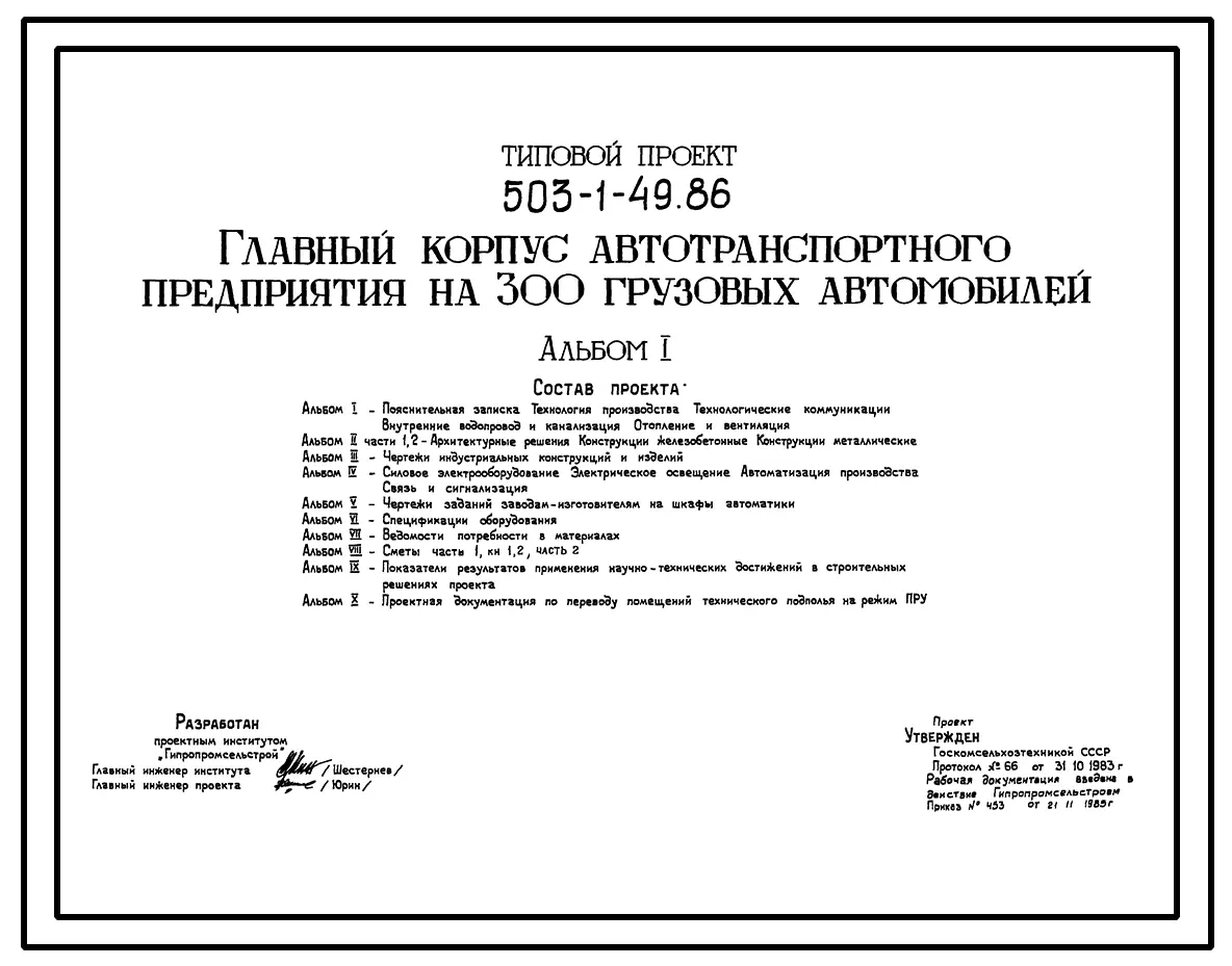 Типовой проект 503-1-49.86 Главный корпус автотранспортного предприятия на 300 грузовых автомобилей