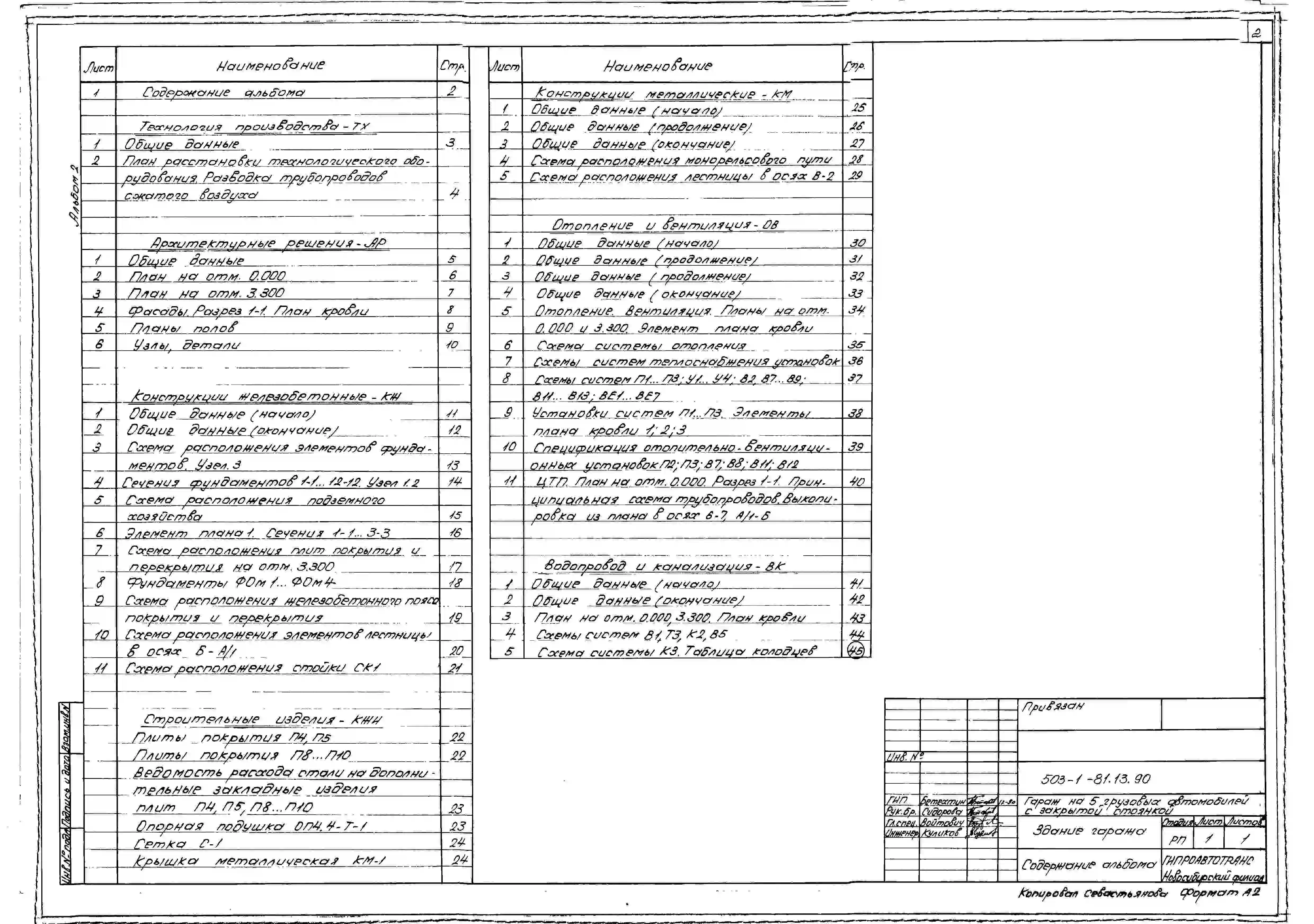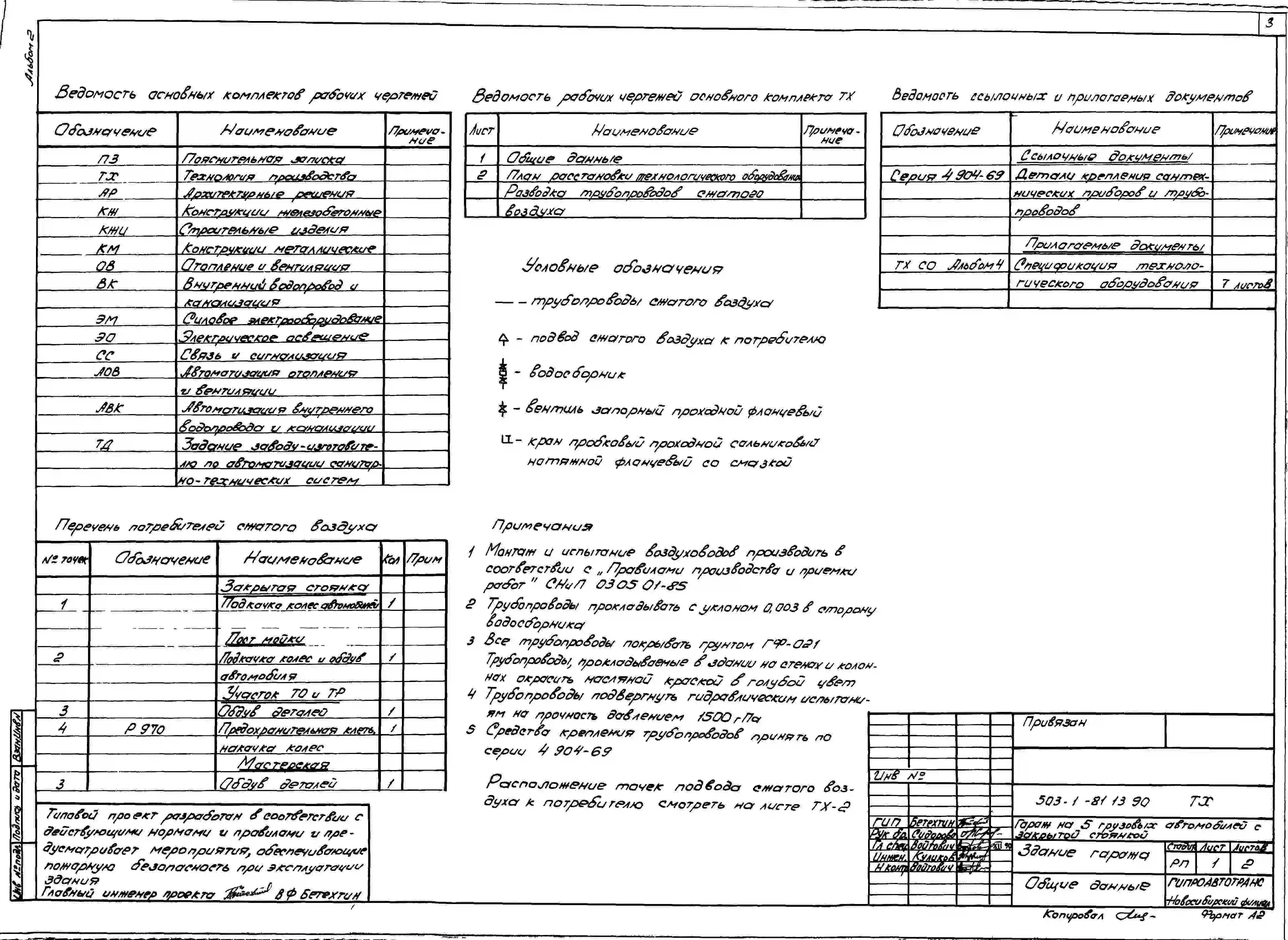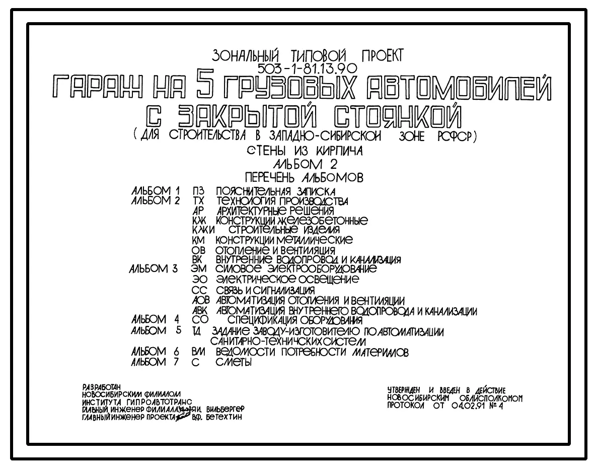 Типовой проект 503-1-81.13.90 Гараж на 5 грузовых автомобилей с закрытой стоянкой. Стены из кирпича (для строительства в Западно-Сибирской зоне Российской Федерации)