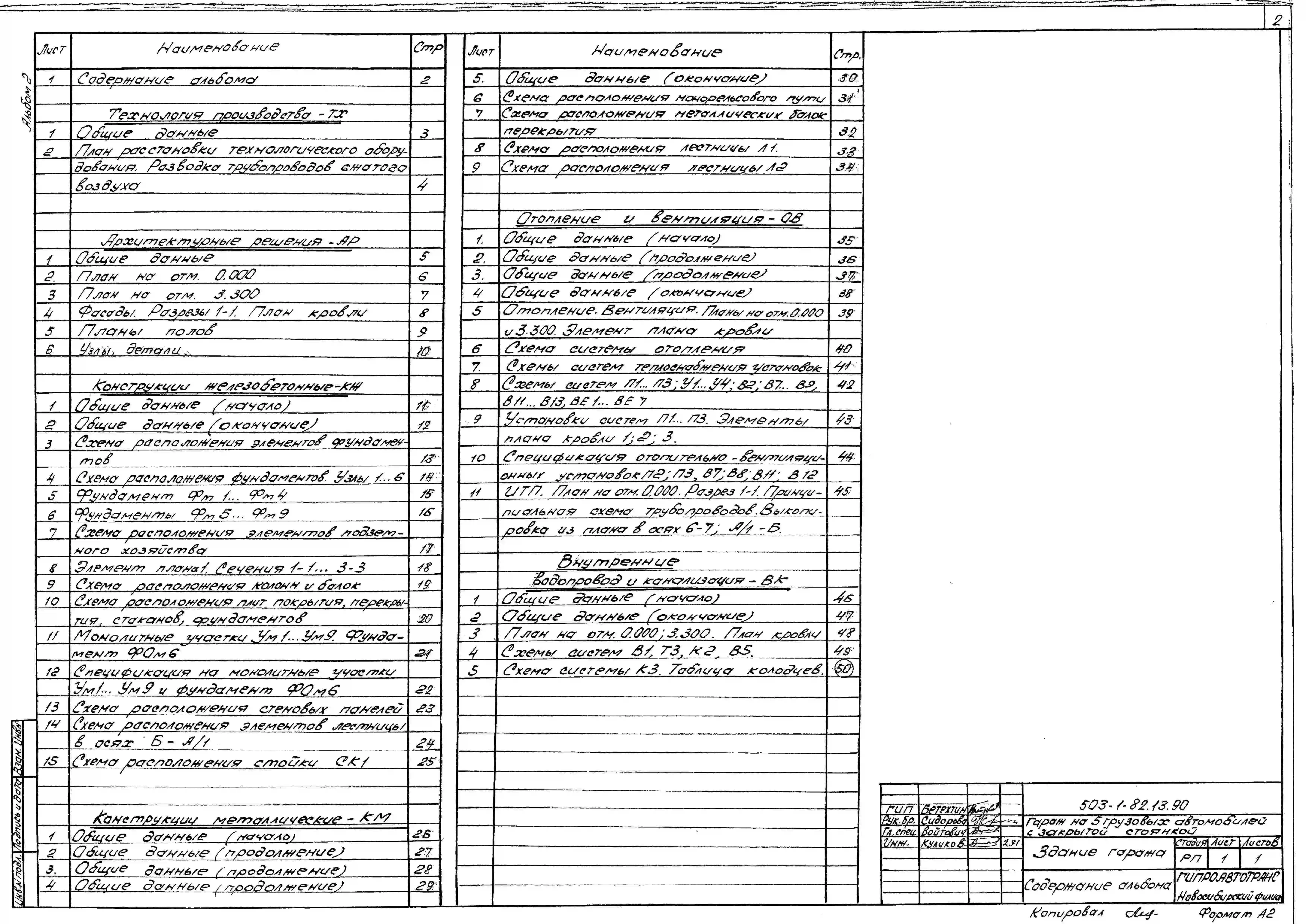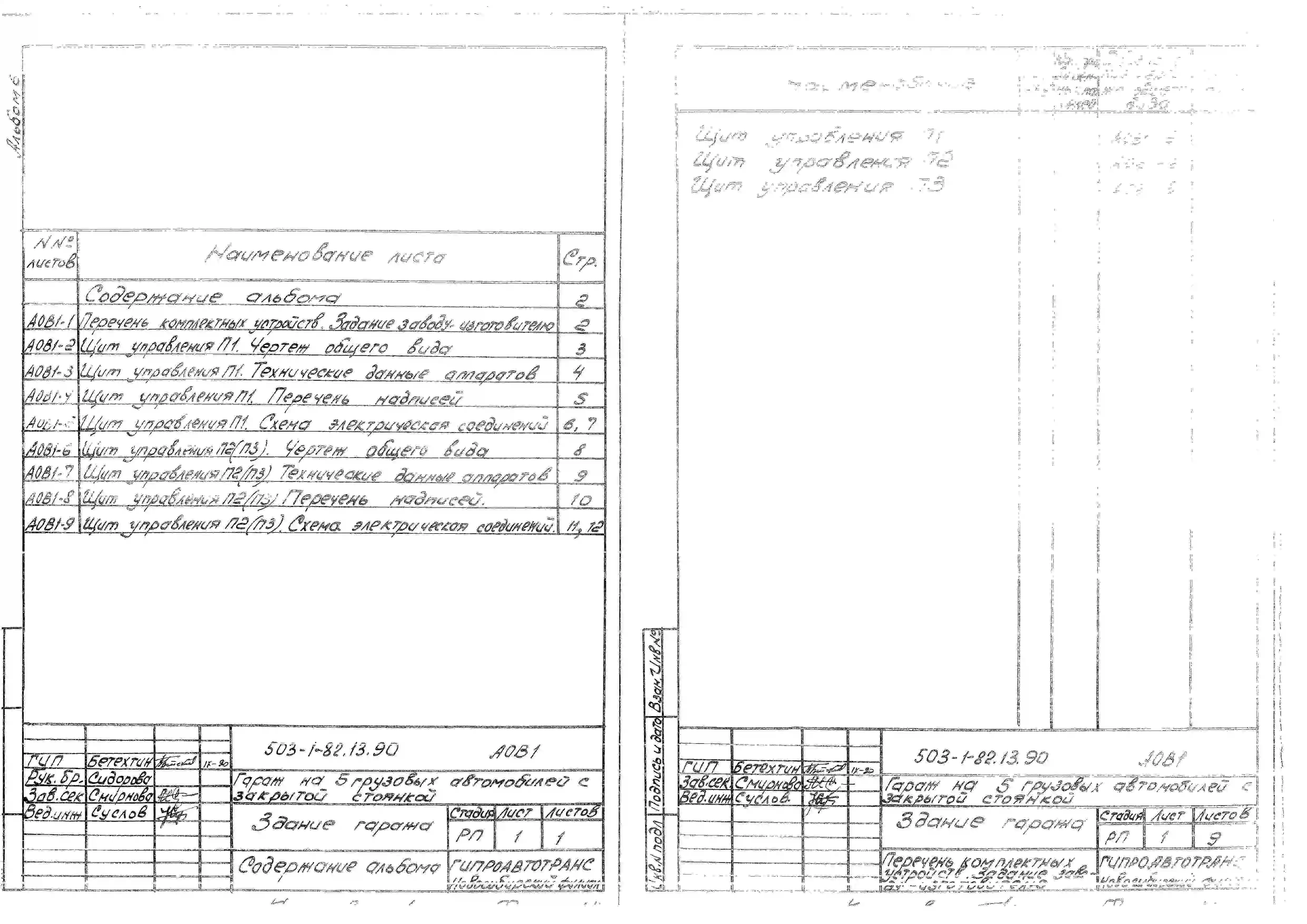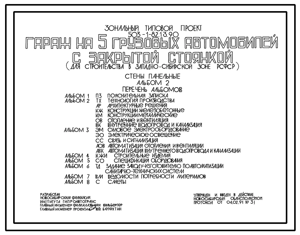 Типовой проект 503-1-82.13.90 Гараж на 5 грузовых автомобилей с закрытой стоянкой. Стены панельные (для строительства в Западно-Сибирской зоне Российской Федерации)