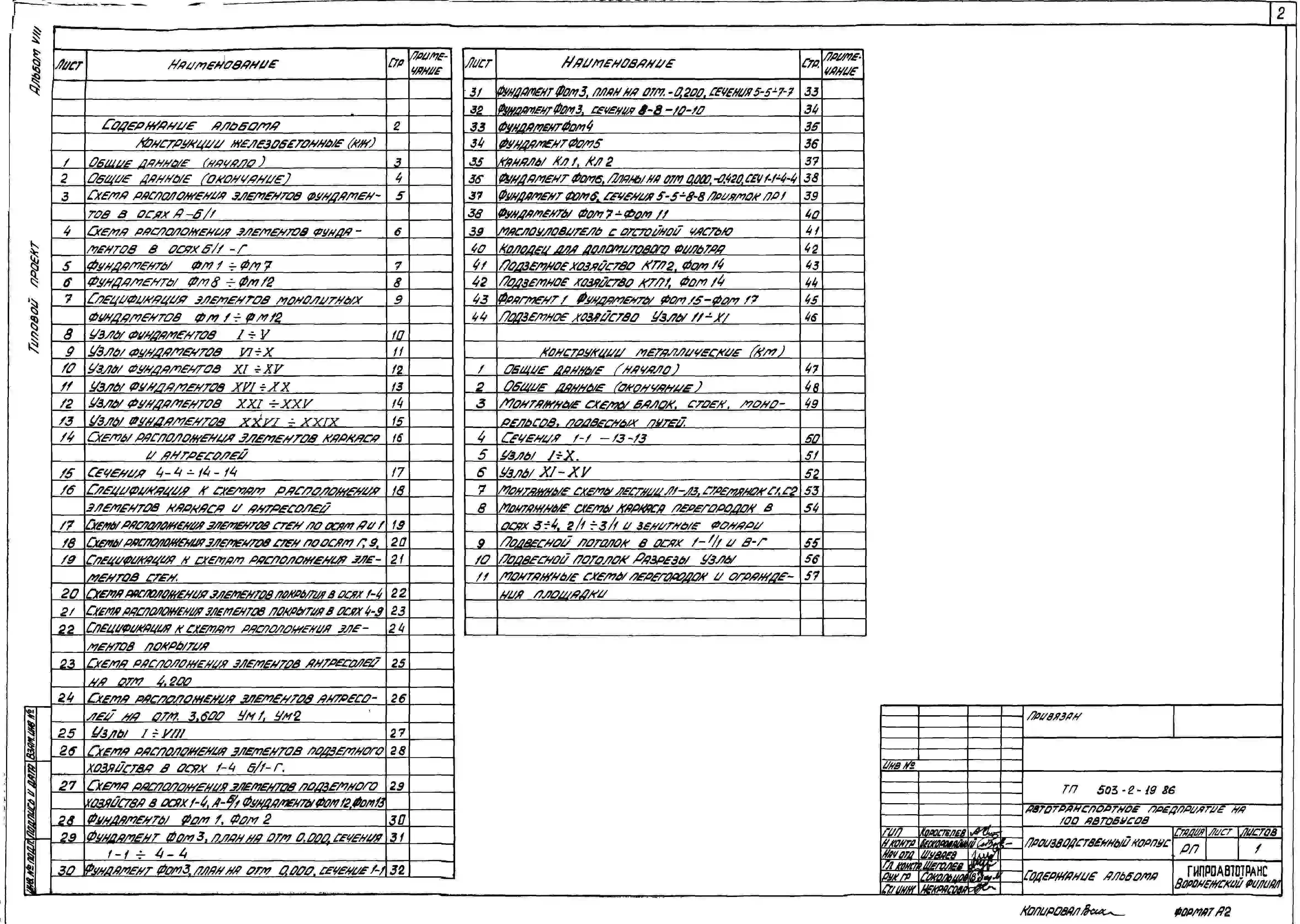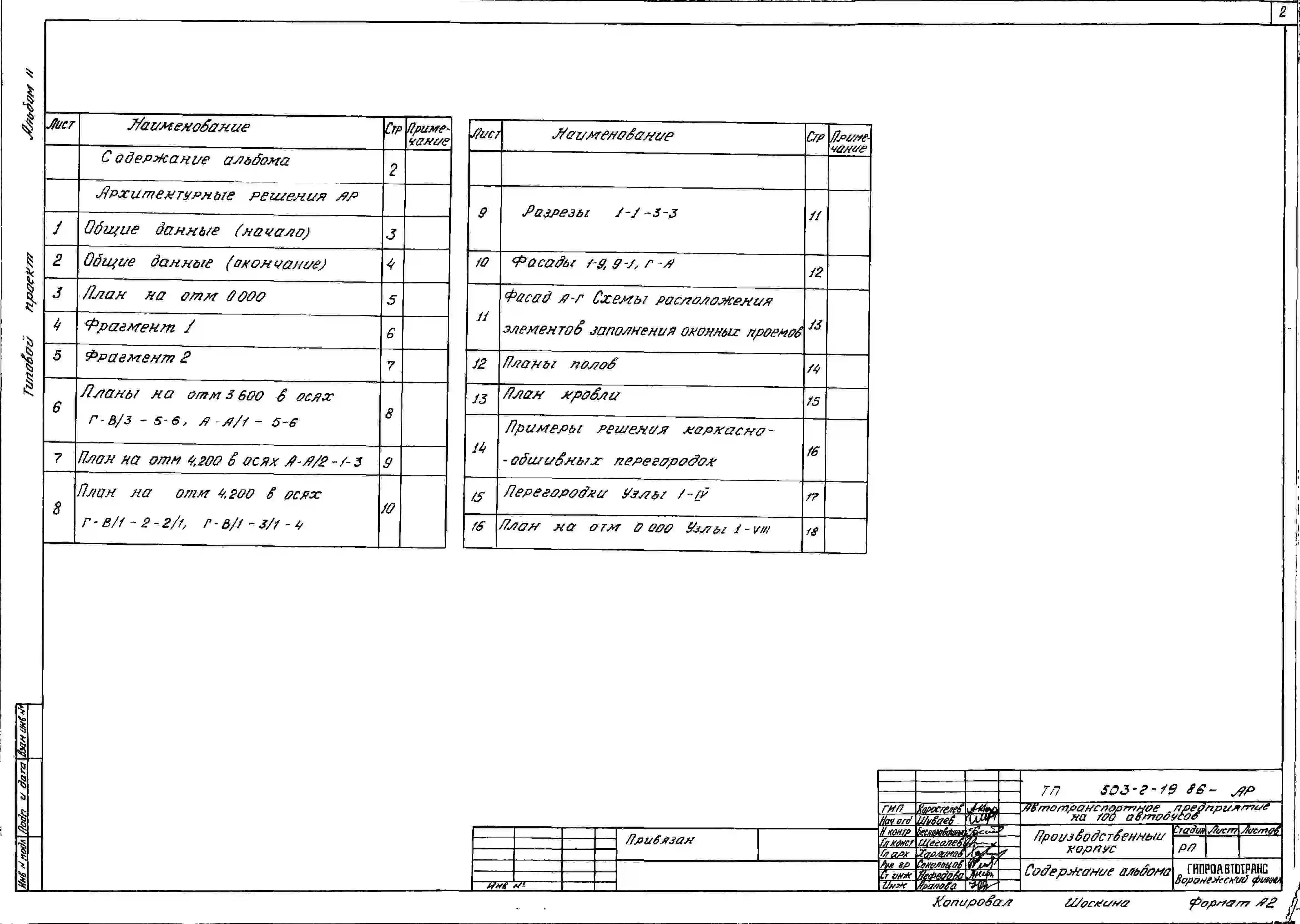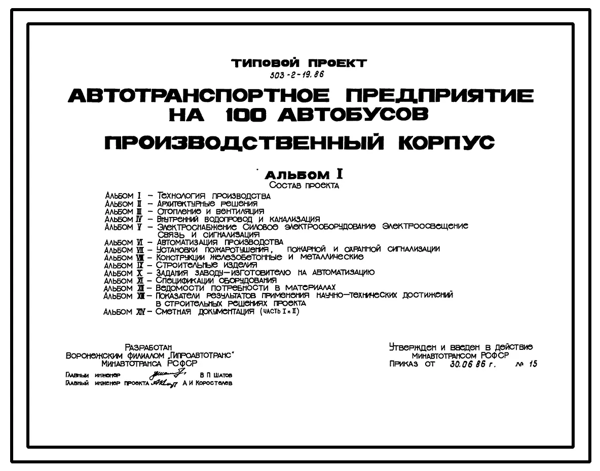 Типовой проект 503-2-19.86 Производственный корпус автотранспортного предприятия на 100 автобусов