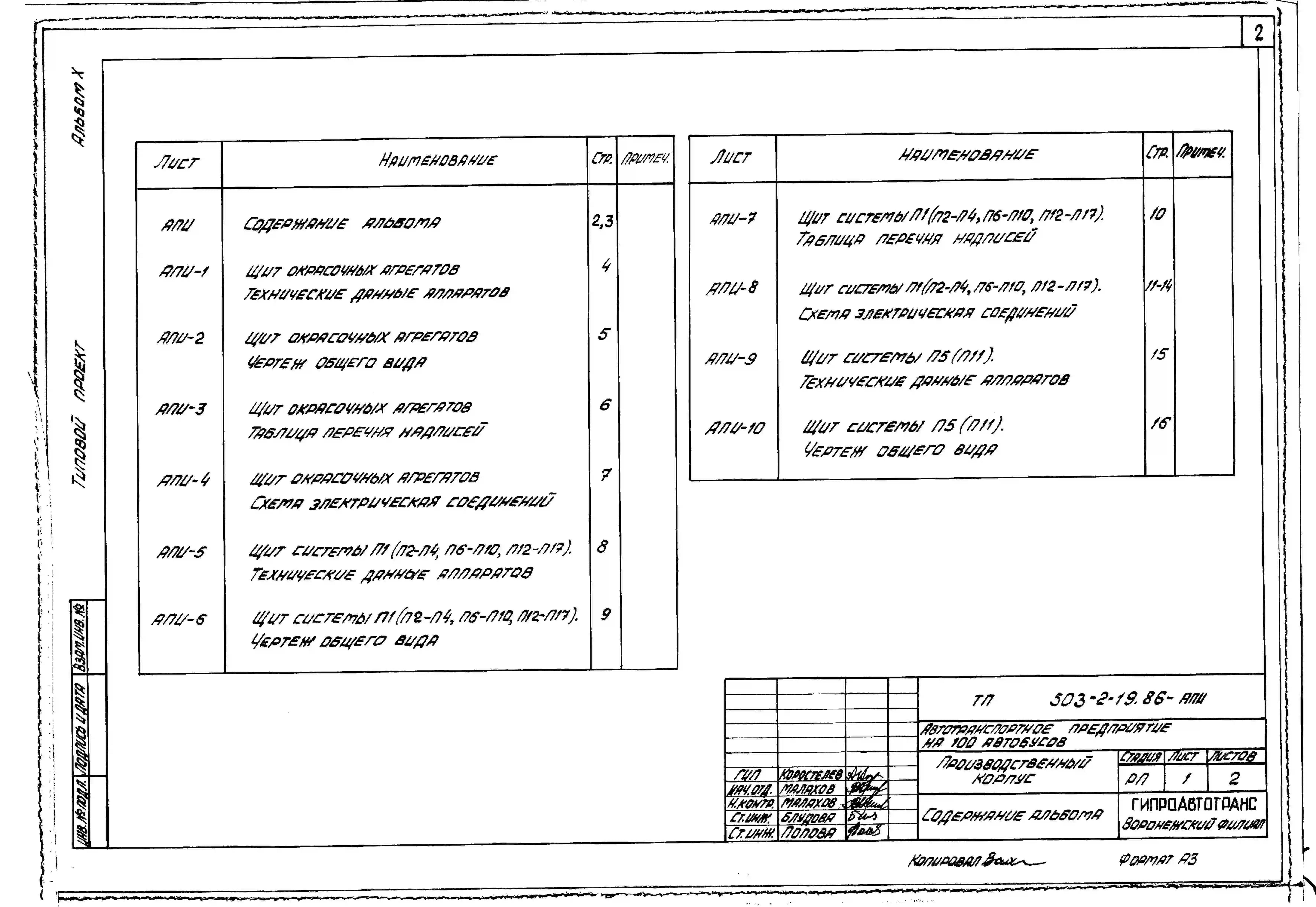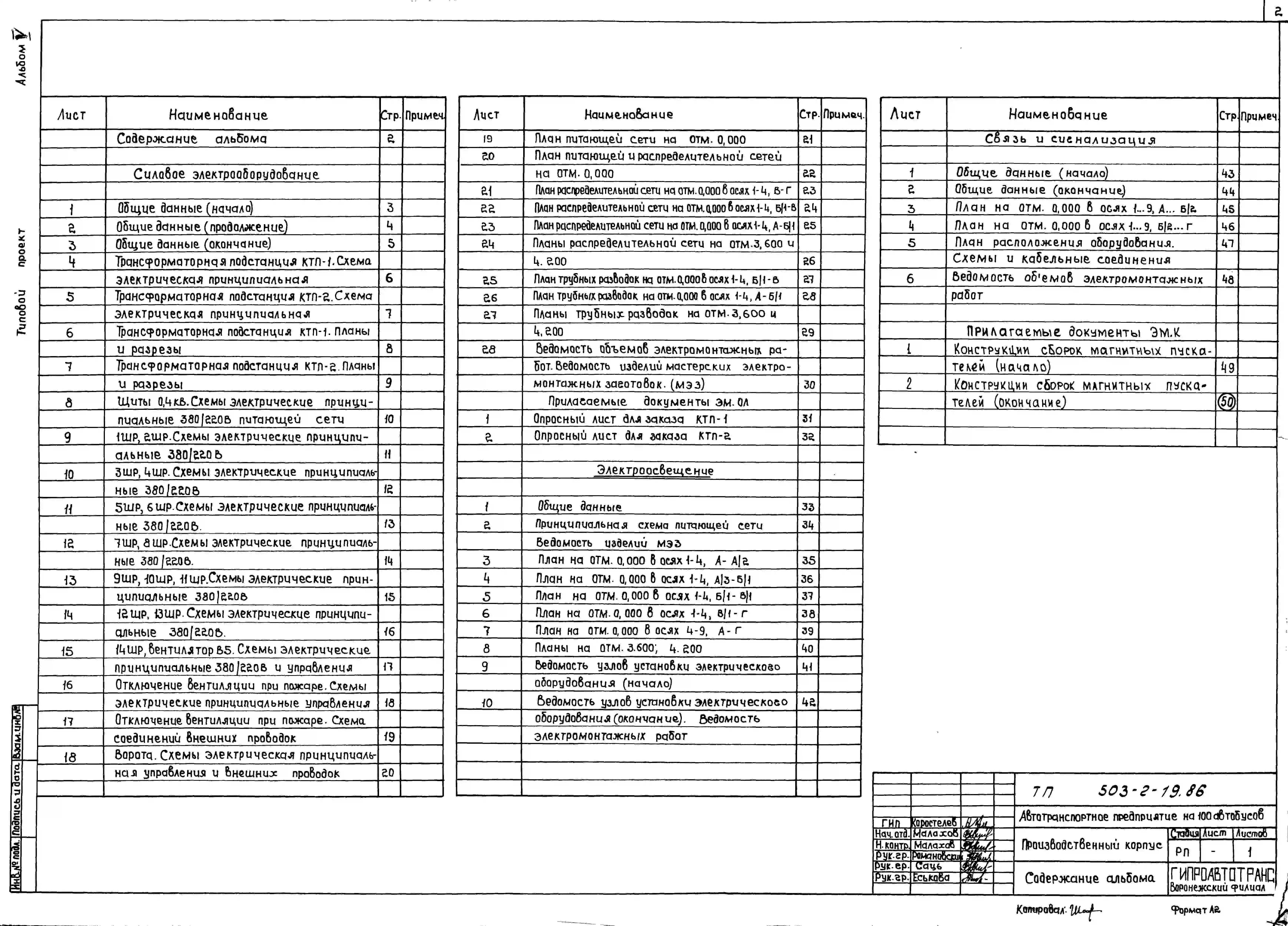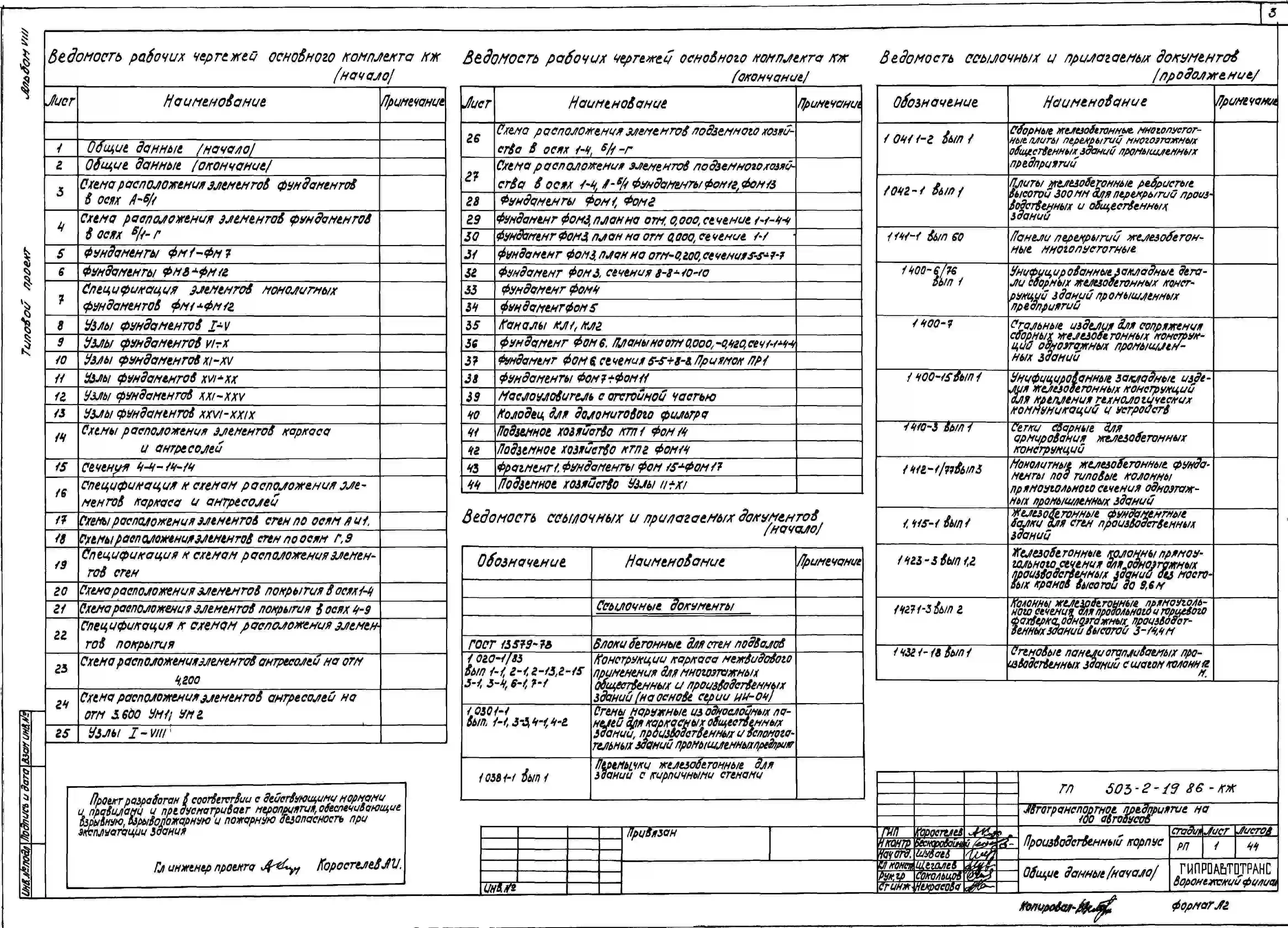 Типовой проект 503-2-19.86 Производственный корпус автотранспортного предприятия на 100 автобусов