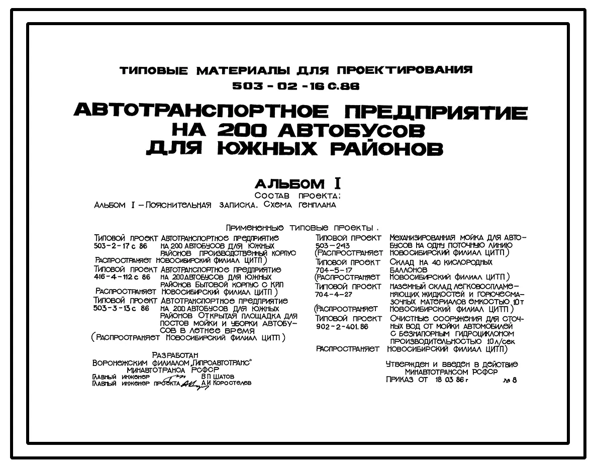 Типовой проект 503-02-16с.86 Автотранспортное предприятие на 200 автобусов для южных районов. Сейсмичность 7 баллов