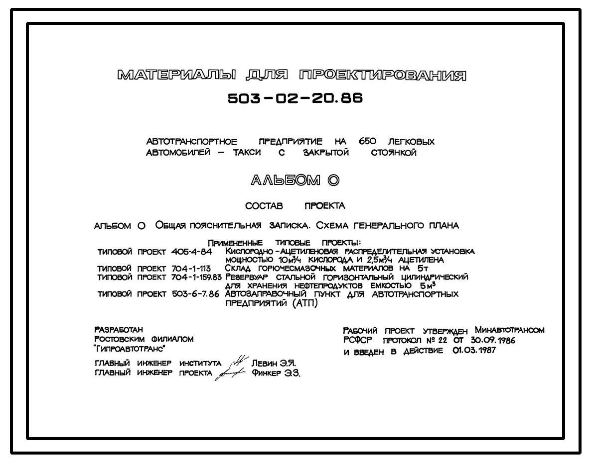 Типовой проект 503-02-20.86 Автотранспортное предприятие на 650 легковых автомобилей-такси с закрытой стоянкой