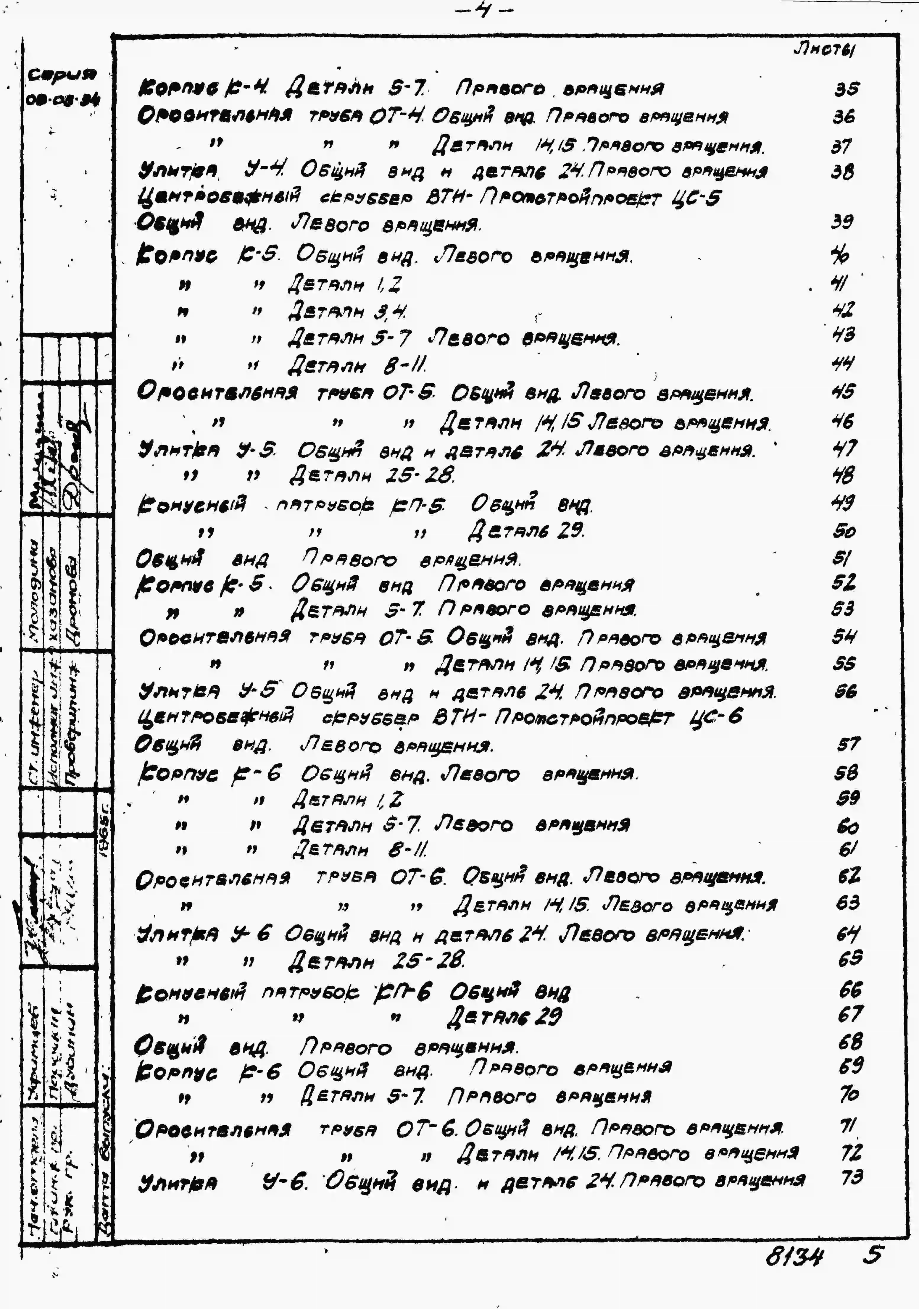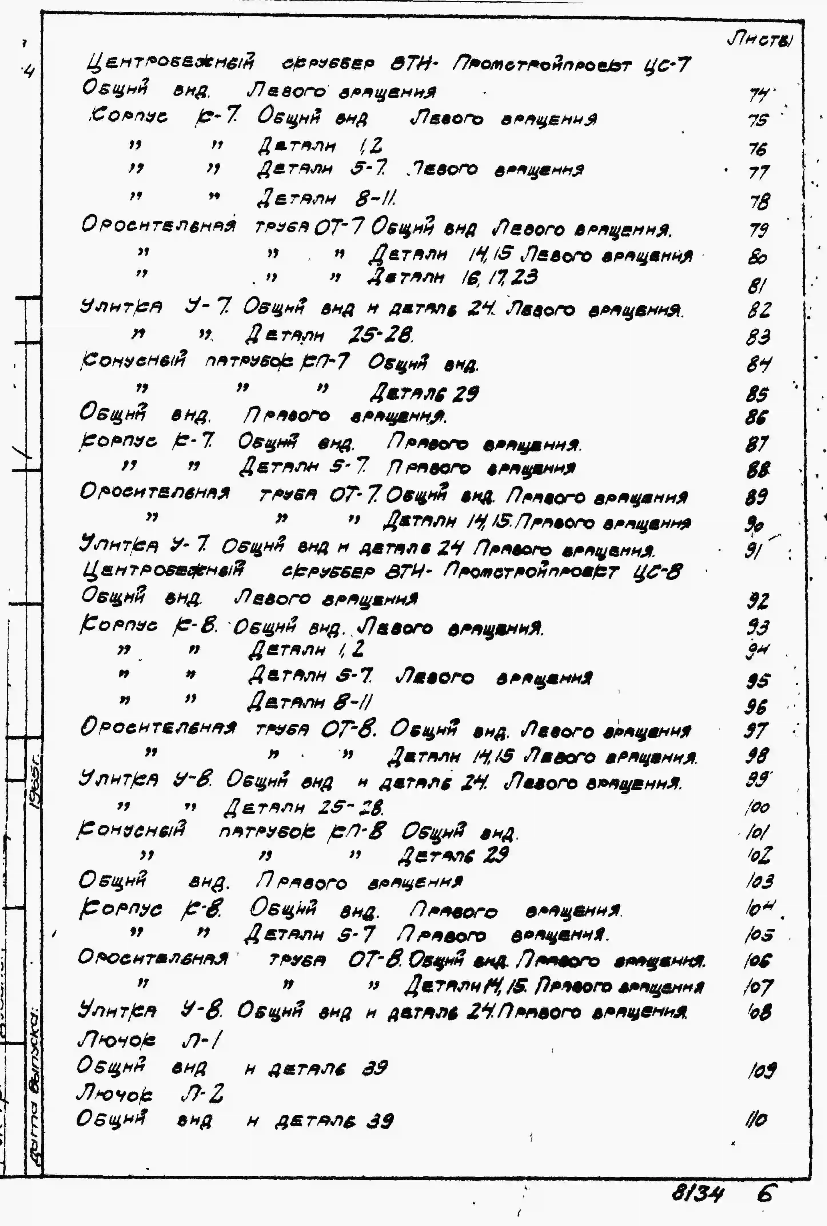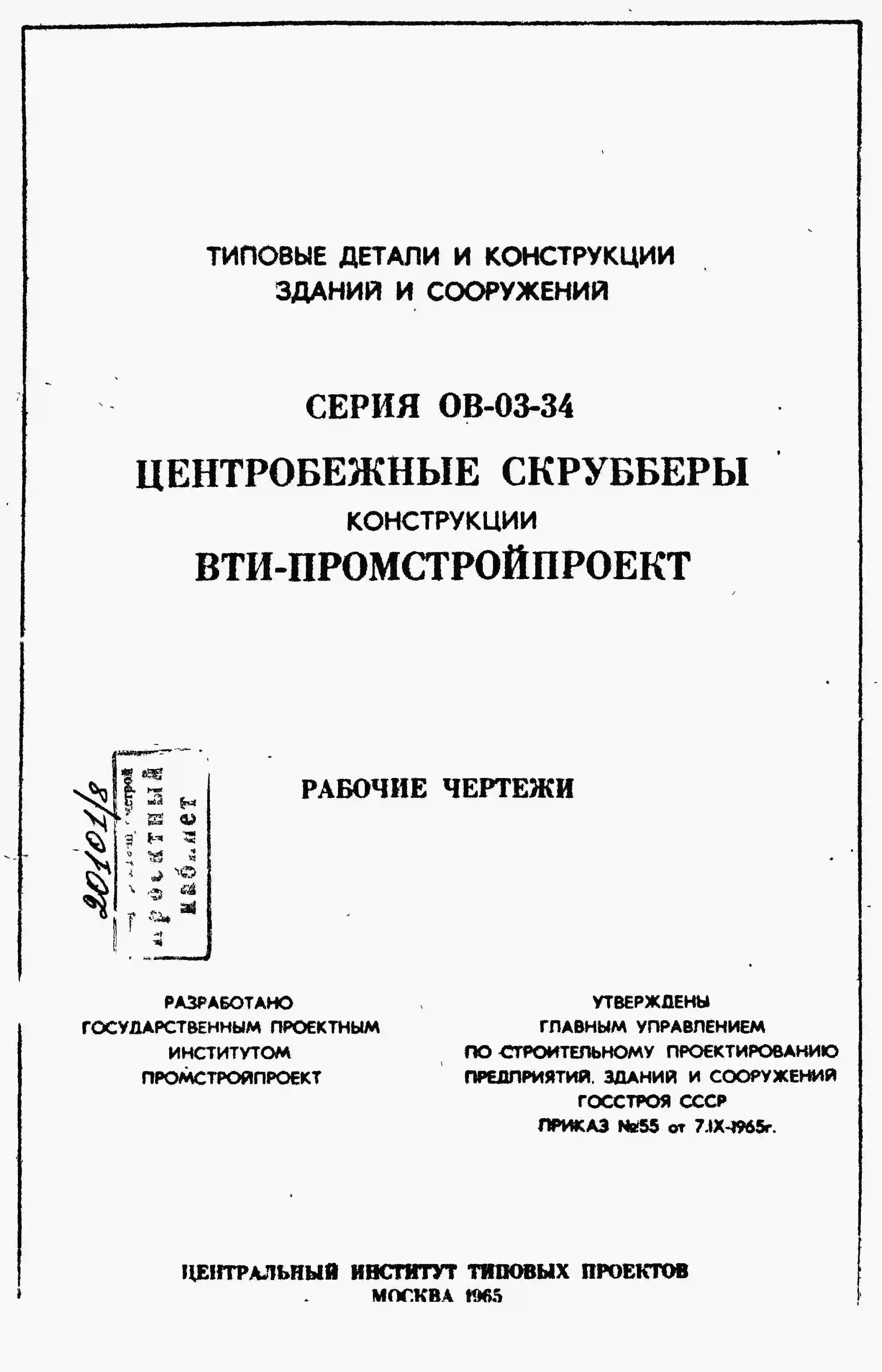 Серия ОВ-03-34 Центробежные скрубберы конструкций ВТИ-Промстройпроект. Для очистки воздуха в вытяжных вентиляционных системах. Рабочие чертежи.