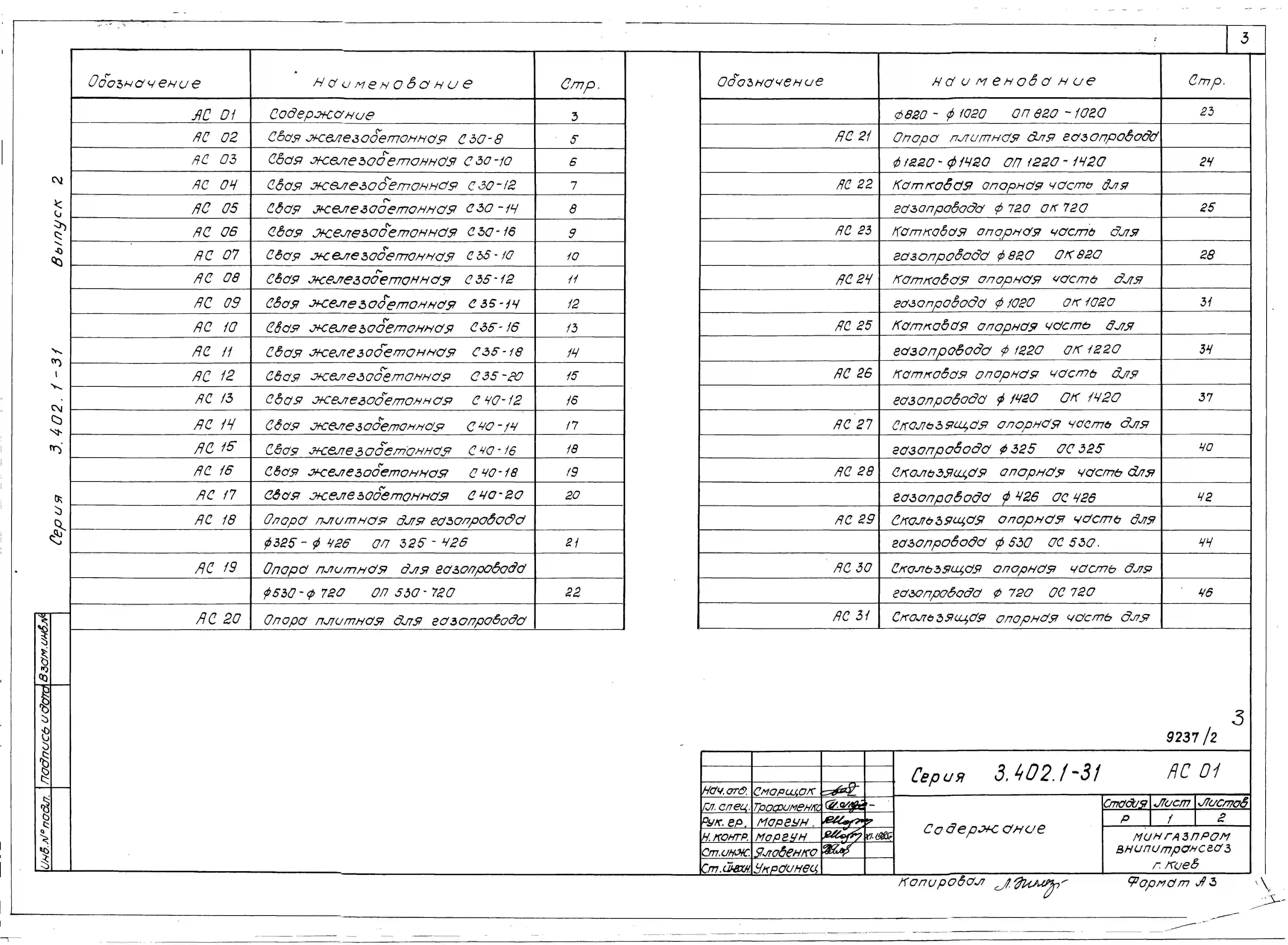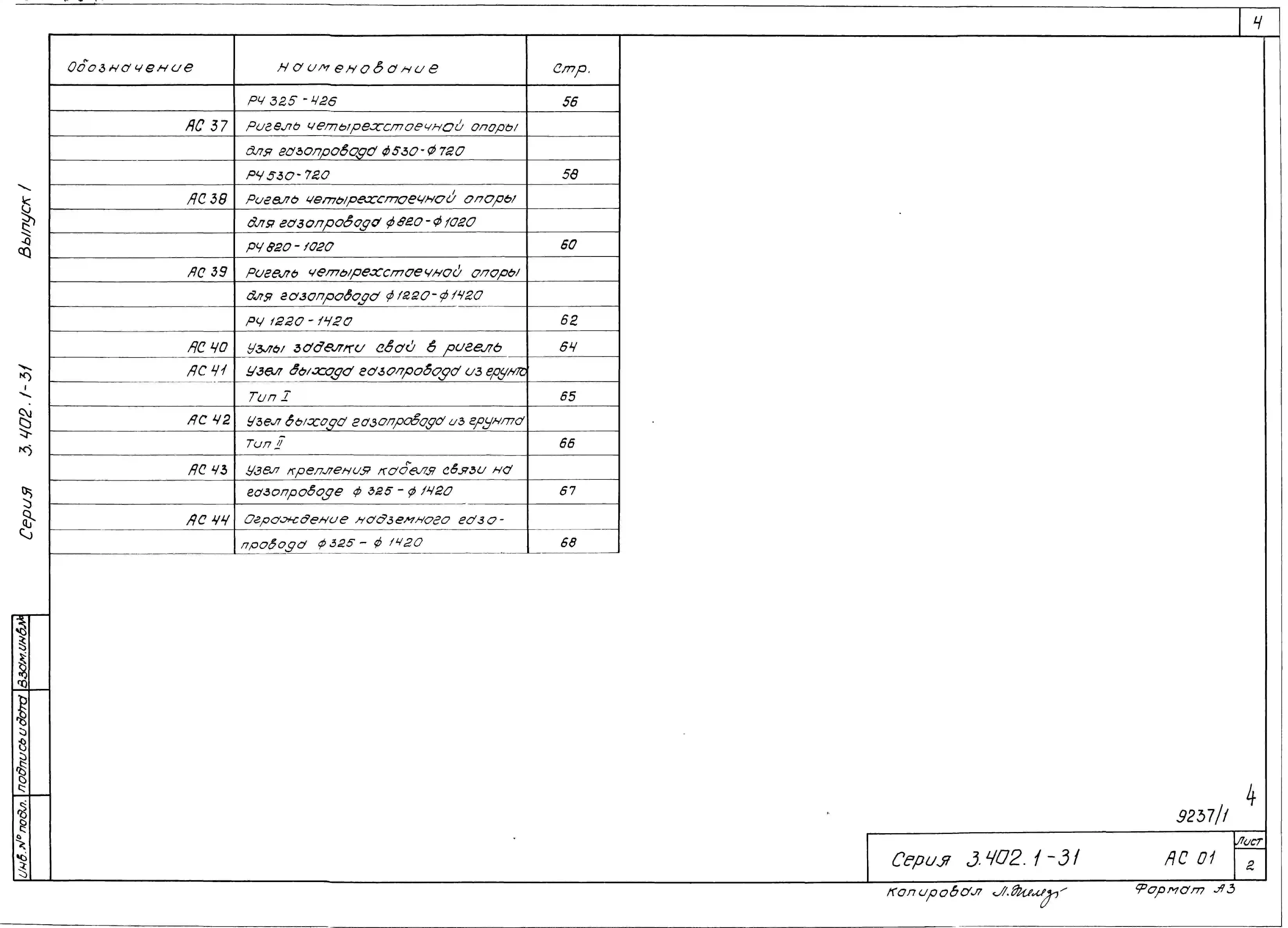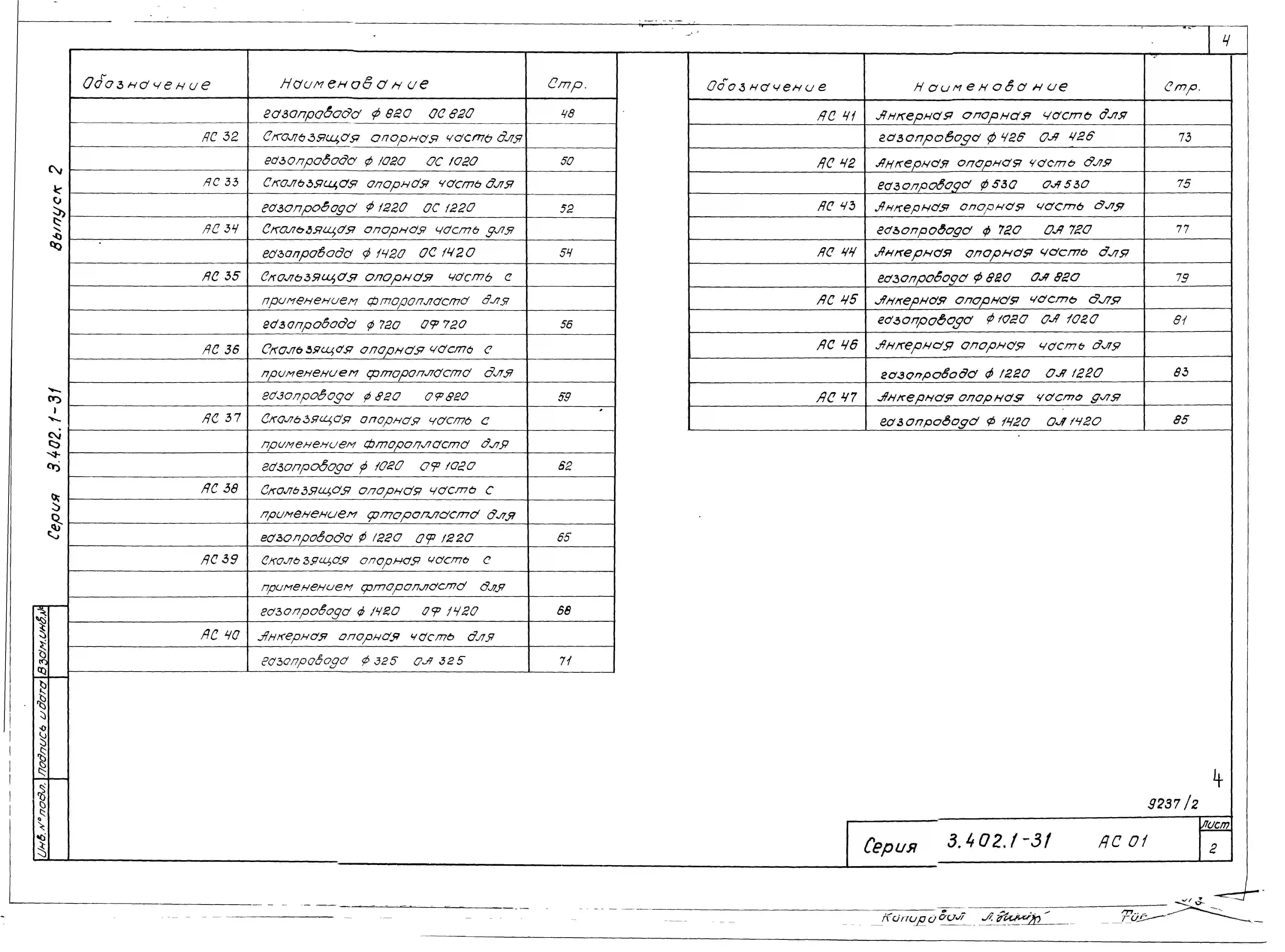 Серия 3.402.1-31 Надземные балочные переходы магистральных газопроводов диаметром 325-1420 мм. Рабочие чертежи.