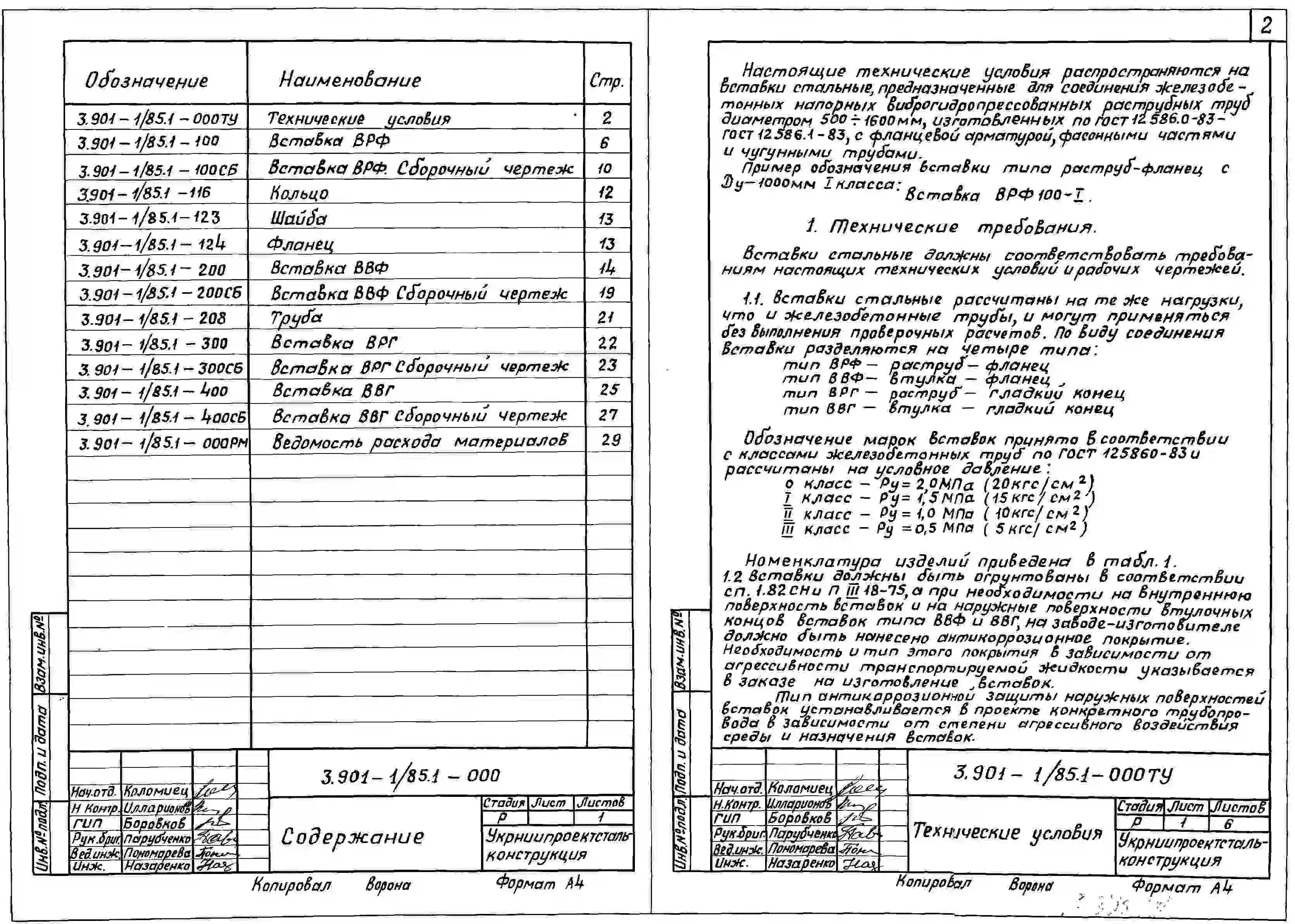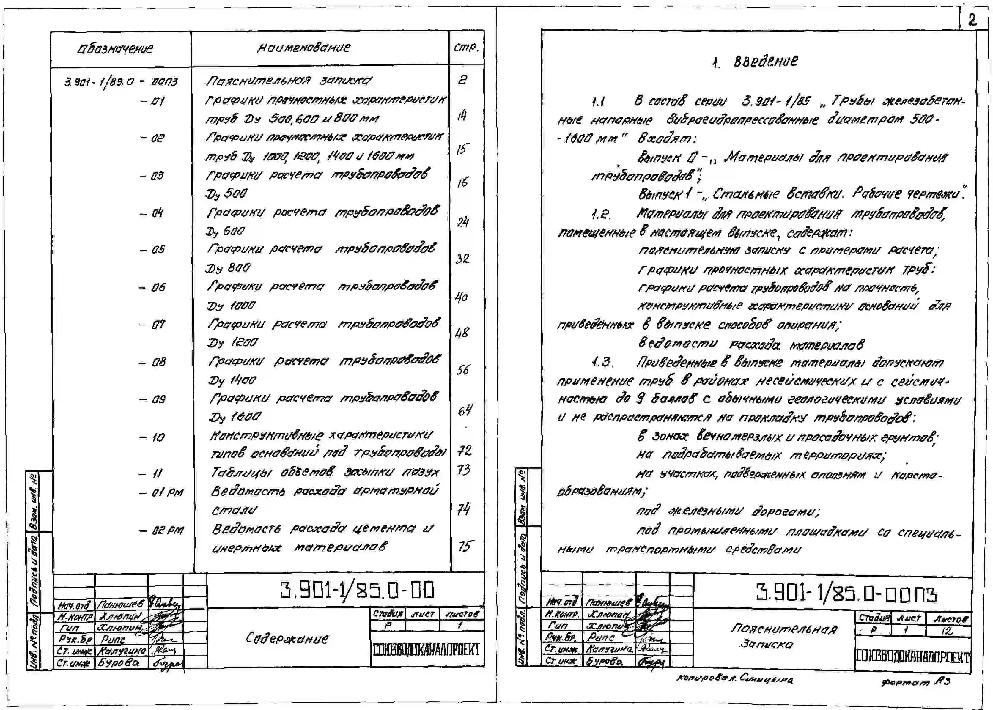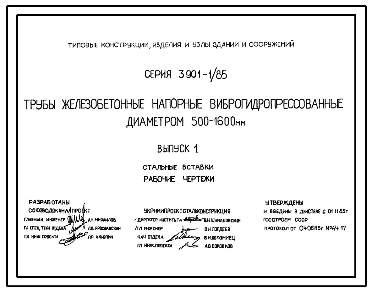Серия 3.901-1/85 Трубы железобетонные напорные виброгидропрессованные диаметром 500-1600 мм. Материалы для проектирования и рабочие чертежи. Все выпуски.