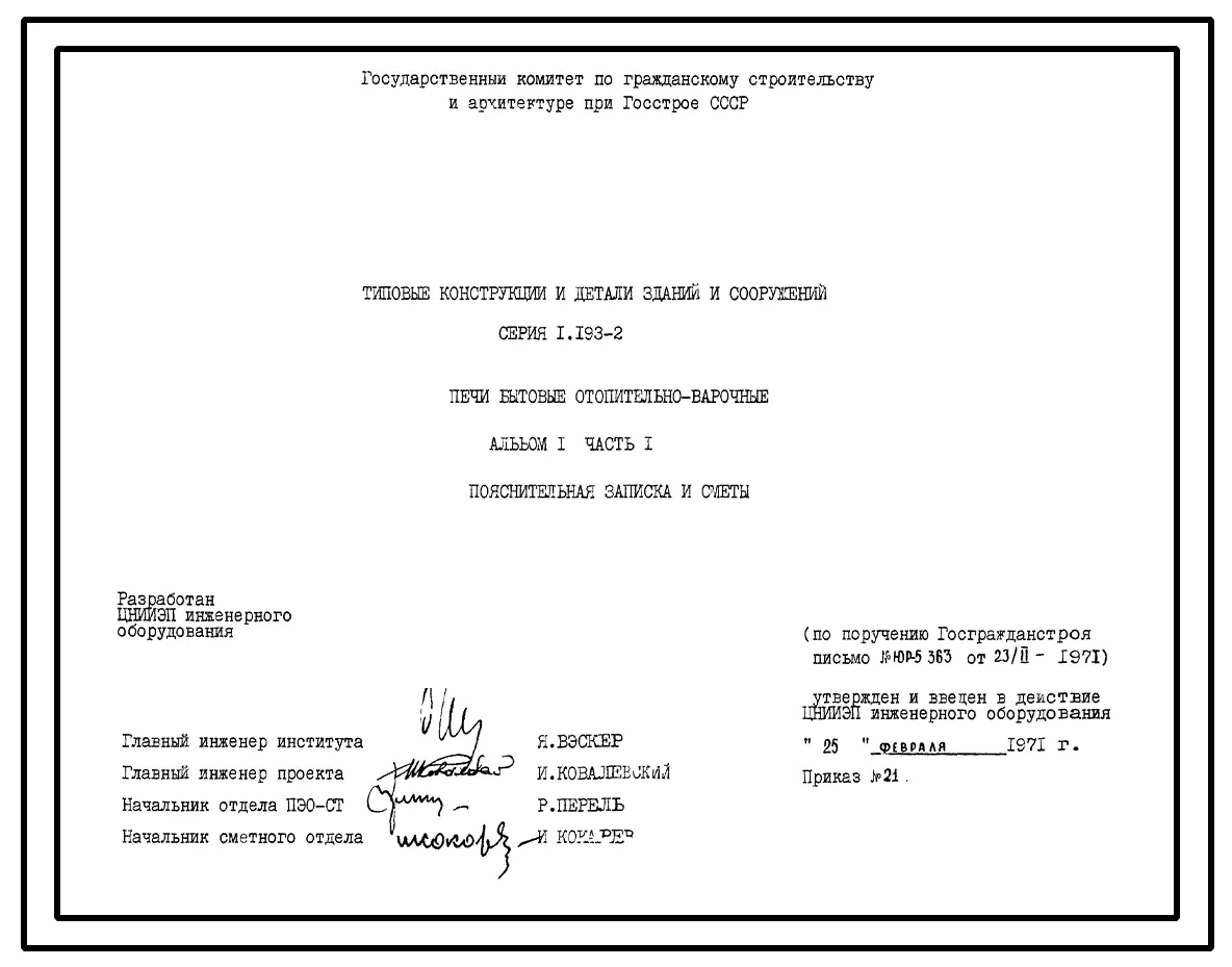 Серия 1.193-2 Печи бытовые отопительно-варочные. Рабочие чертежи.