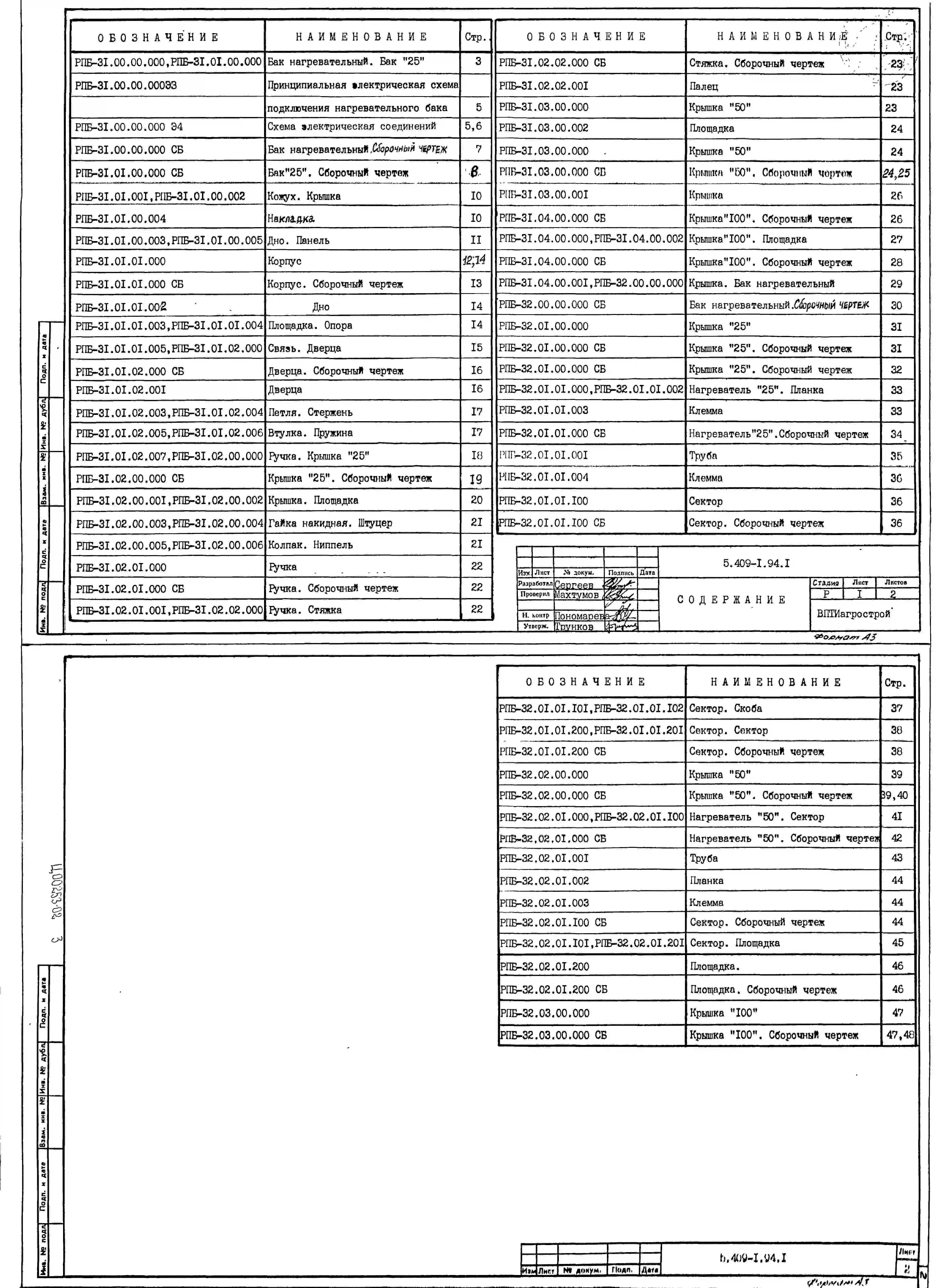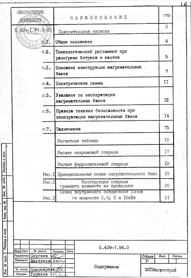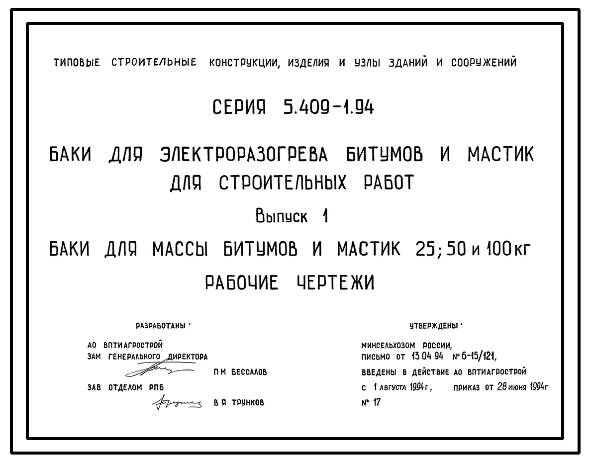 Серия 5.409-1.94 Баки для электроразогрева битумов и мастик для строительных работ. Рабочие чертежи.