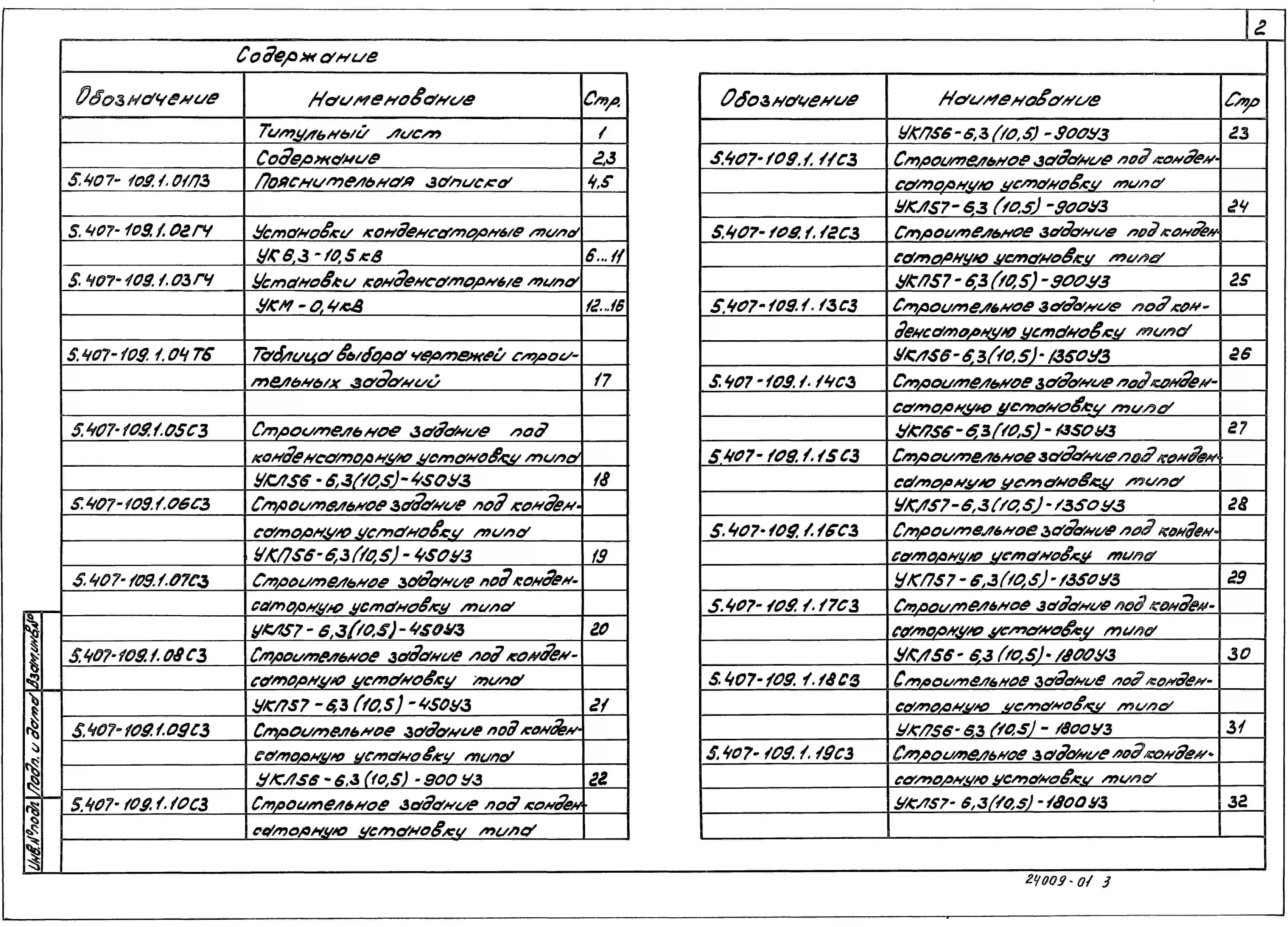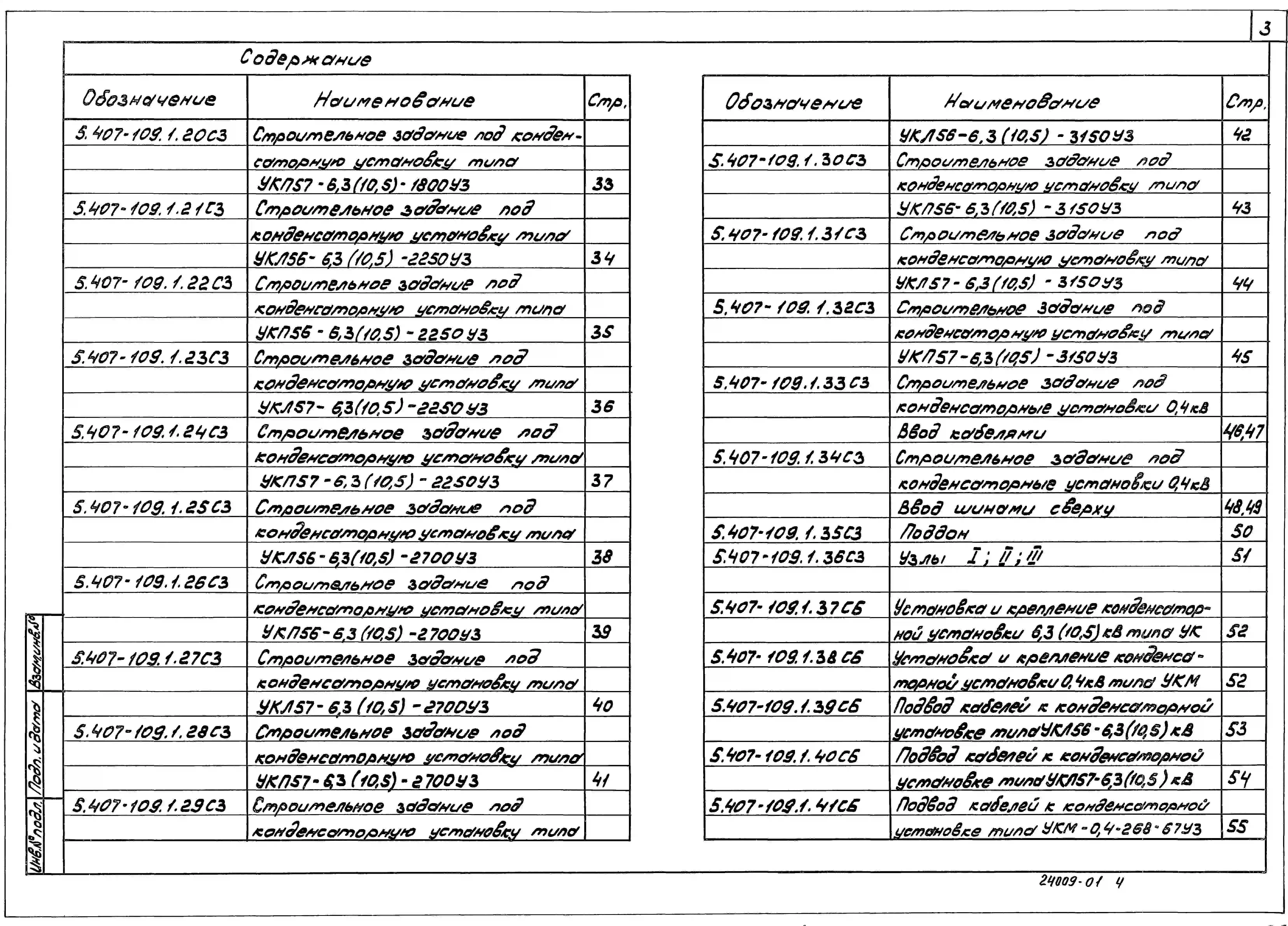 Серия 5.407-109 Установка конденсаторных устройств. Материалы для проектирования и рабочие чертежи.