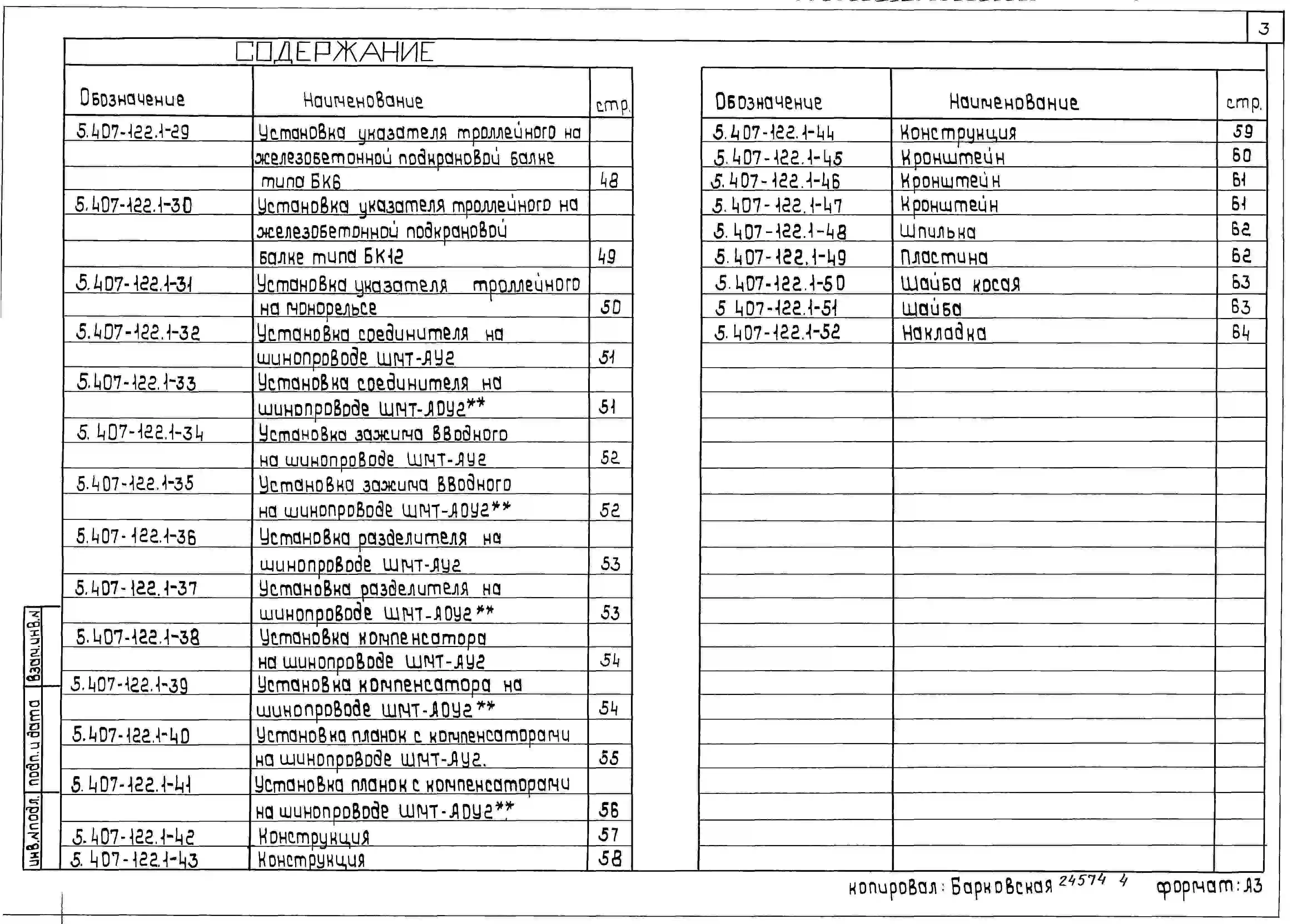 Серия 5.407-122 Прокладка монотроллейного шинопровода ШМТ-АУ2 и ШМТ-АОУ2** на 400 А. Материалы для проектирования и рабочие чертежи.