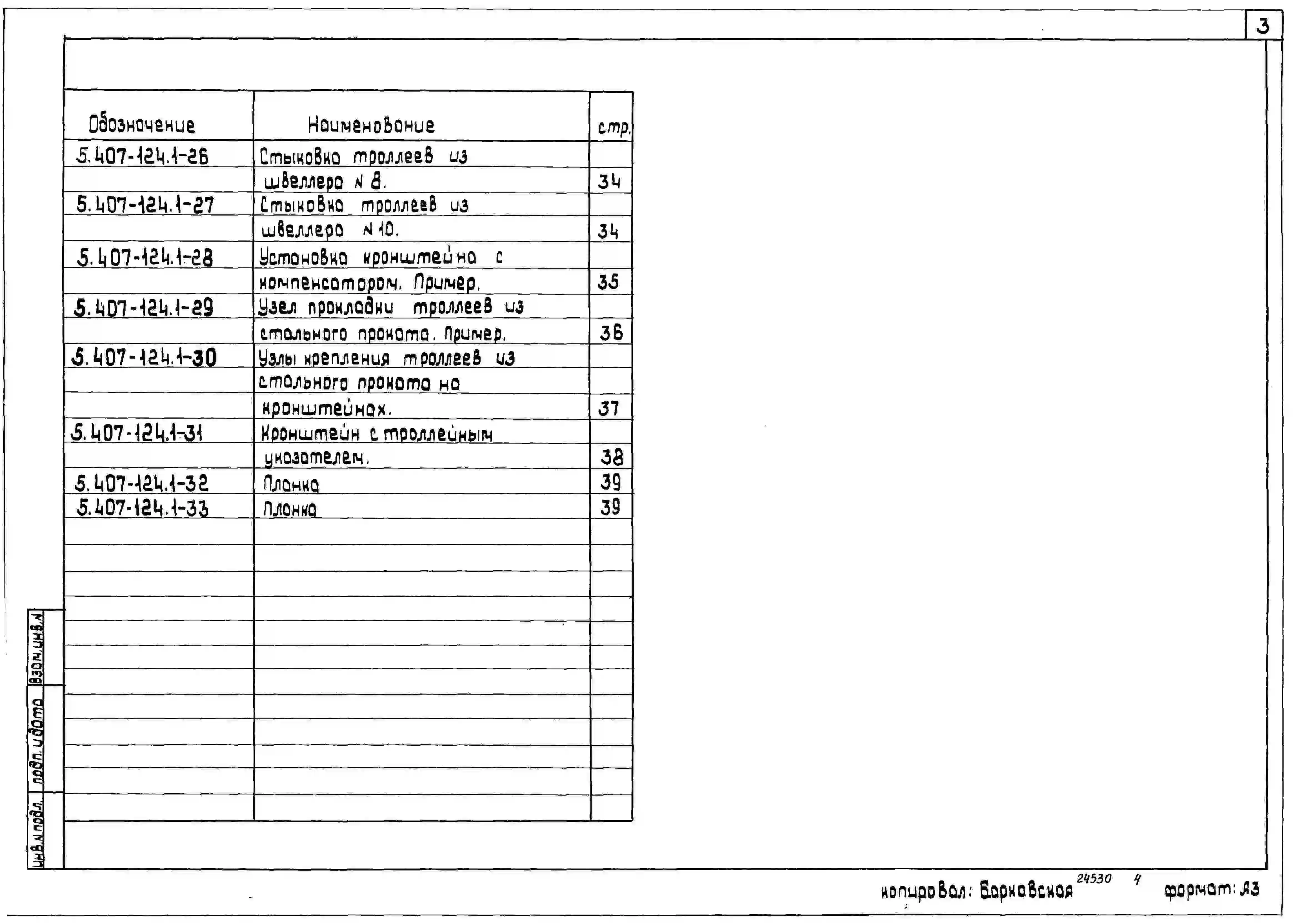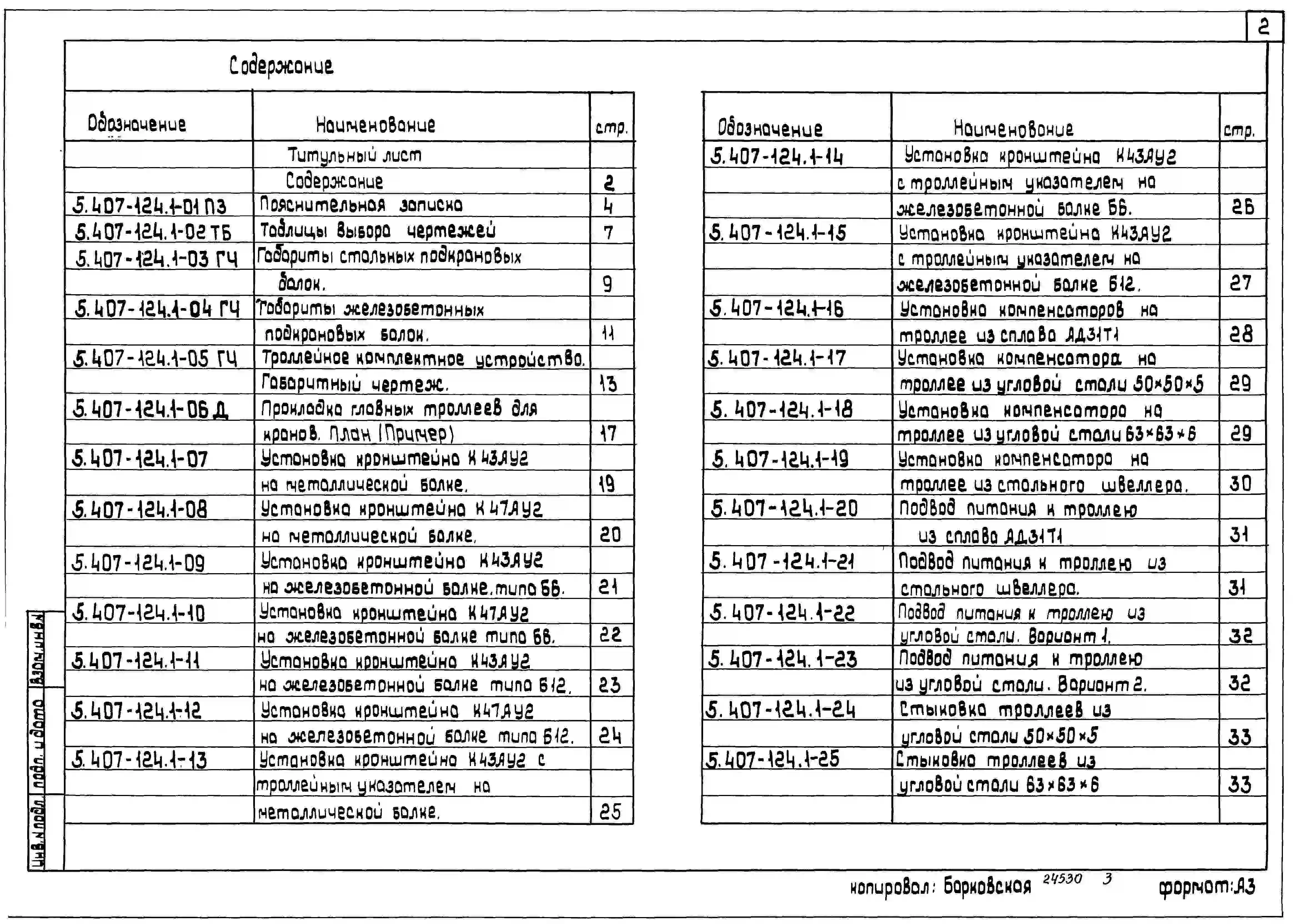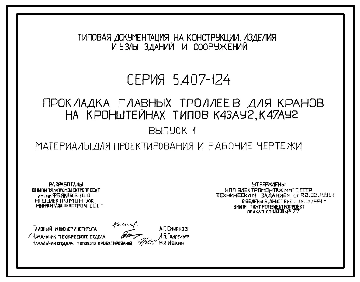 Серия 5.407-124 Прокладка главных троллеев для кранов на кронштейнах типов К43АУ2, К47АУ2. Материалы для проектирования и рабочие чертежи.
