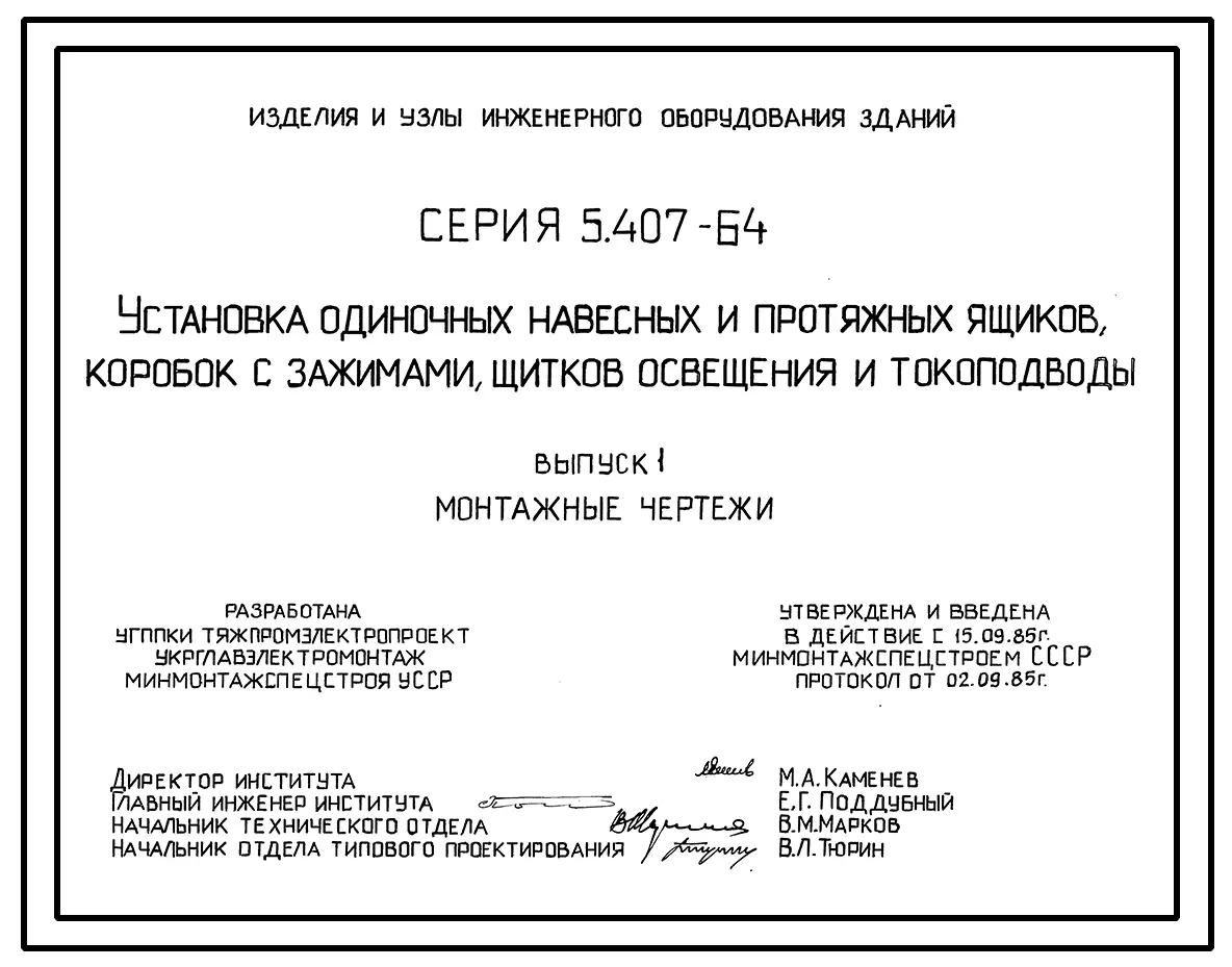 Серия 5.407-64 Установка одиночных навесных и протяжных ящиков, коробок с зажимами, щитков освещения и токоподводы. Рабочие чертежи.