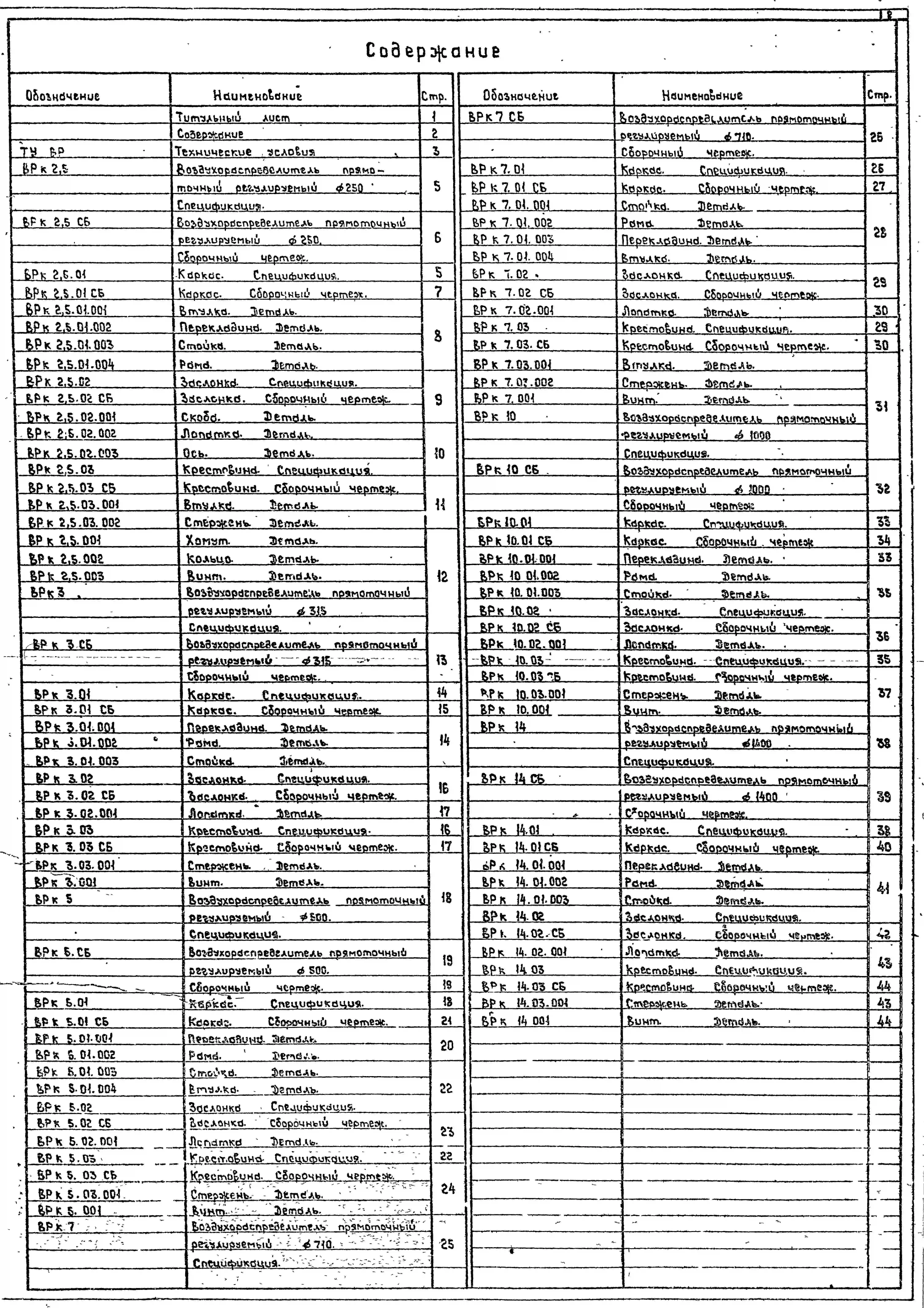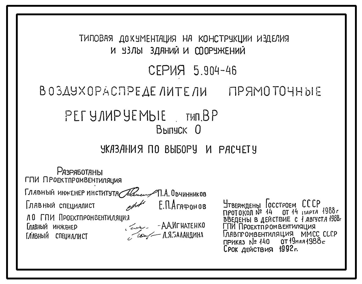 Серия 5.904-46 Воздухораспределители прямоточные регулируемые типа ВР. Рабочие чертежи.