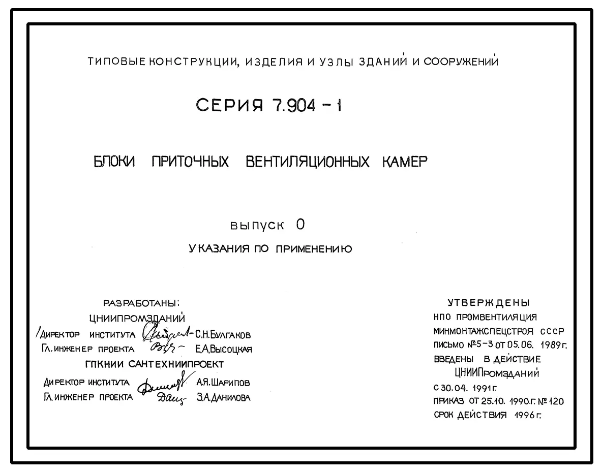 Серия 7.904-1 Блоки приточных вентиляционных камер. Рабочие чертежи.