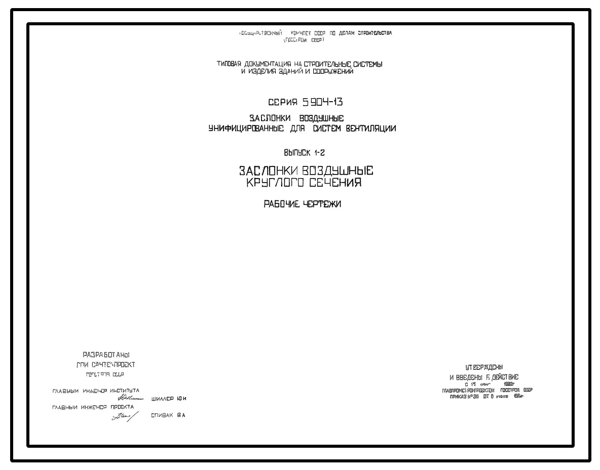 Серия 5.904-13 Заслонки воздушные унифицированные для систем вентиляции. Материалы для проектирования и рабочие чертежи.