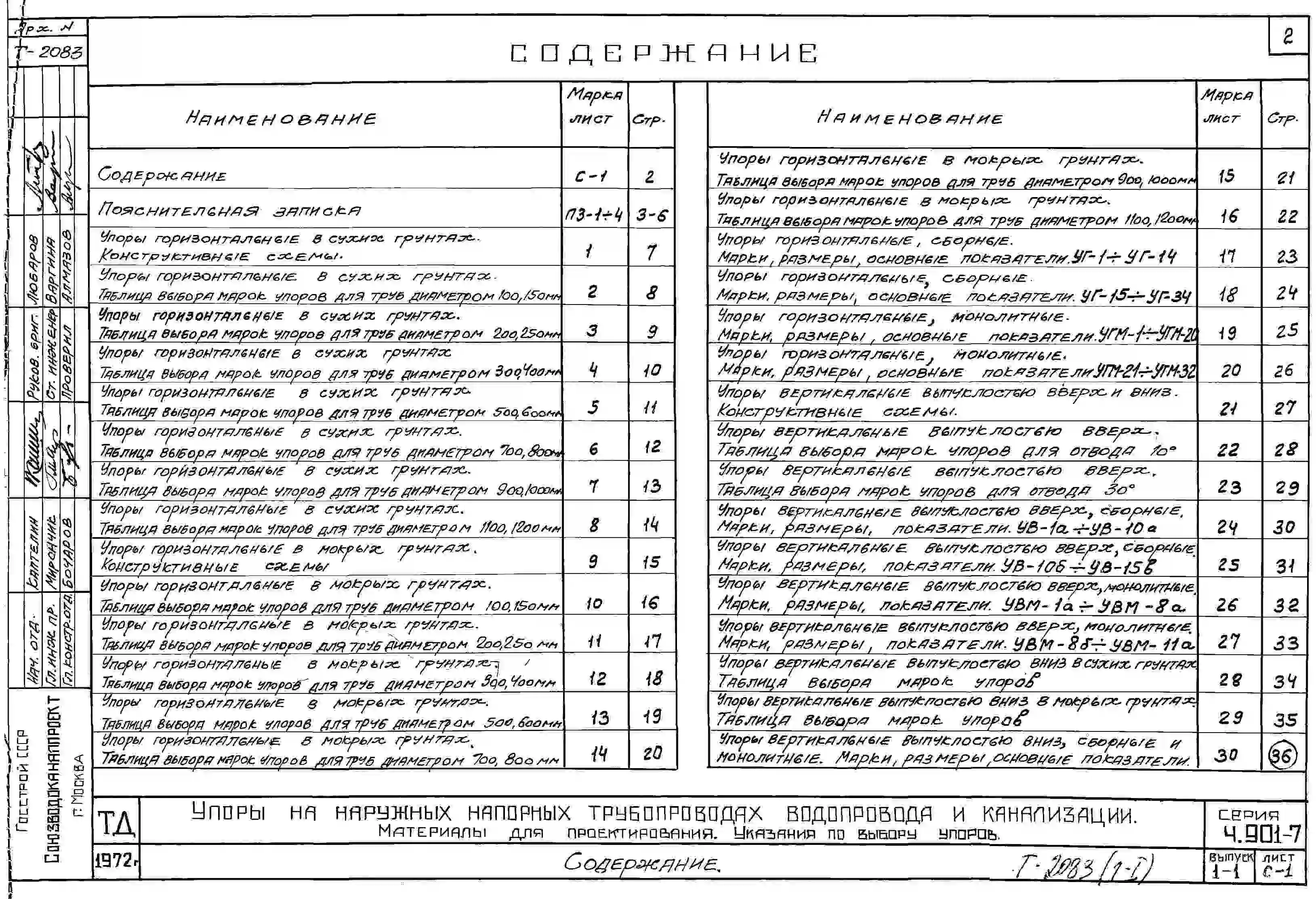 Серия 4.901-7 Упоры на наружных напорных трубопроводах водопровода и канализации. Материалы для проектирования и рабочие чертежи.