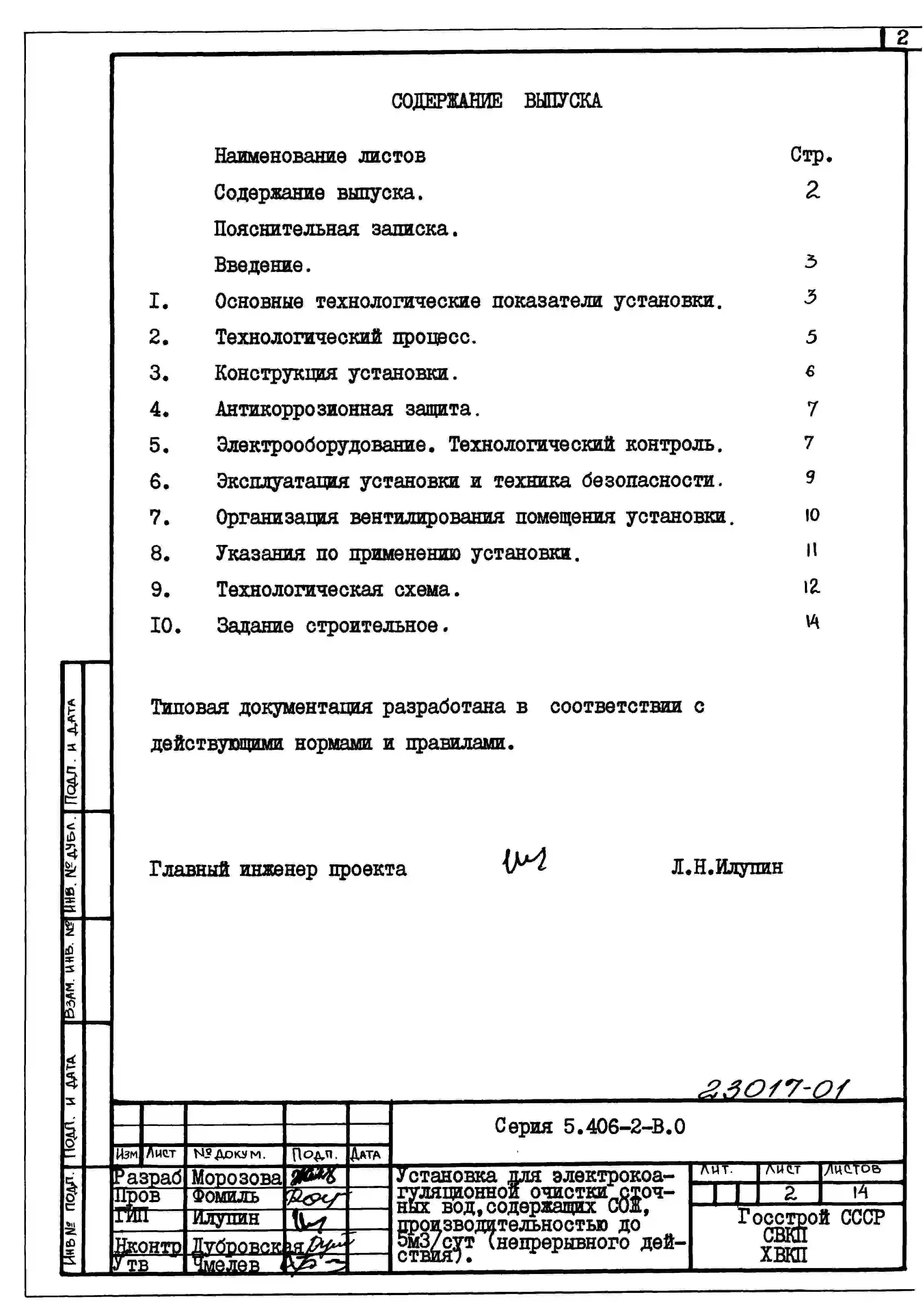 Серия 5.406-2 Установка для электрокоагуляционной очистки сточных вод, содержащих смазочно-охлаждающие жидкости (СОЖ), производительностью до 5 куб.м в сутки в комплектно-блочном исполнении (непрерывного действия). Рабочие чертежи.