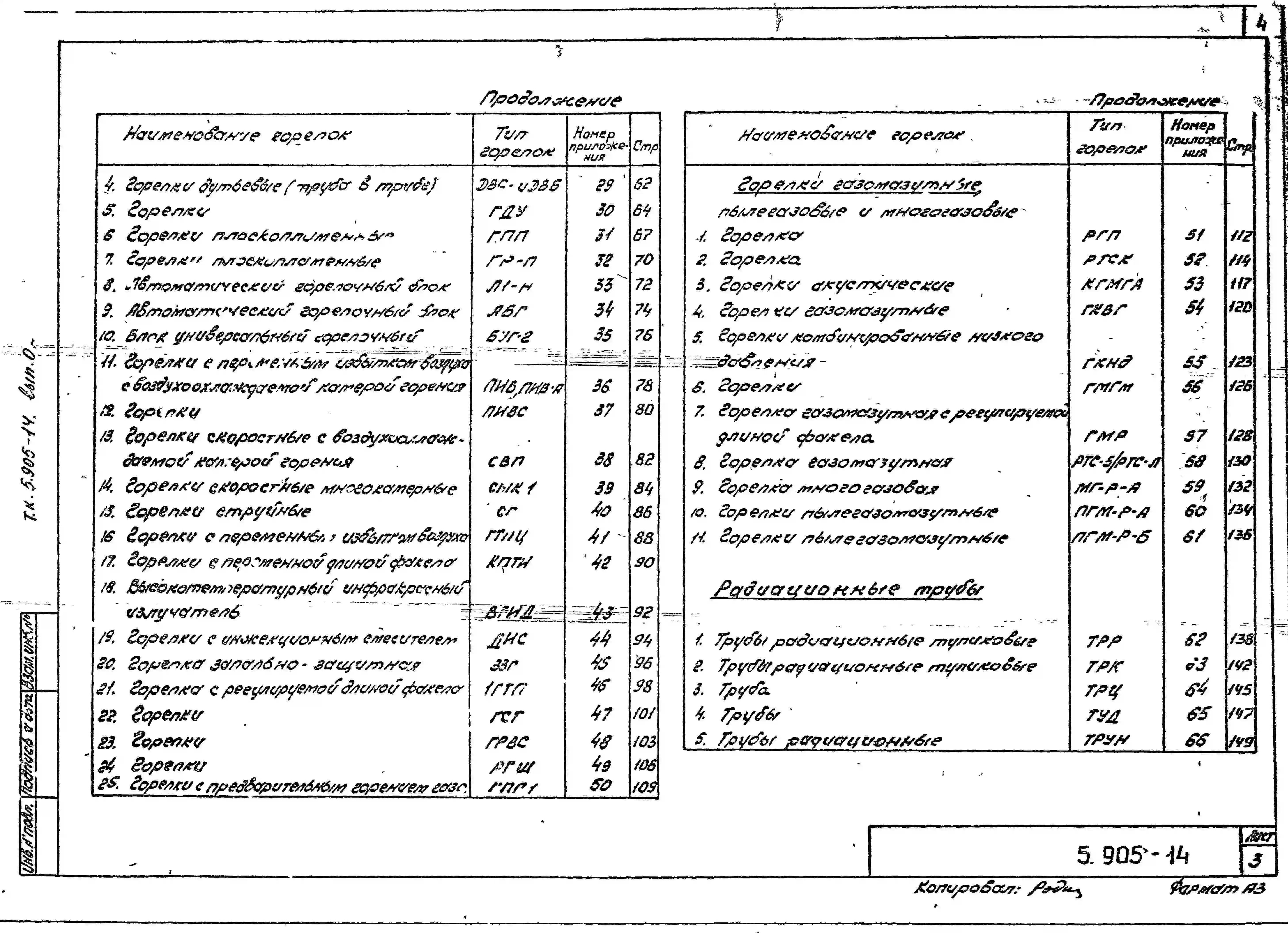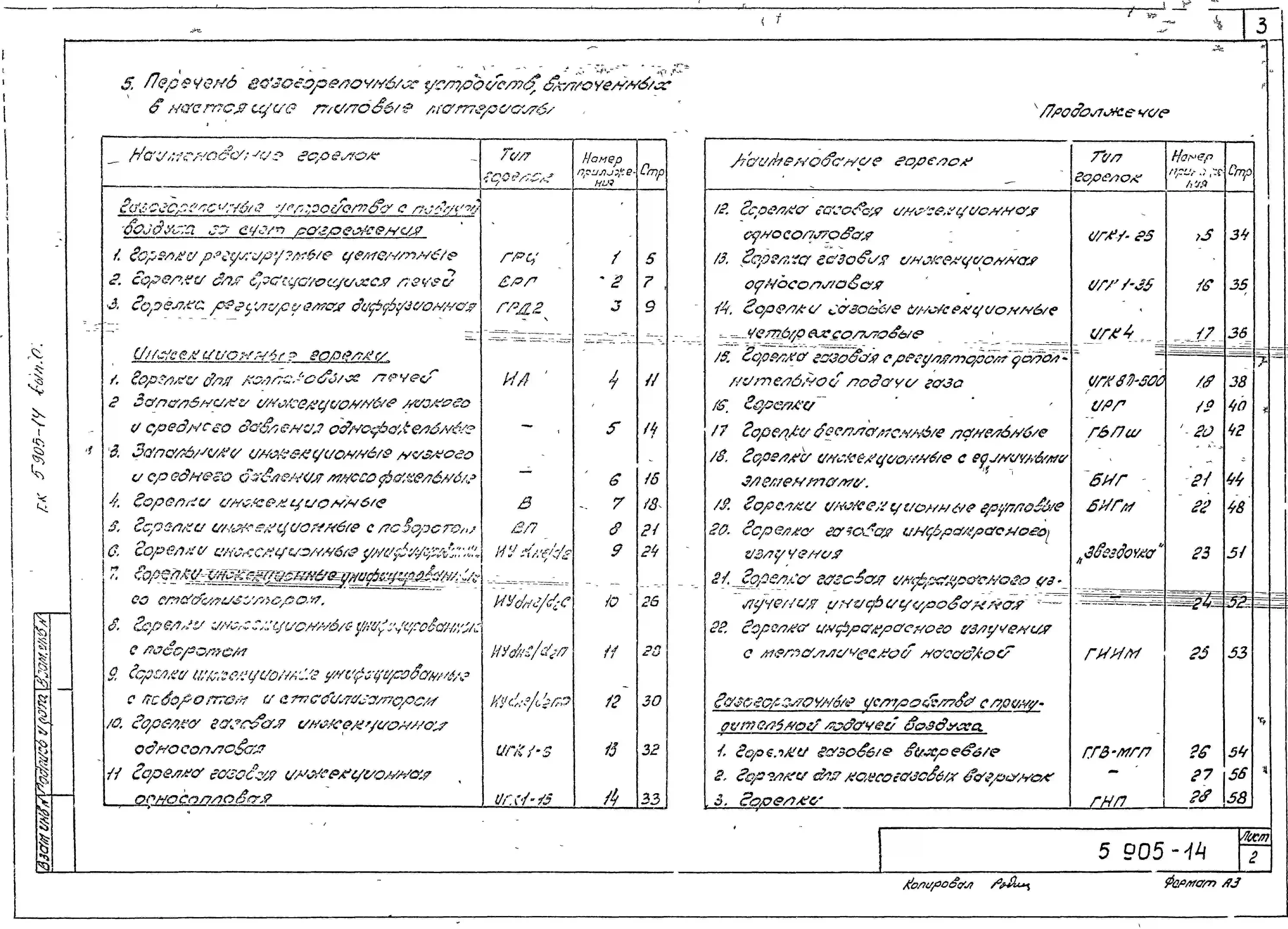 Серия 5.905-14 Газогорелочные устройства для сжигания природного и сжиженного газов, рекомендуемые к применению. Материалы для проектирования.