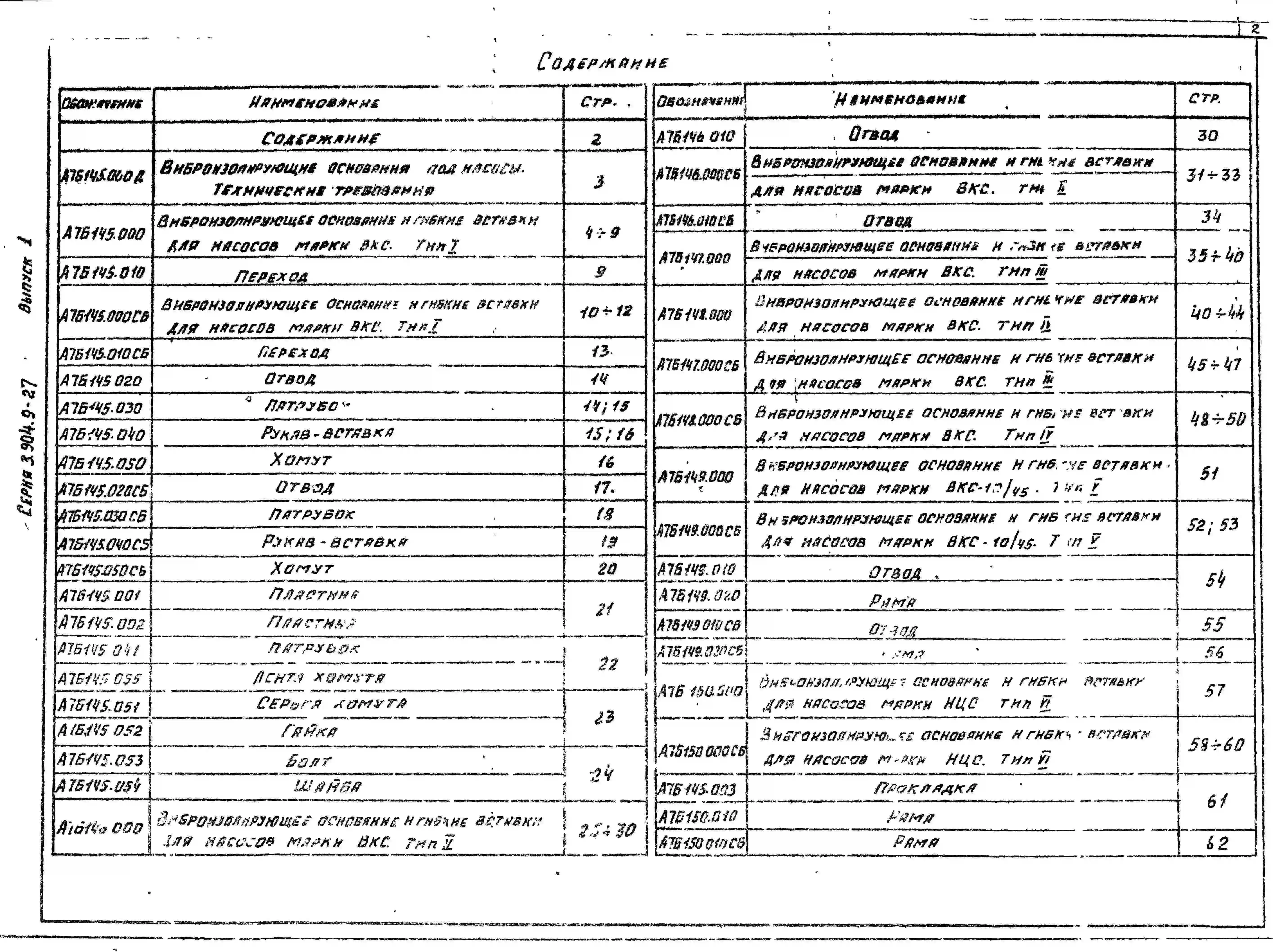 Серия 3.904.9-27 Виброизолирующие основания под насосы ВКС и НЦС. Рабочие чертежи.