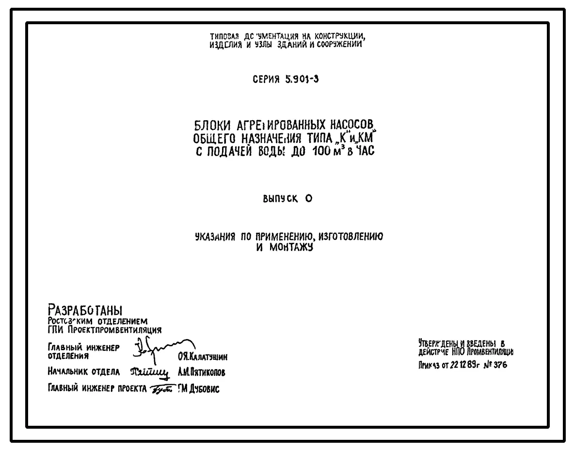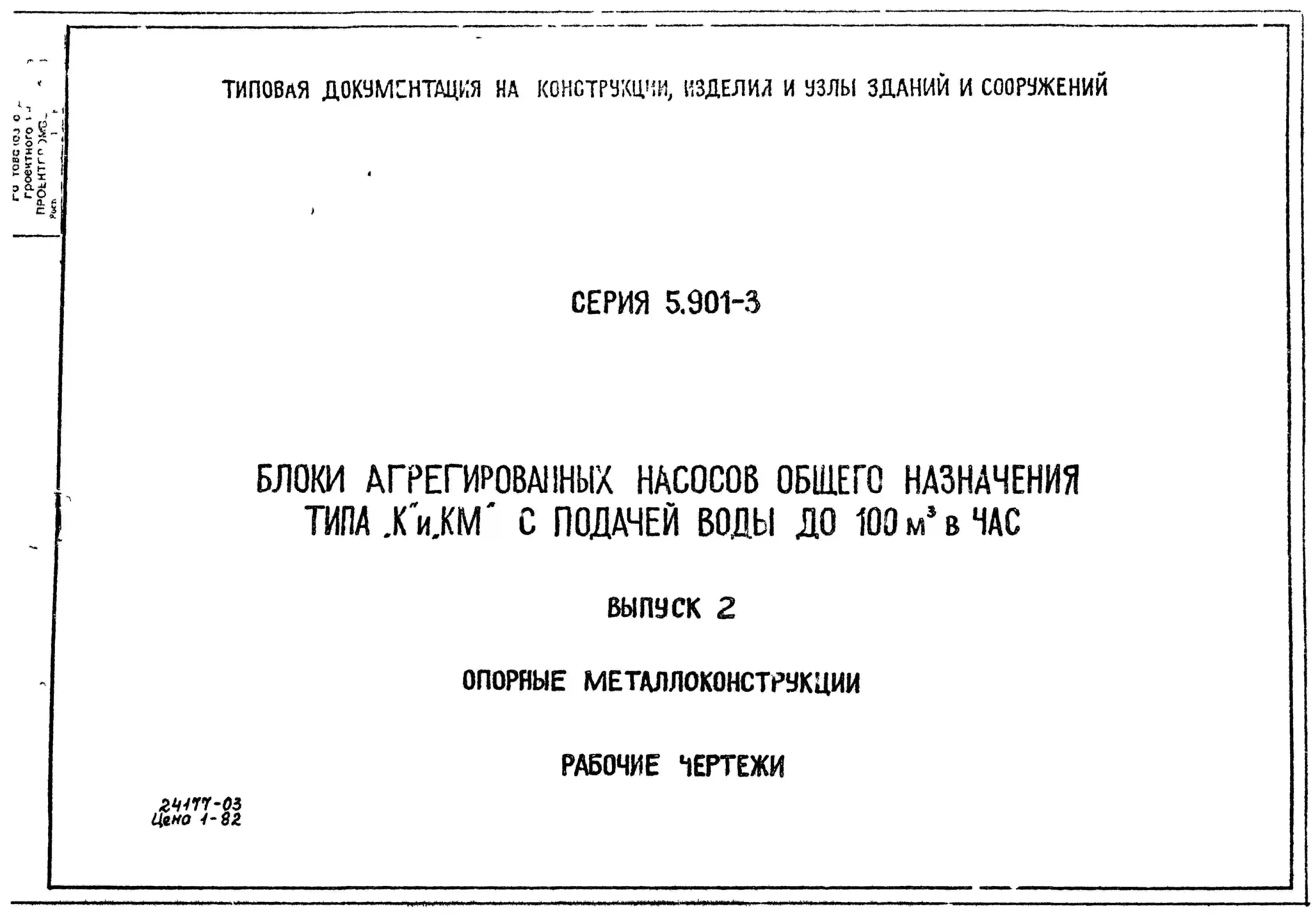 Серия 5.901-3 Блоки агрегированных насосов общего назначения типа "К" и "КМ" с подачей воды до 100 куб.м/ч. Материалы для проектирования и рабочие чертежи.