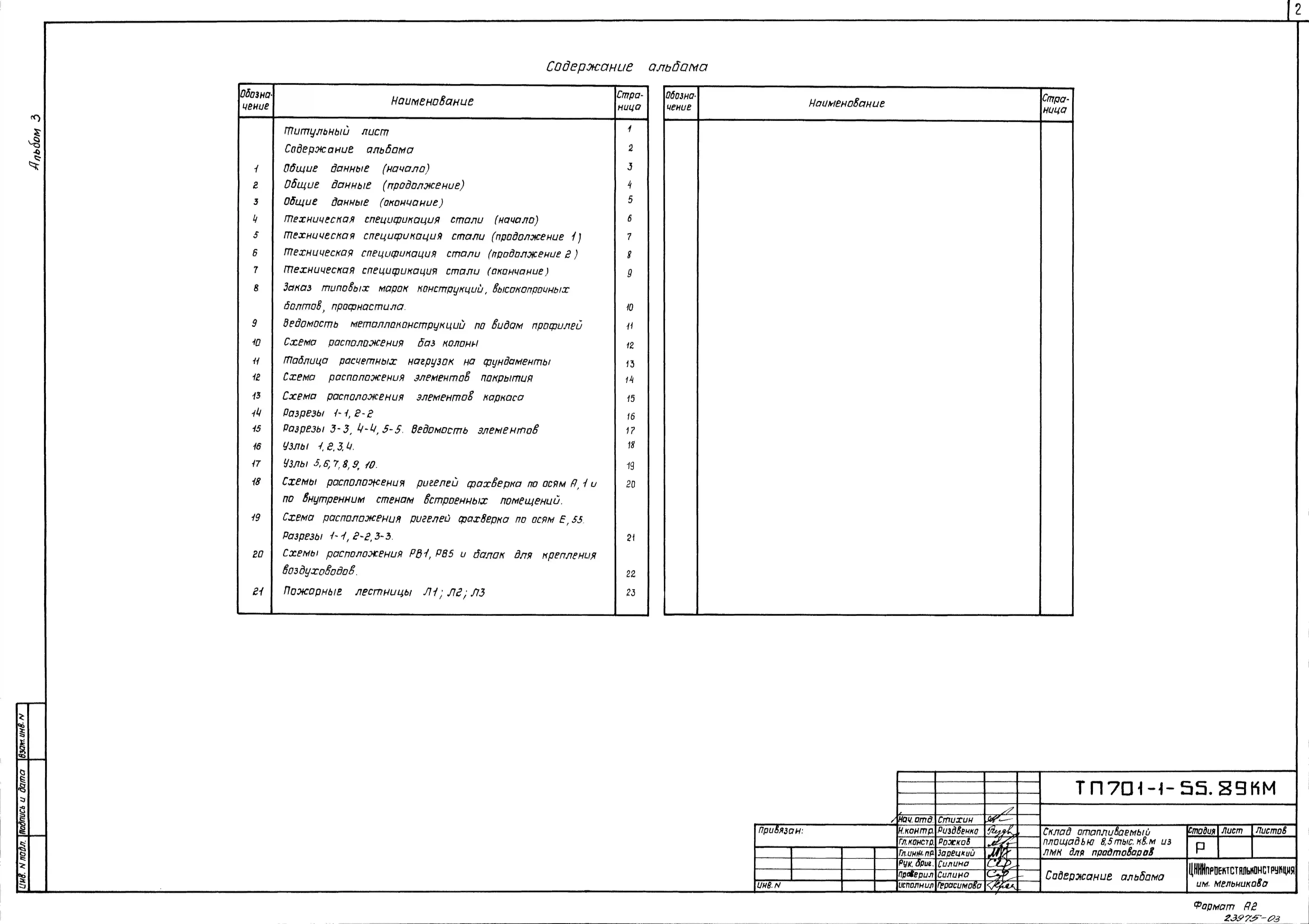 Типовой проект 701-1-55.89 Склад отапливаемый площадью 8500 м2 (из ЛМК конструкций комплектной поставки типа “Молодечно”) для продтоваров вместимостью 19 100 т
