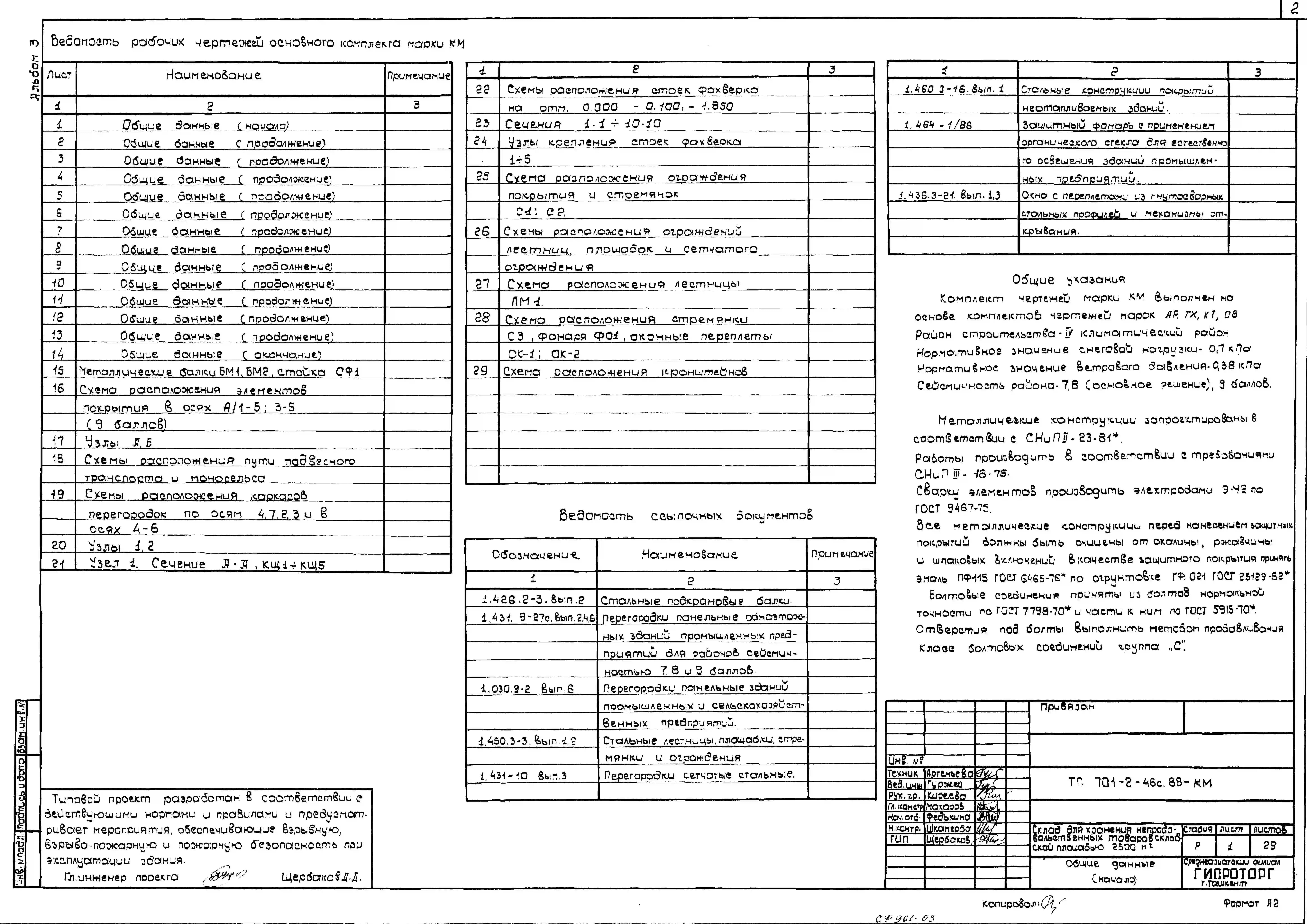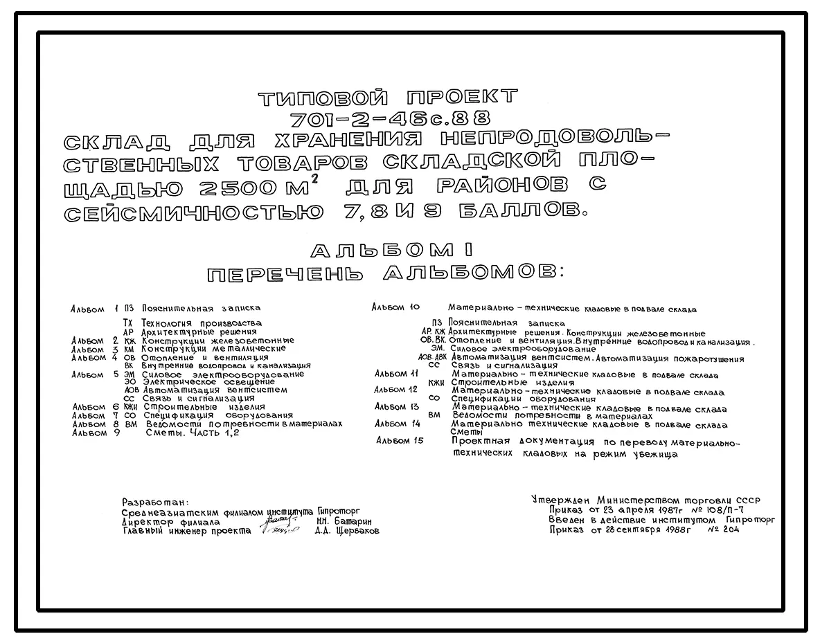 Типовой проект 701-2-46с.88 Склад для хранения непродовольственных товаров складской площадью 2500 м2. Сейсмичность 7, 8, 9 баллов